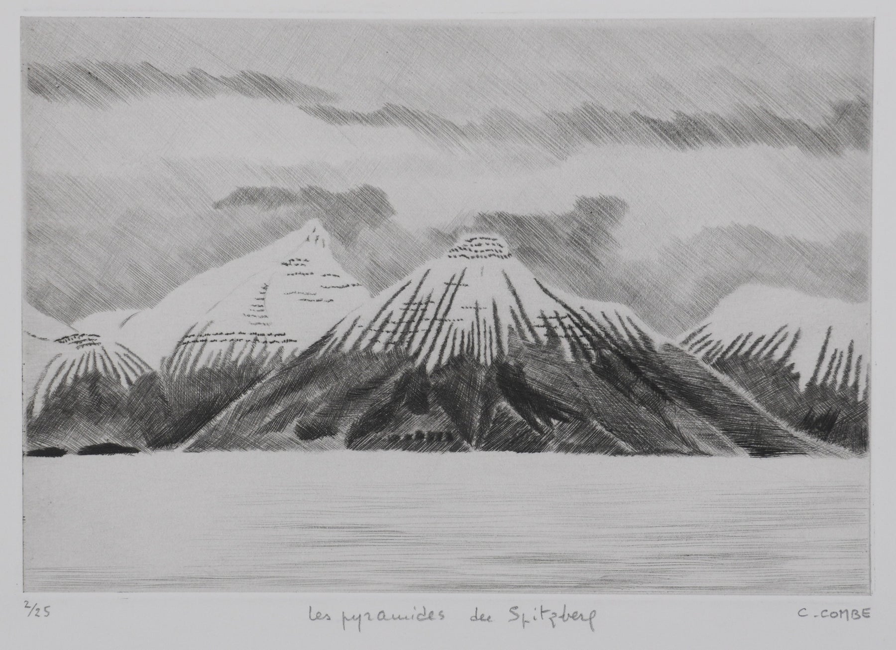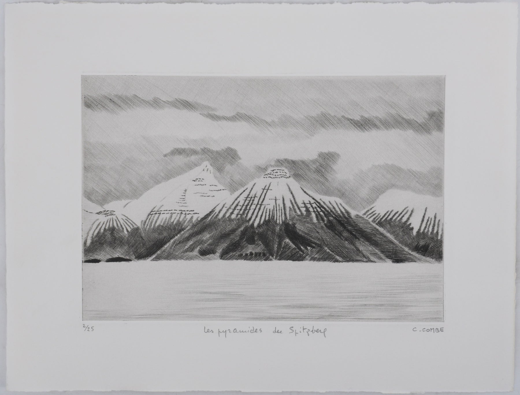 Camille COMBE : Les pyramides du Spitzberg, Gravure originale signée