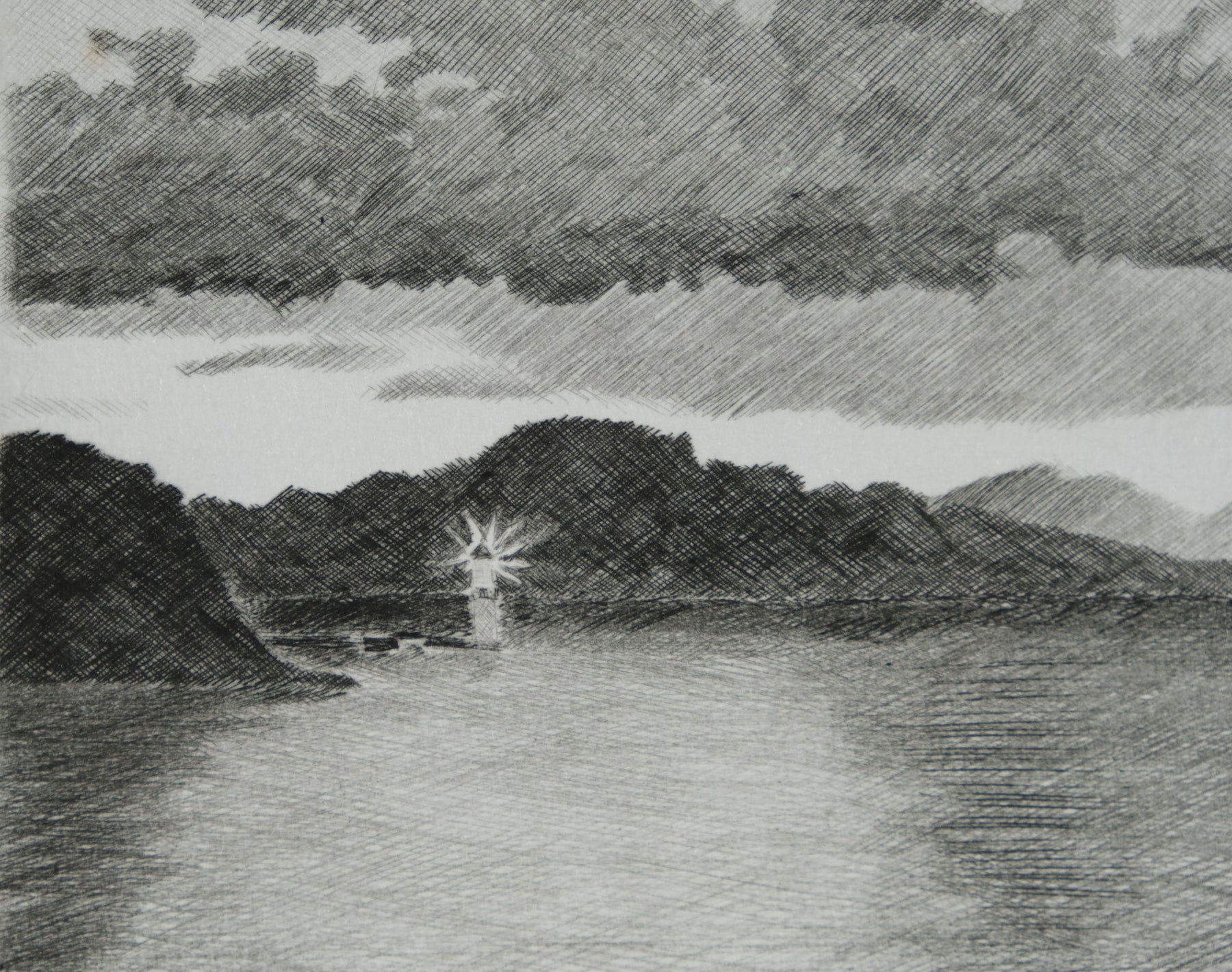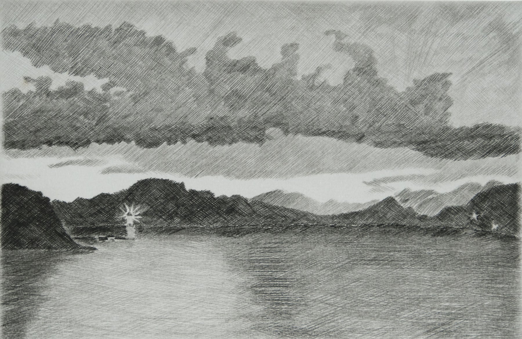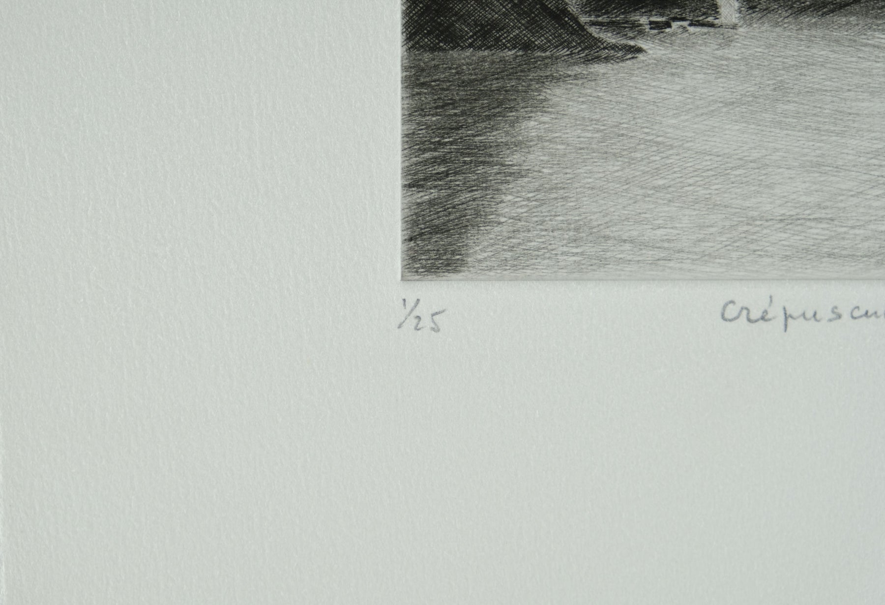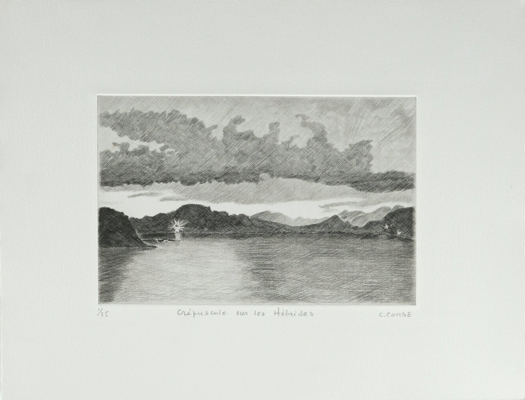 Camille COMBE : Ecosse, Crépuscule sur les Hébrides, Gravure originale signée