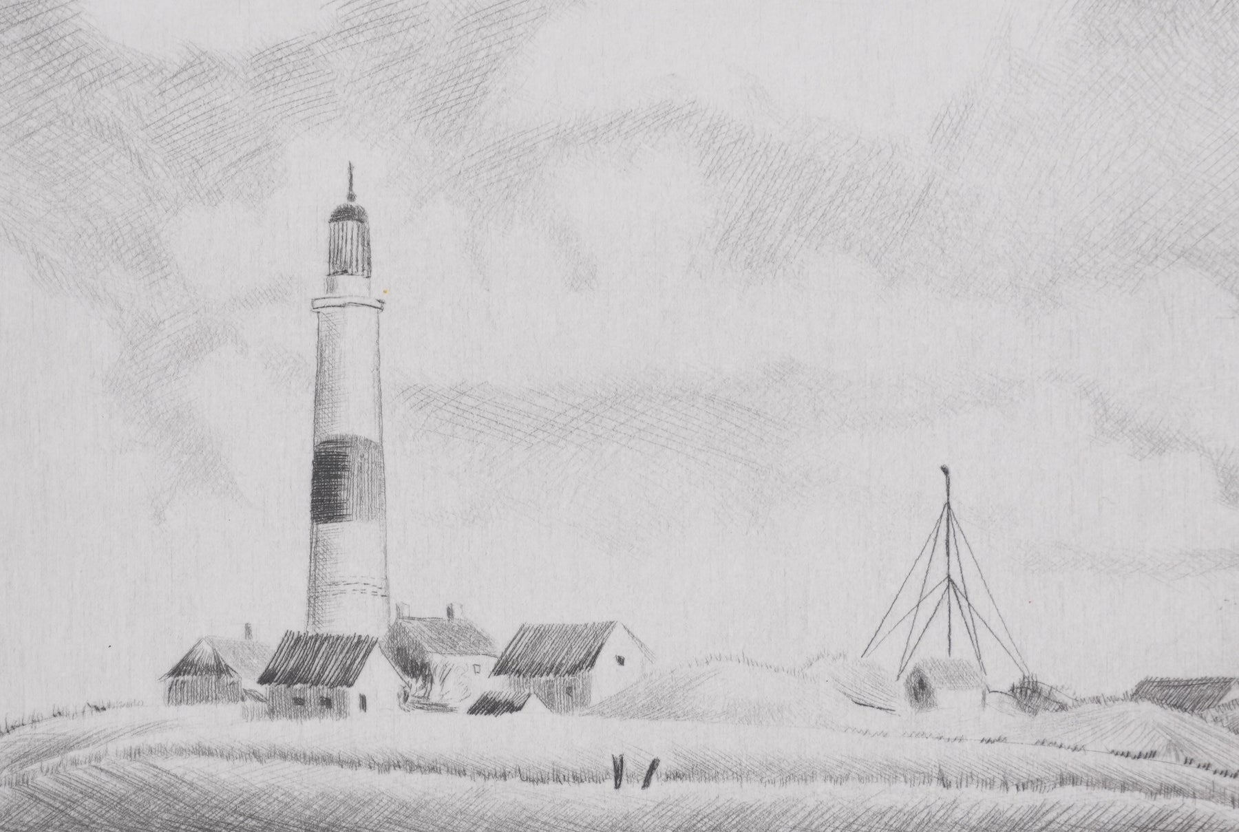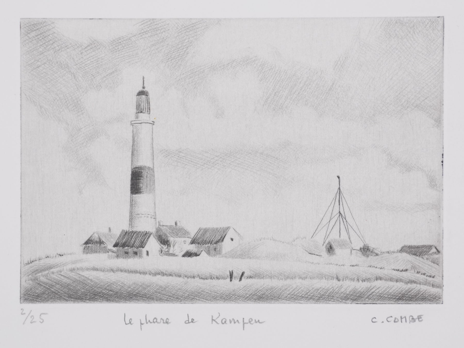 Camille COMBE : Le phare de Kampen, Gravure originale signée