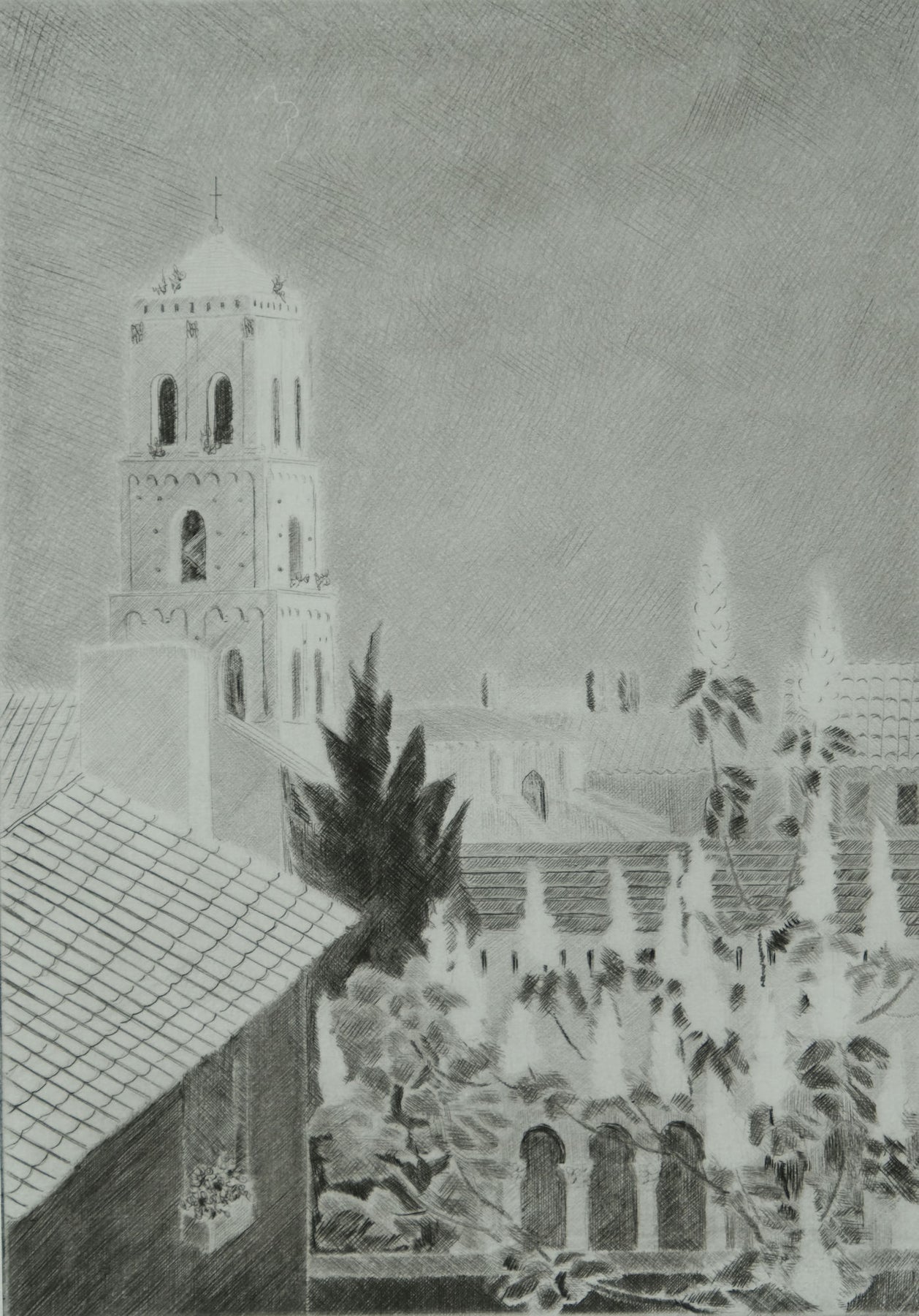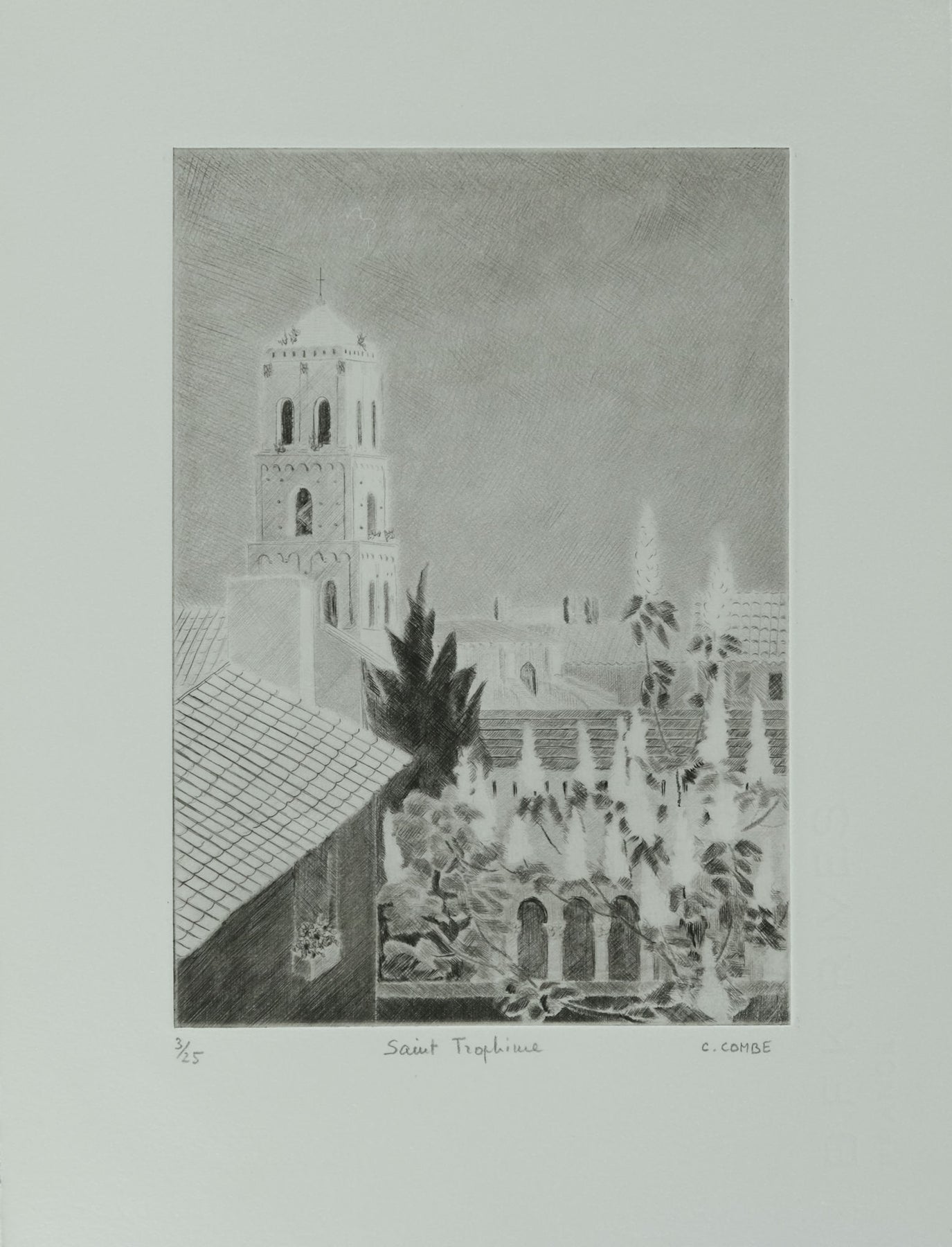 Camille COMBE : Saint Trophime, Gravure originale signée