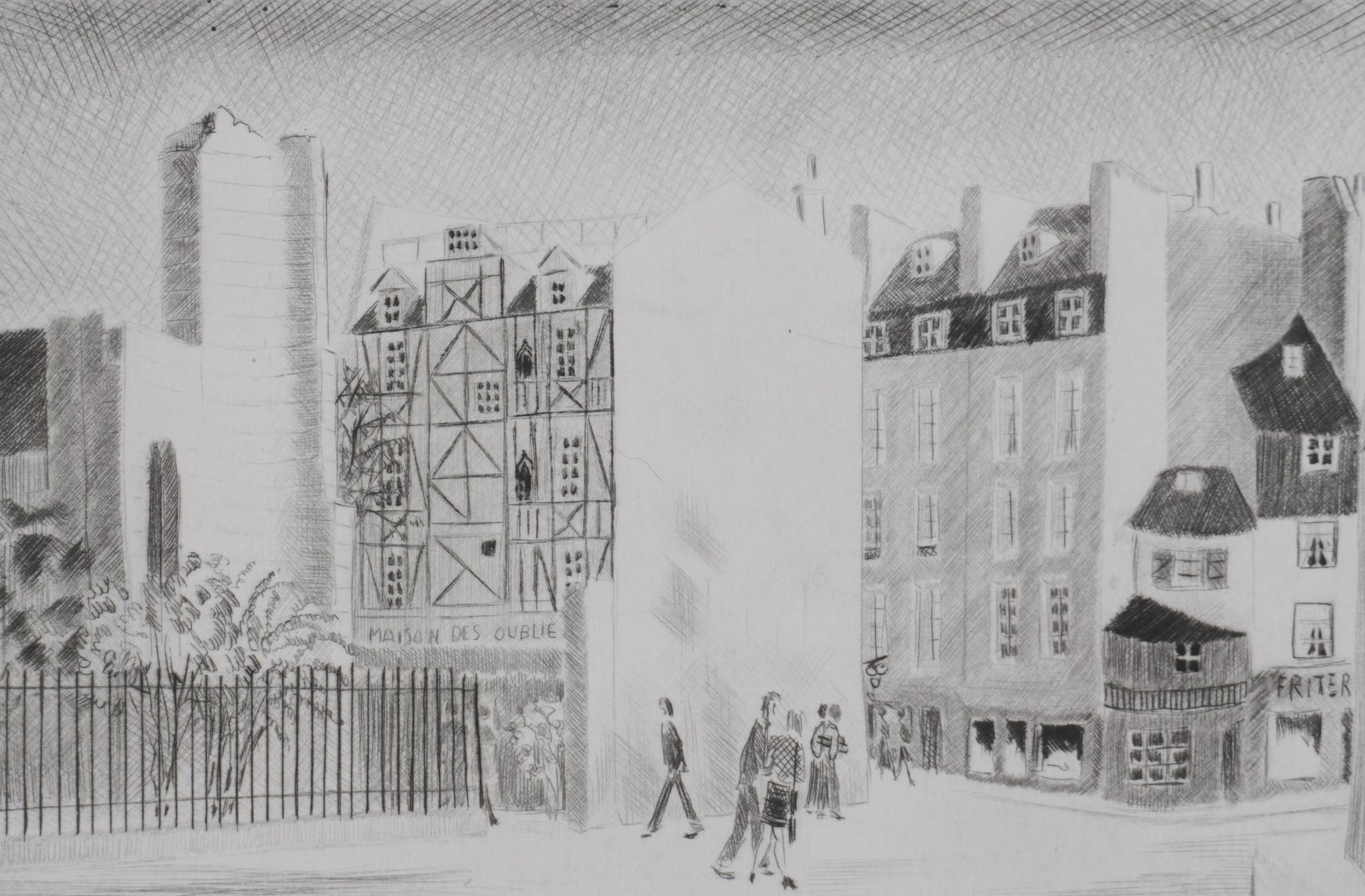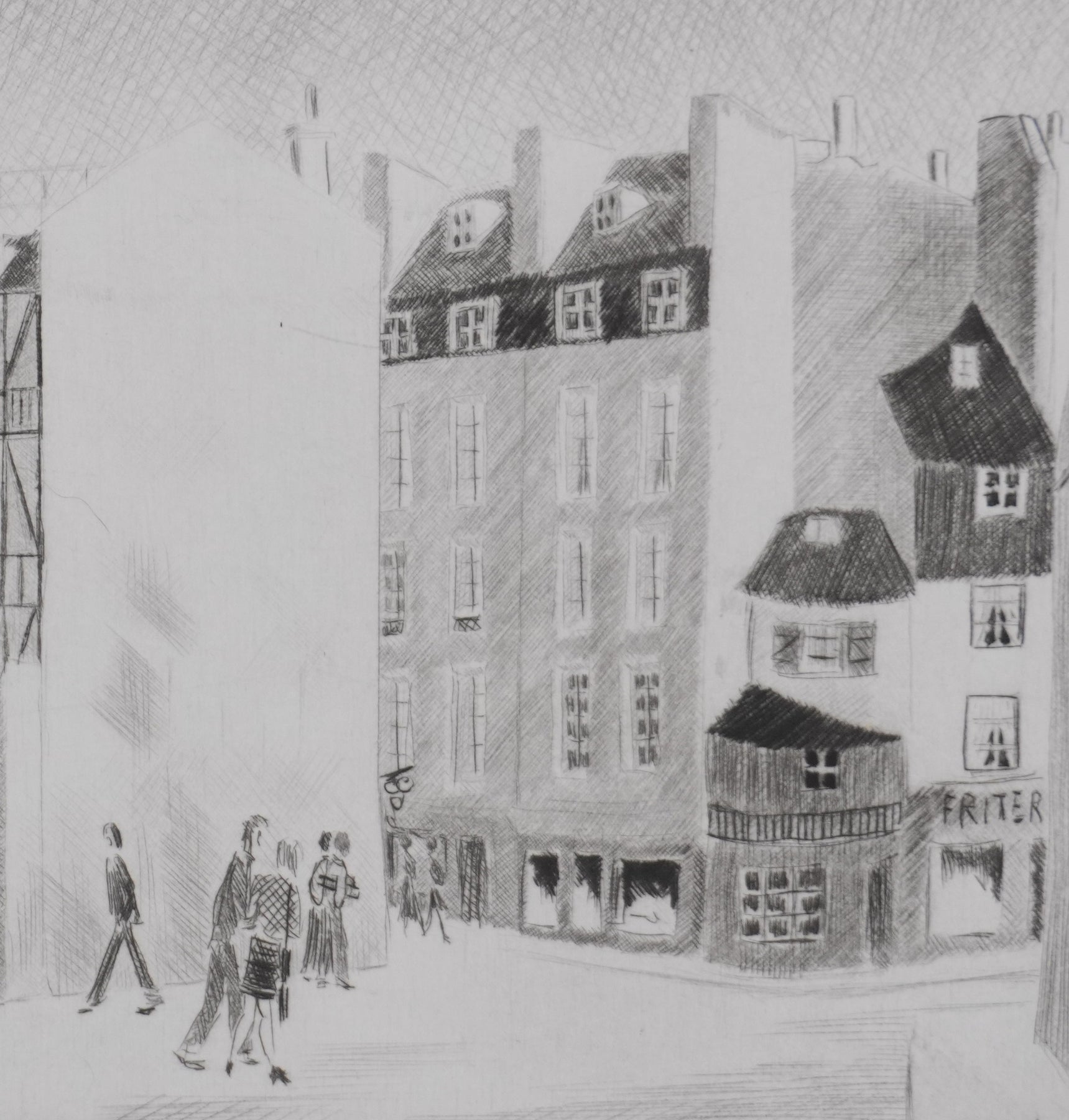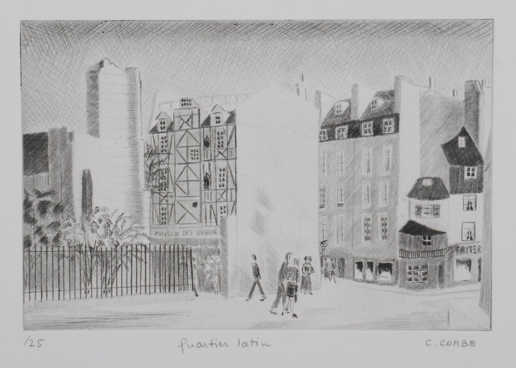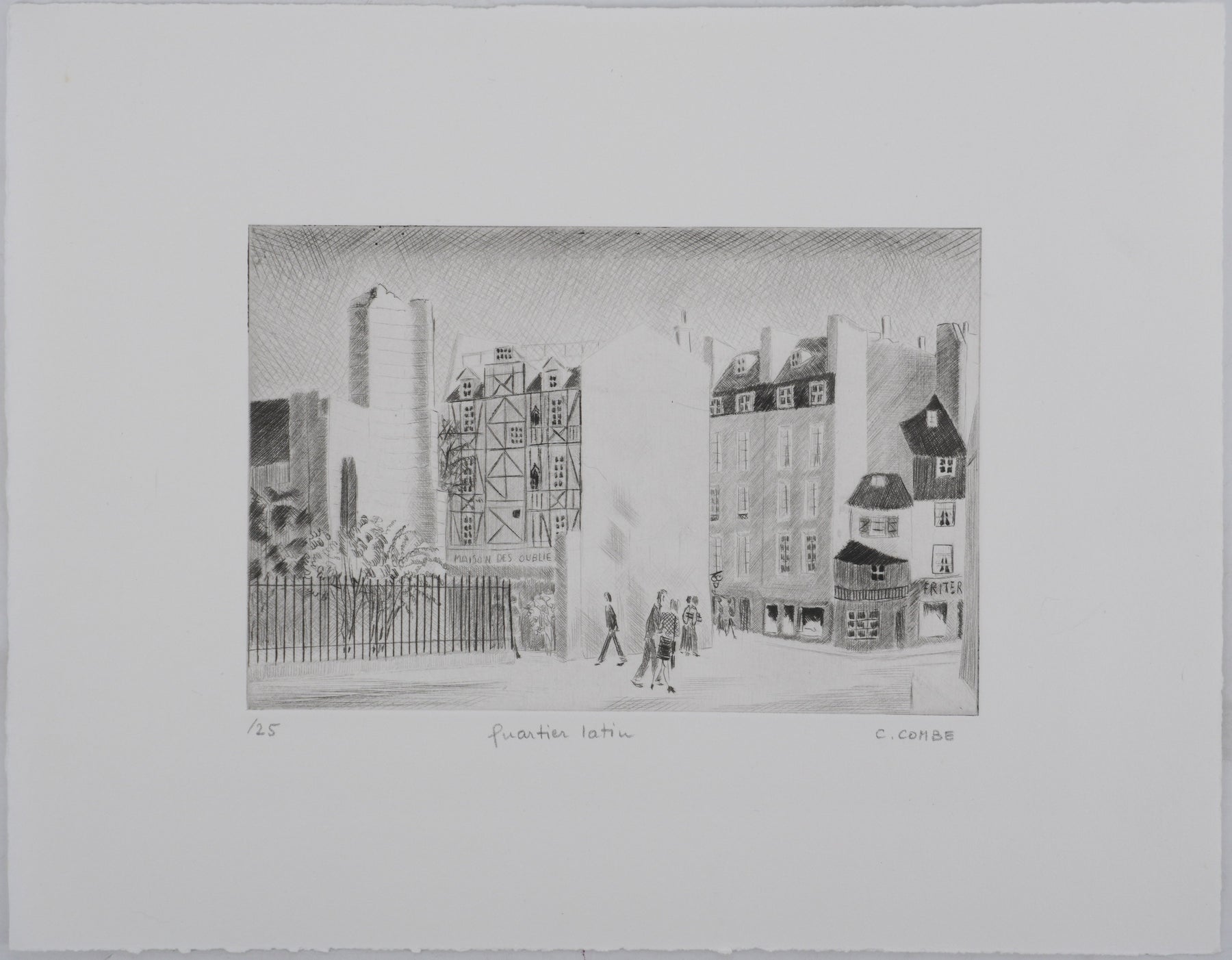 Camille COMBE : Quartier latin, Gravure originale signée