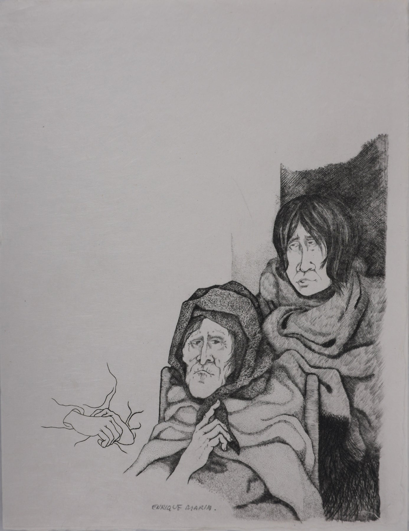 Enrique MARIN MUNOZ : Les gardiennes, Gravure originale signée