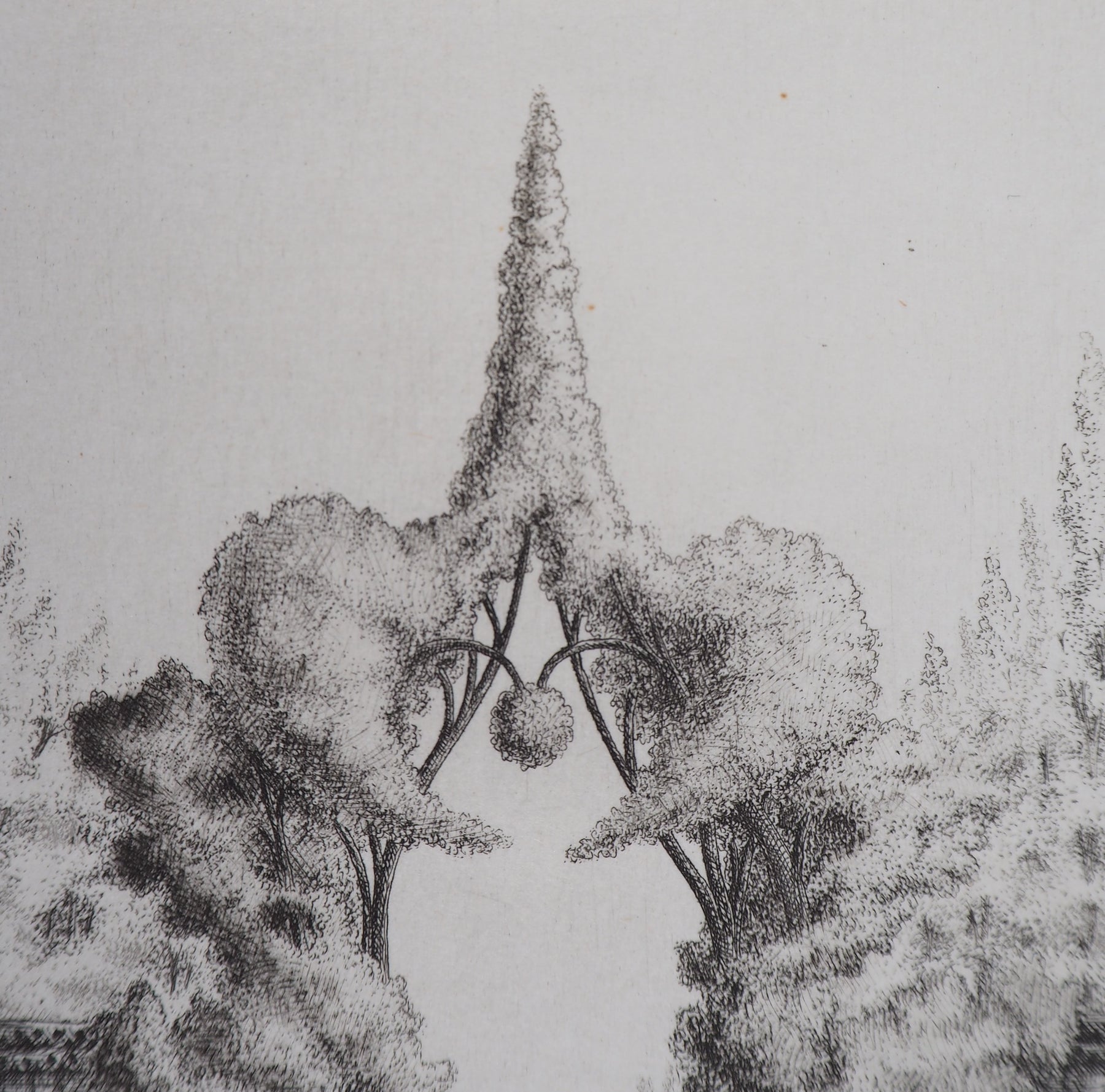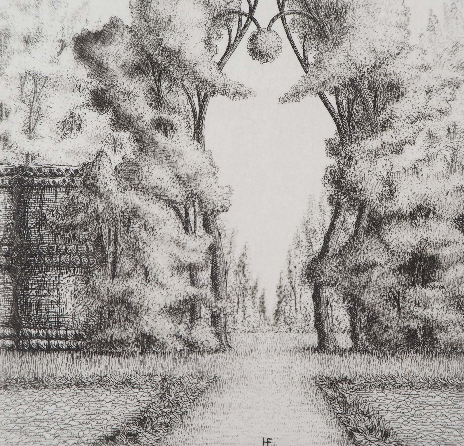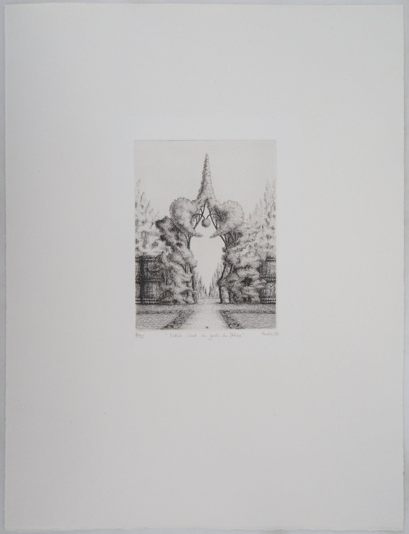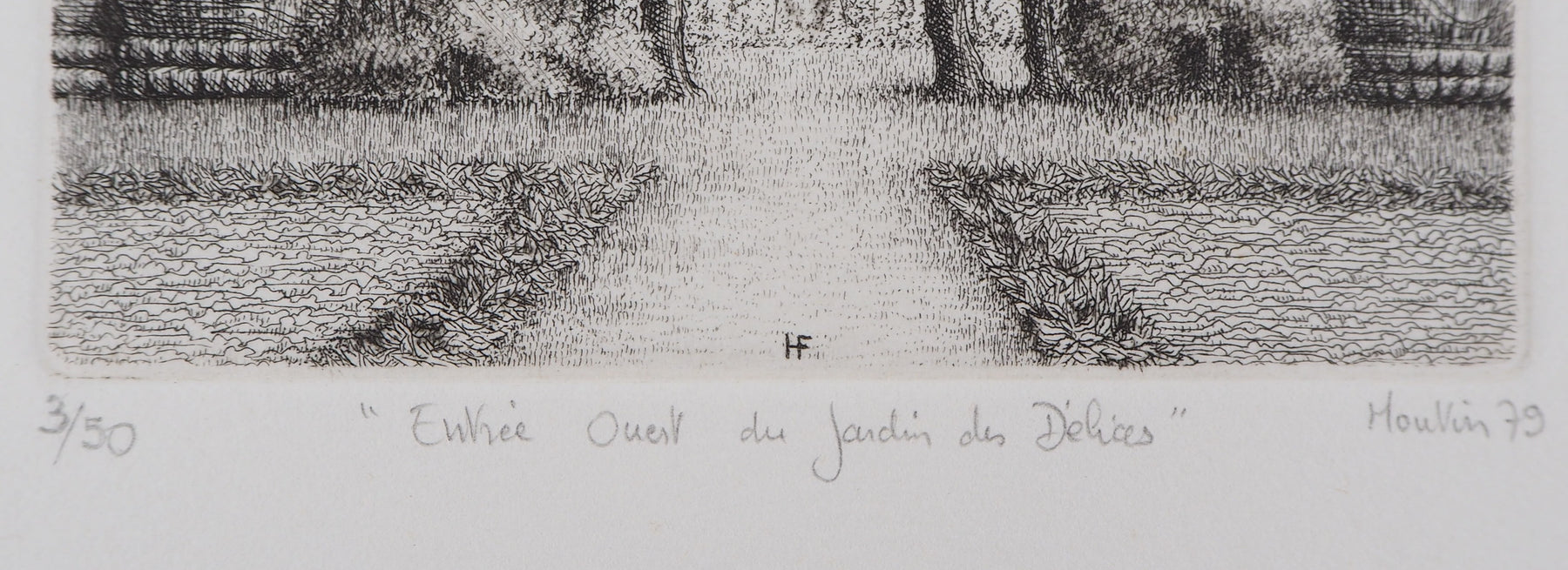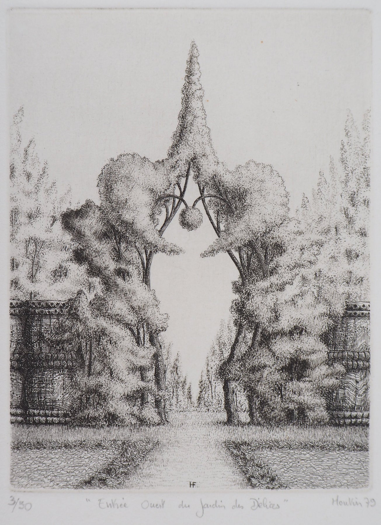 AF François HOUTIN: West Entrance to the Garden of Delights, Original Signed Engraving