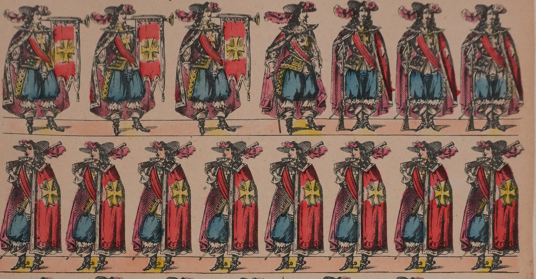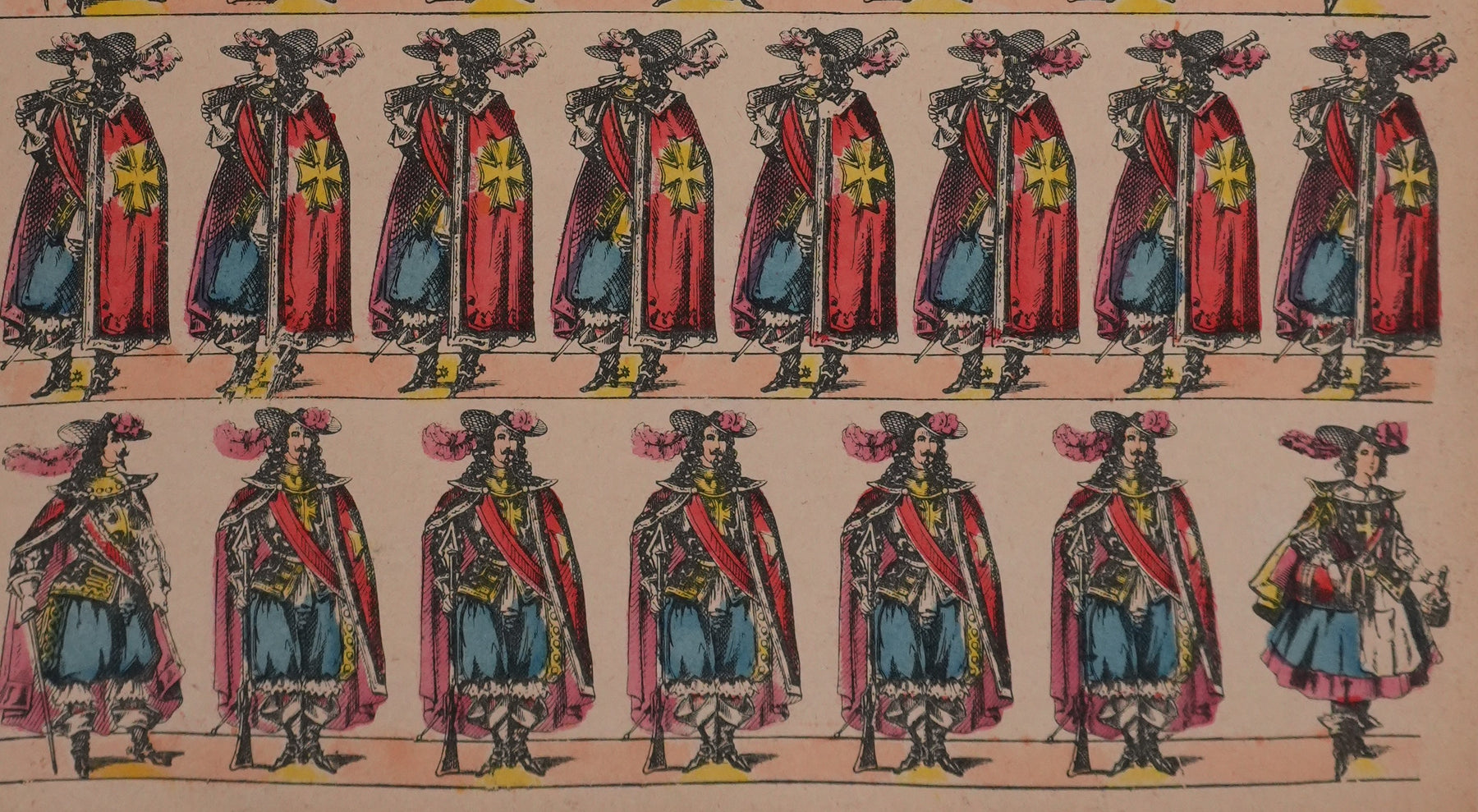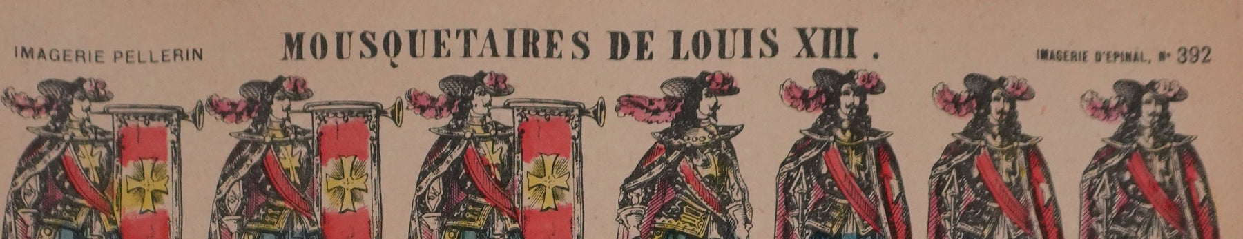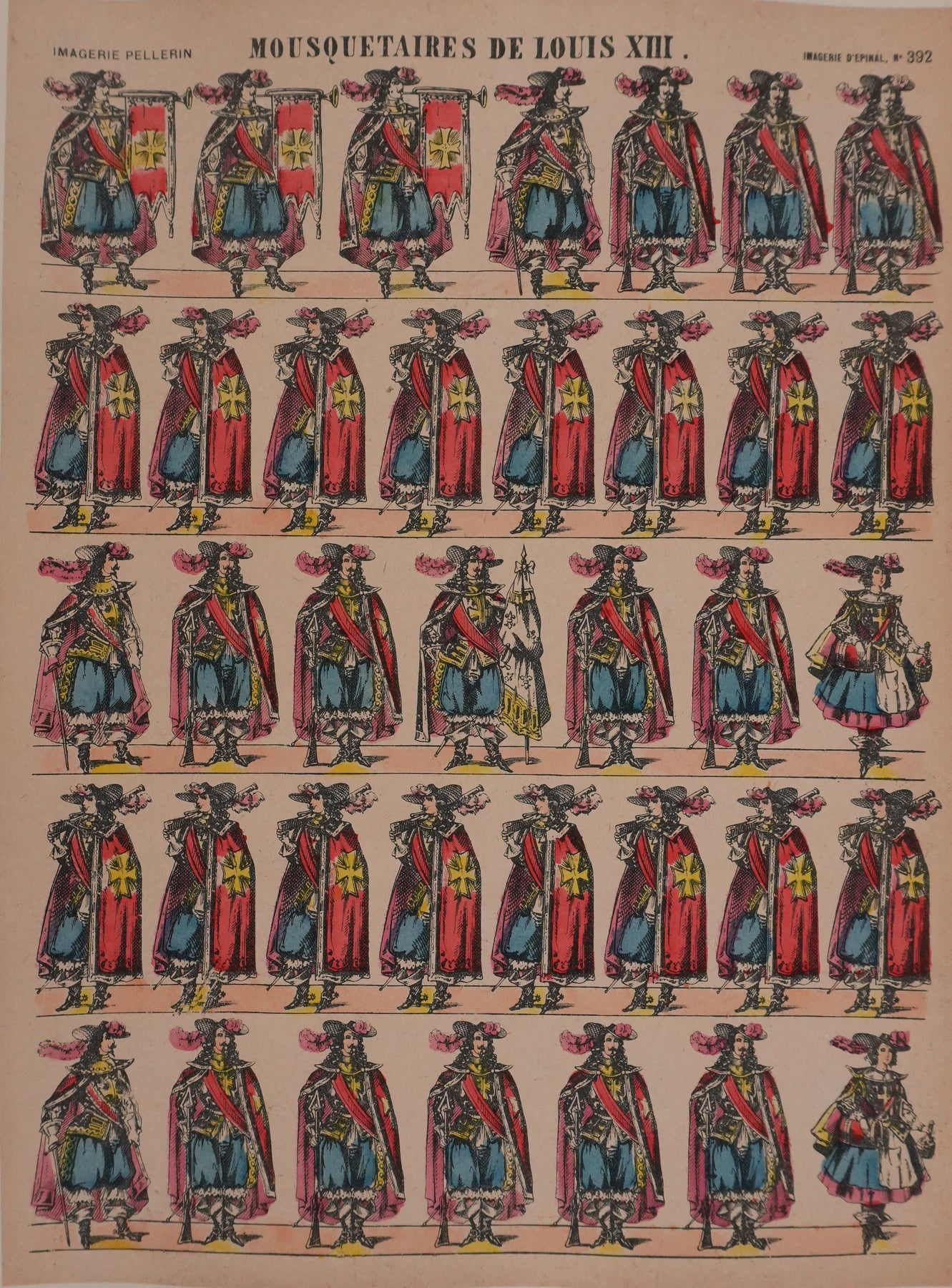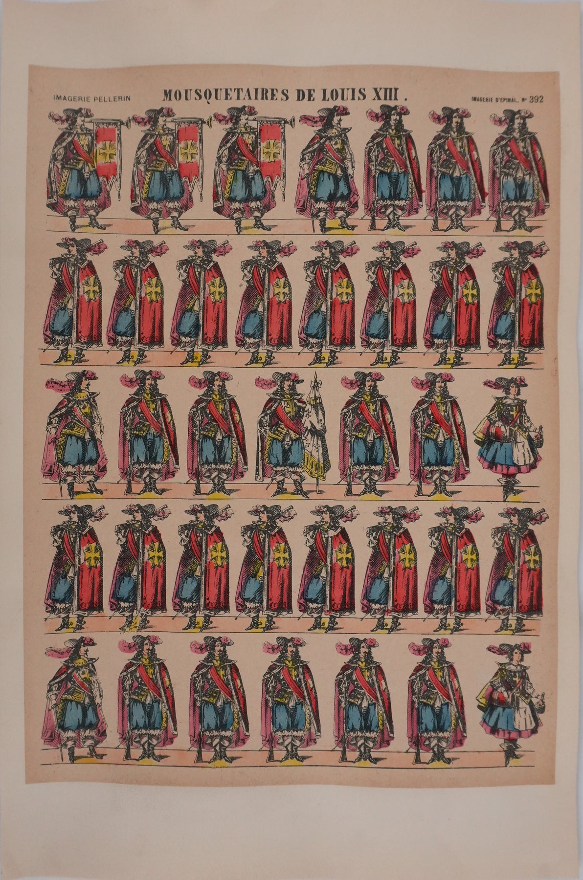 Imagerie D'Epinal : Les mousquetaires de Louis XIII, Gravure originale