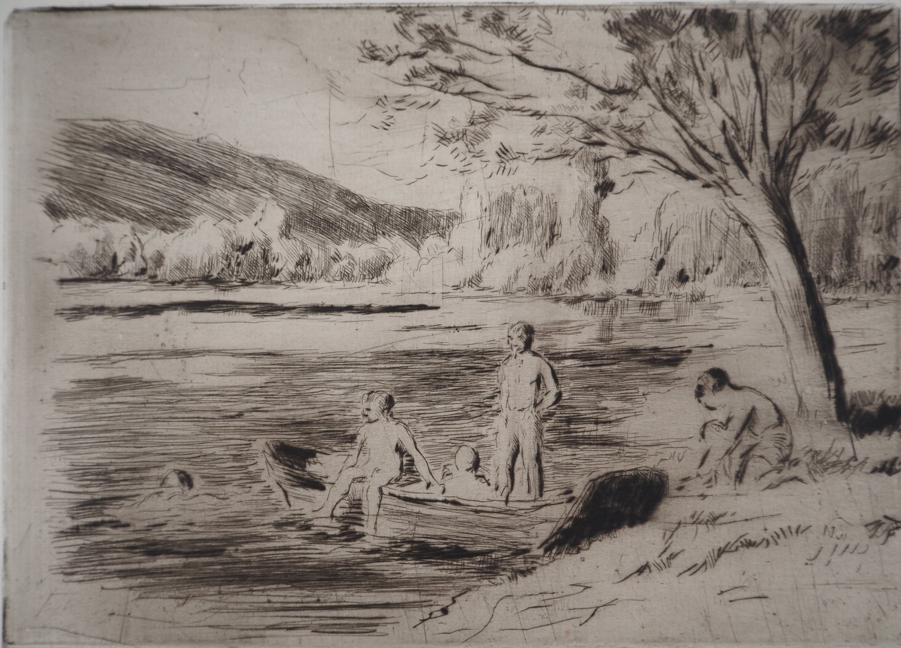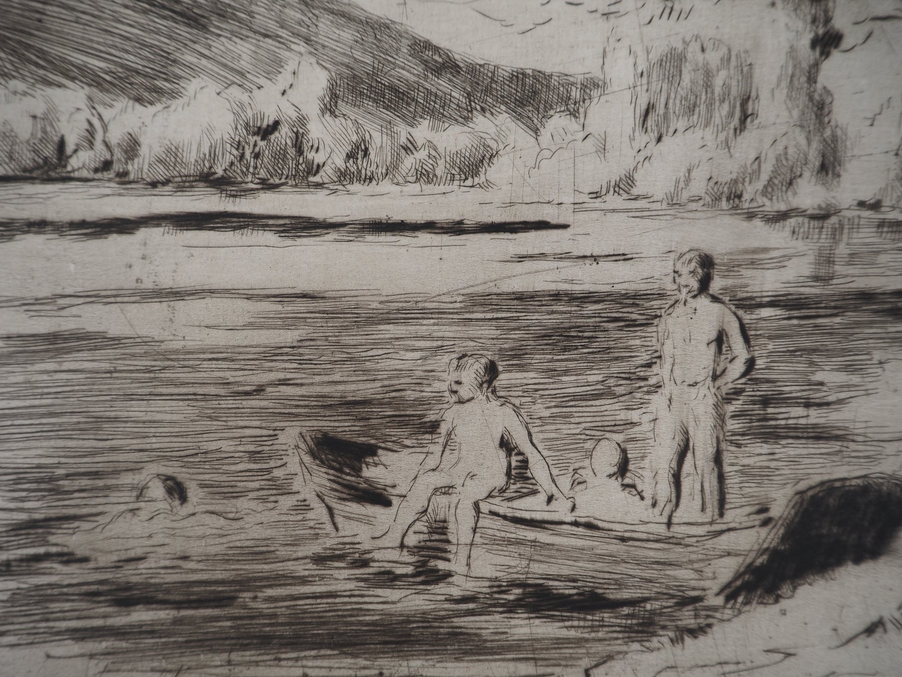 Maximilien LUCE : Baigneurs à la rivière, Bessy - Gravure (détail)