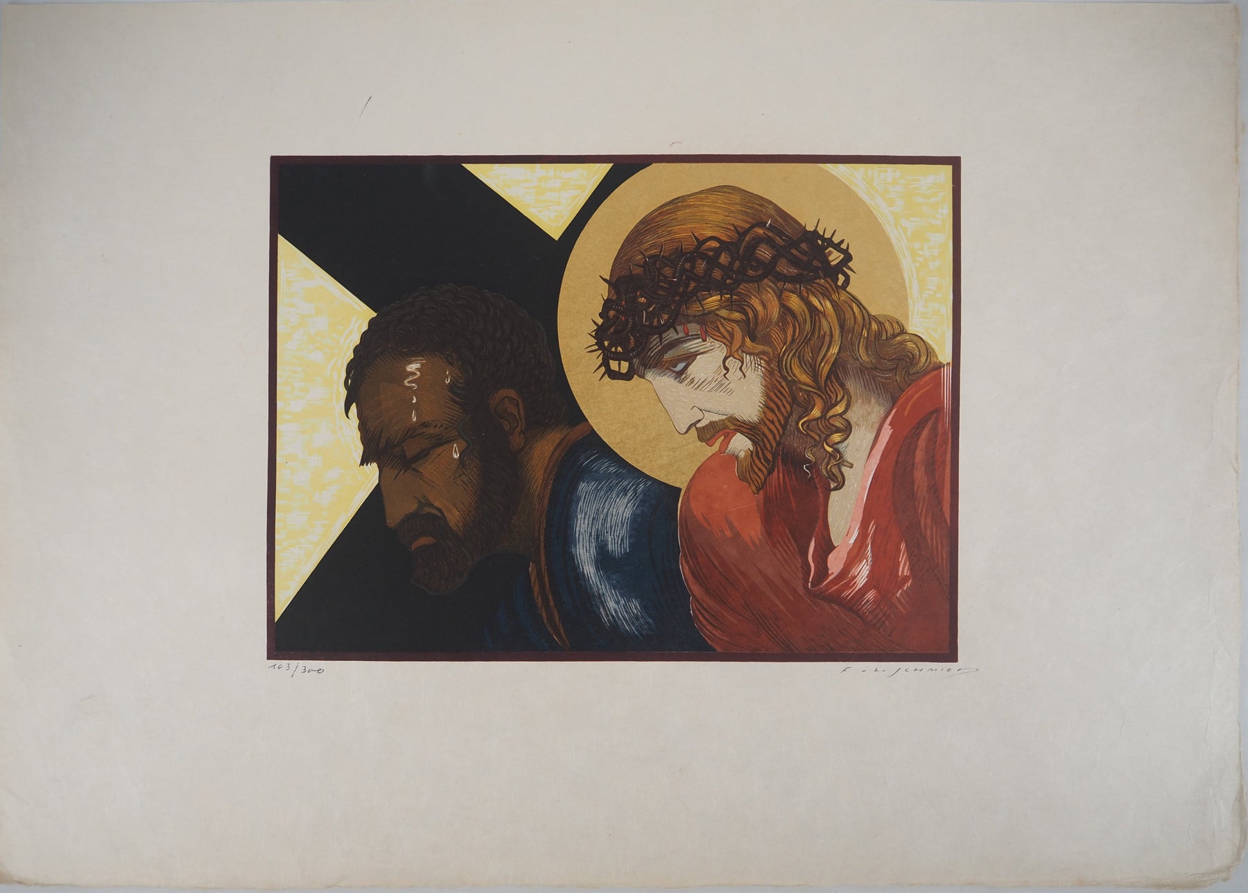 AF François, Louis Schmied, Christ on the Way of the Cross (Towards Golgotha), Signed woodcut