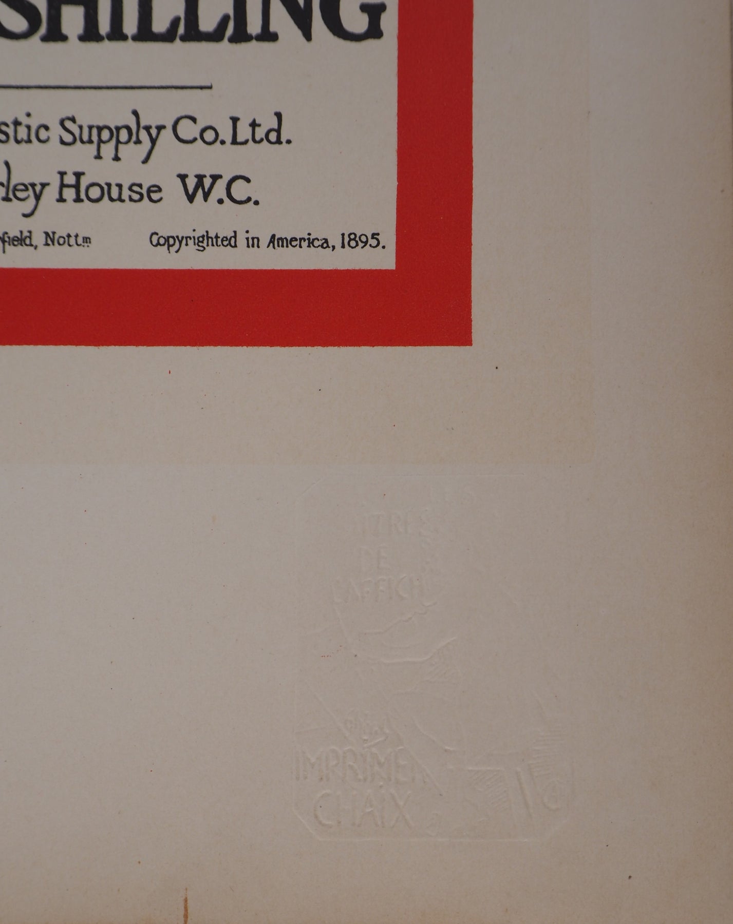 The leaflet bears the publisher's stamp and the lithograph is also authenticated by the dry stamp of the publisher, L'Imprimerie Chaix.