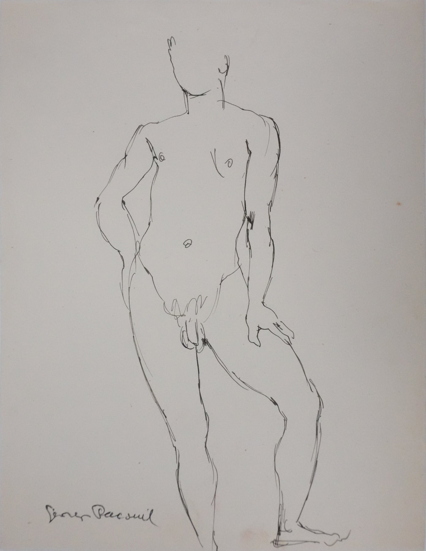 Georges PACOUIL : Homme nu debout, Dessin original signé