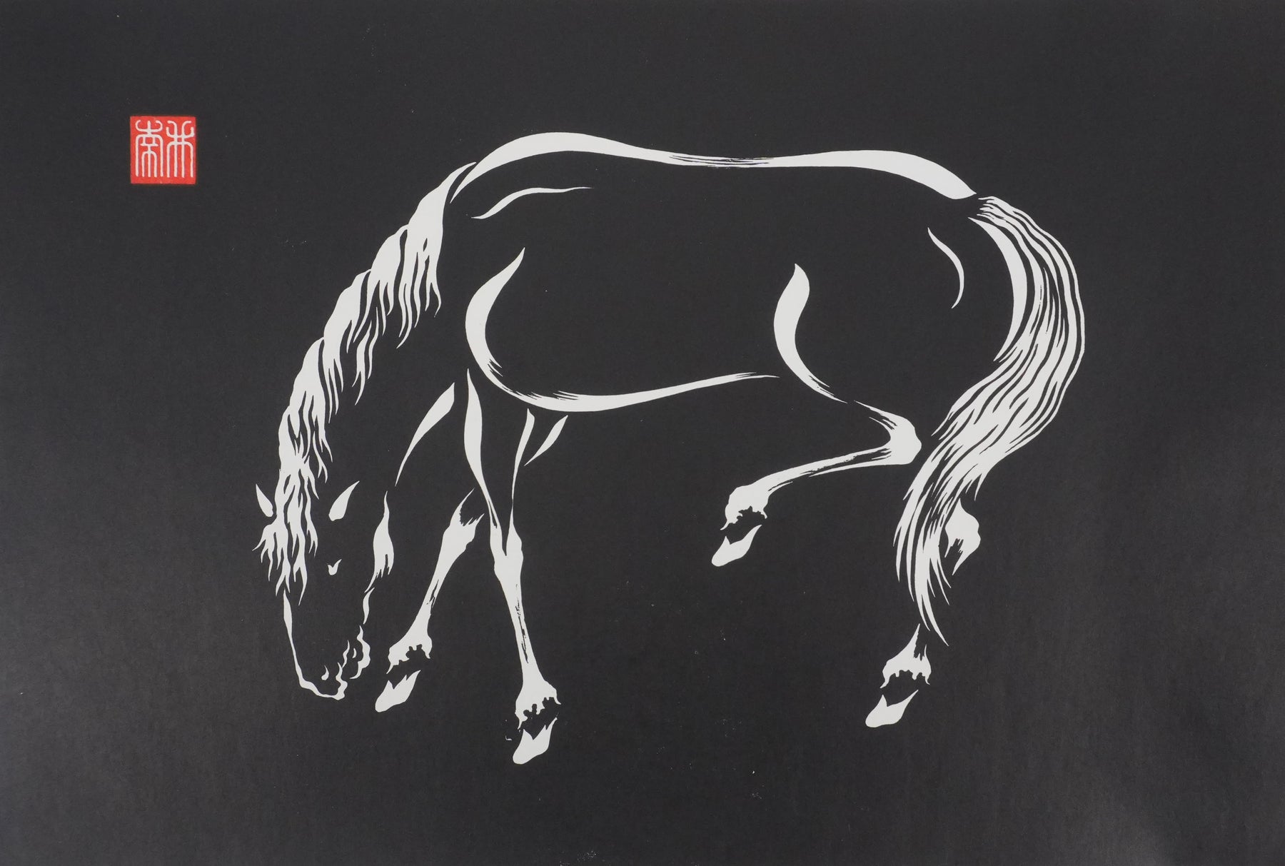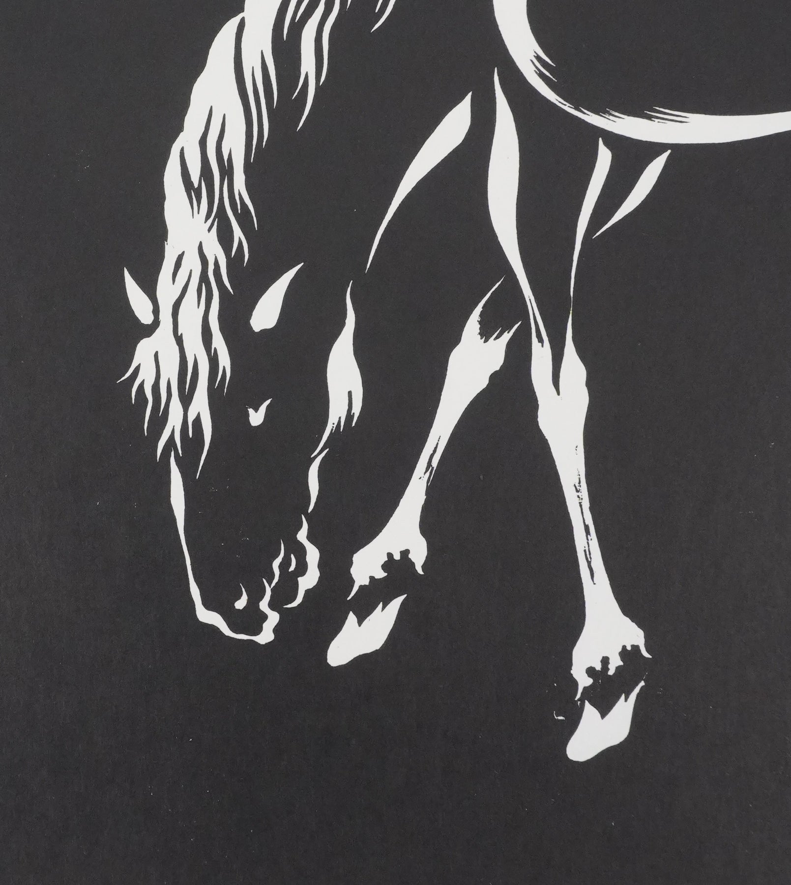 Lithographie sur fond rouge d'après un dessin à l'encre