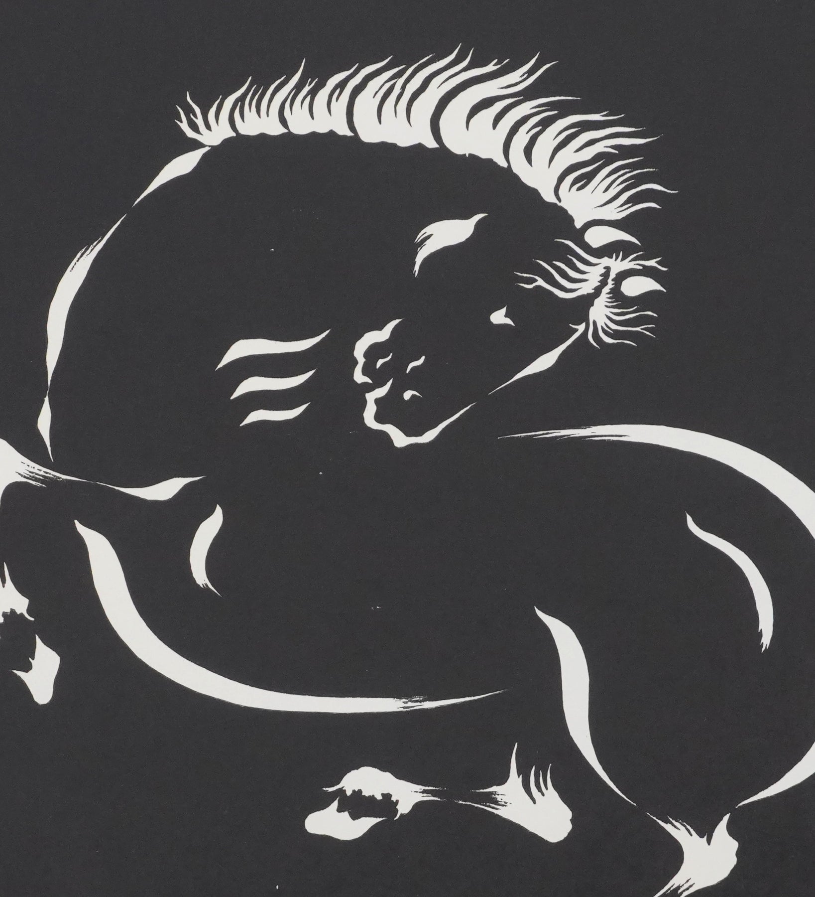 Lithographie sur fond noir d'après un dessin à l'encre