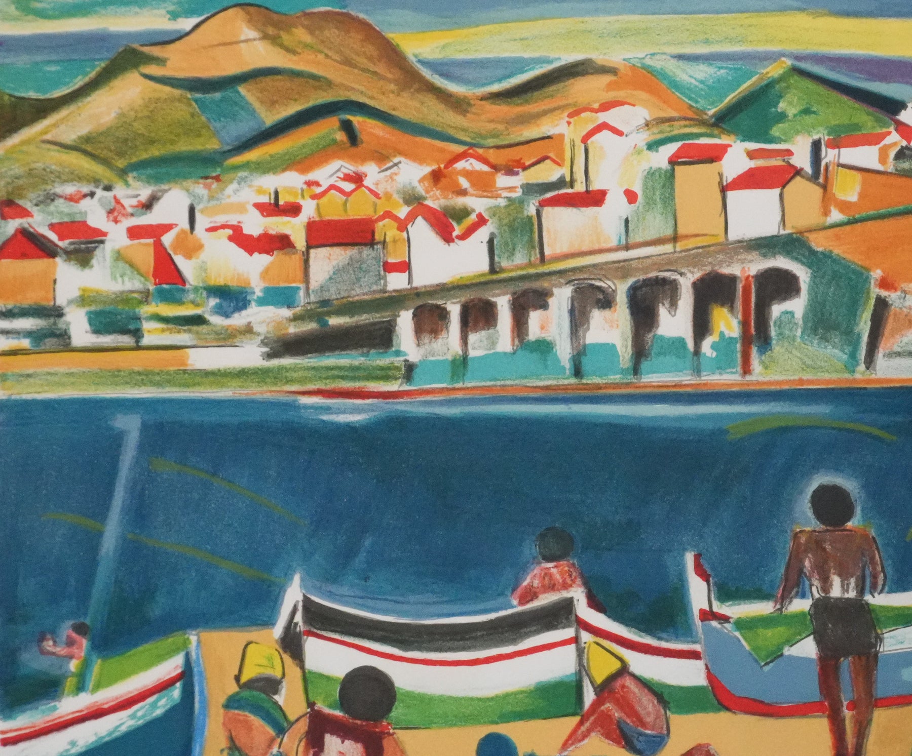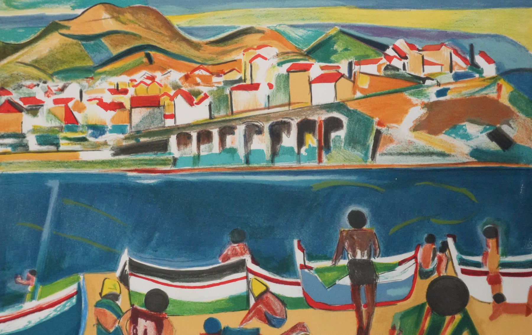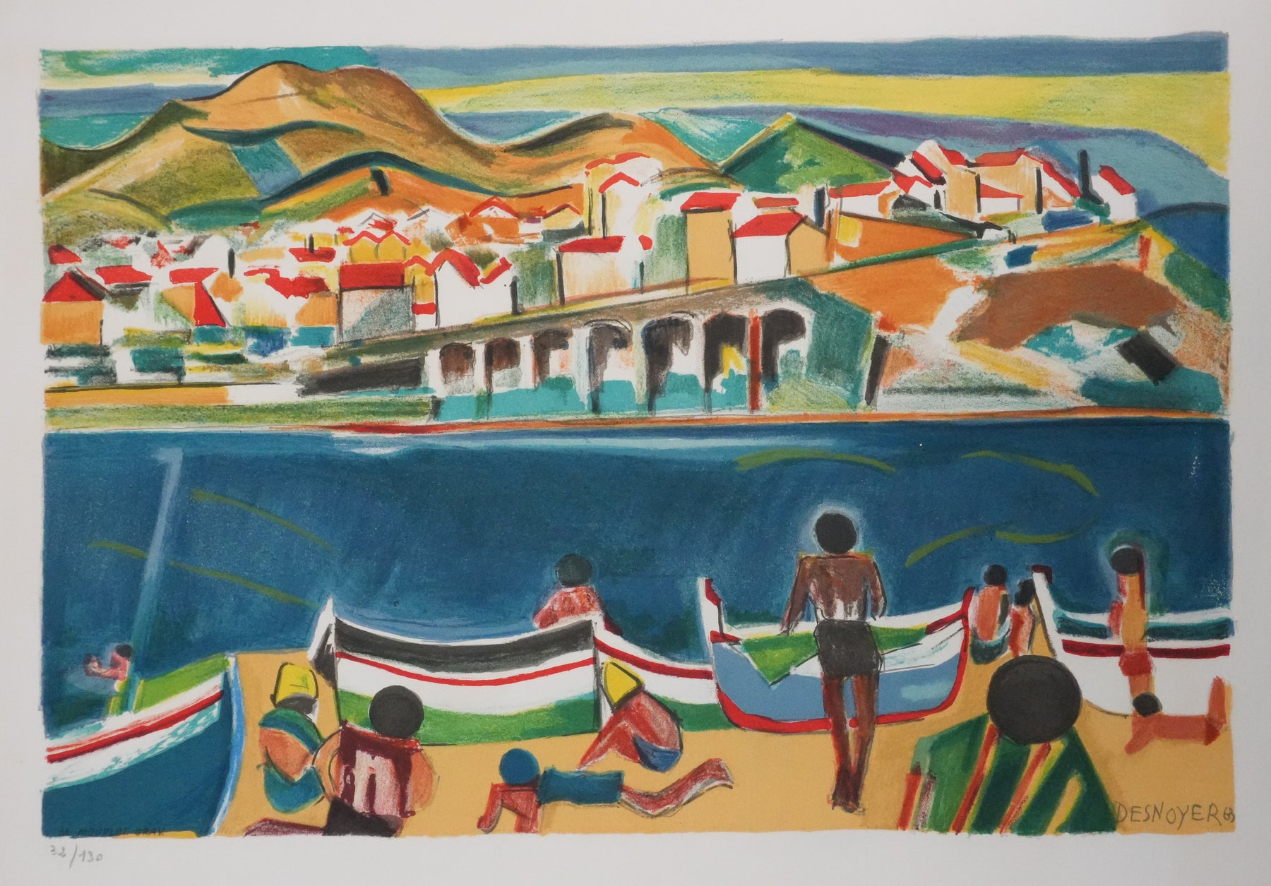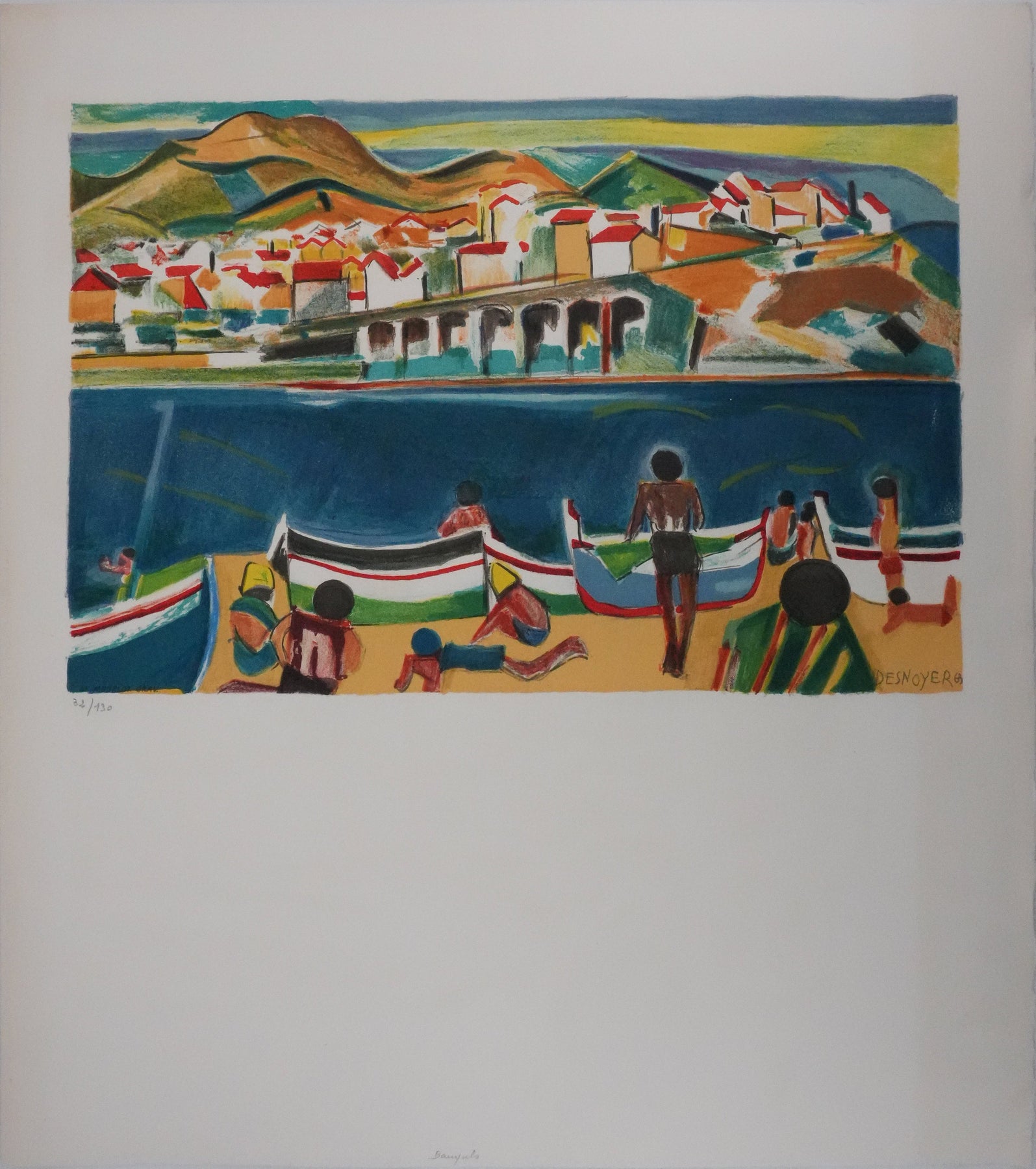 François DESNOYER : Vue de Banyuls sur mer, Lithographie originale (vue générale) - Crédit photo : Galerie Art.Paris