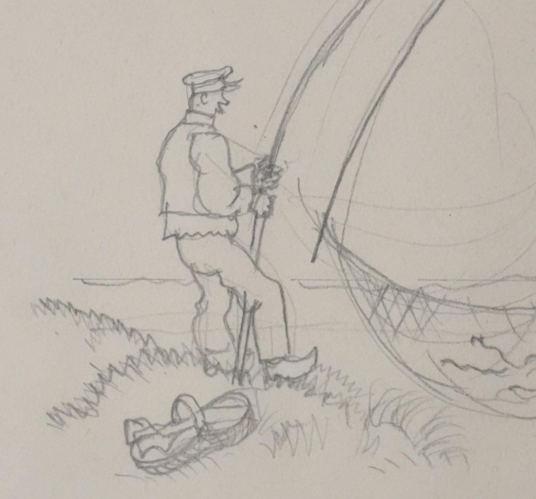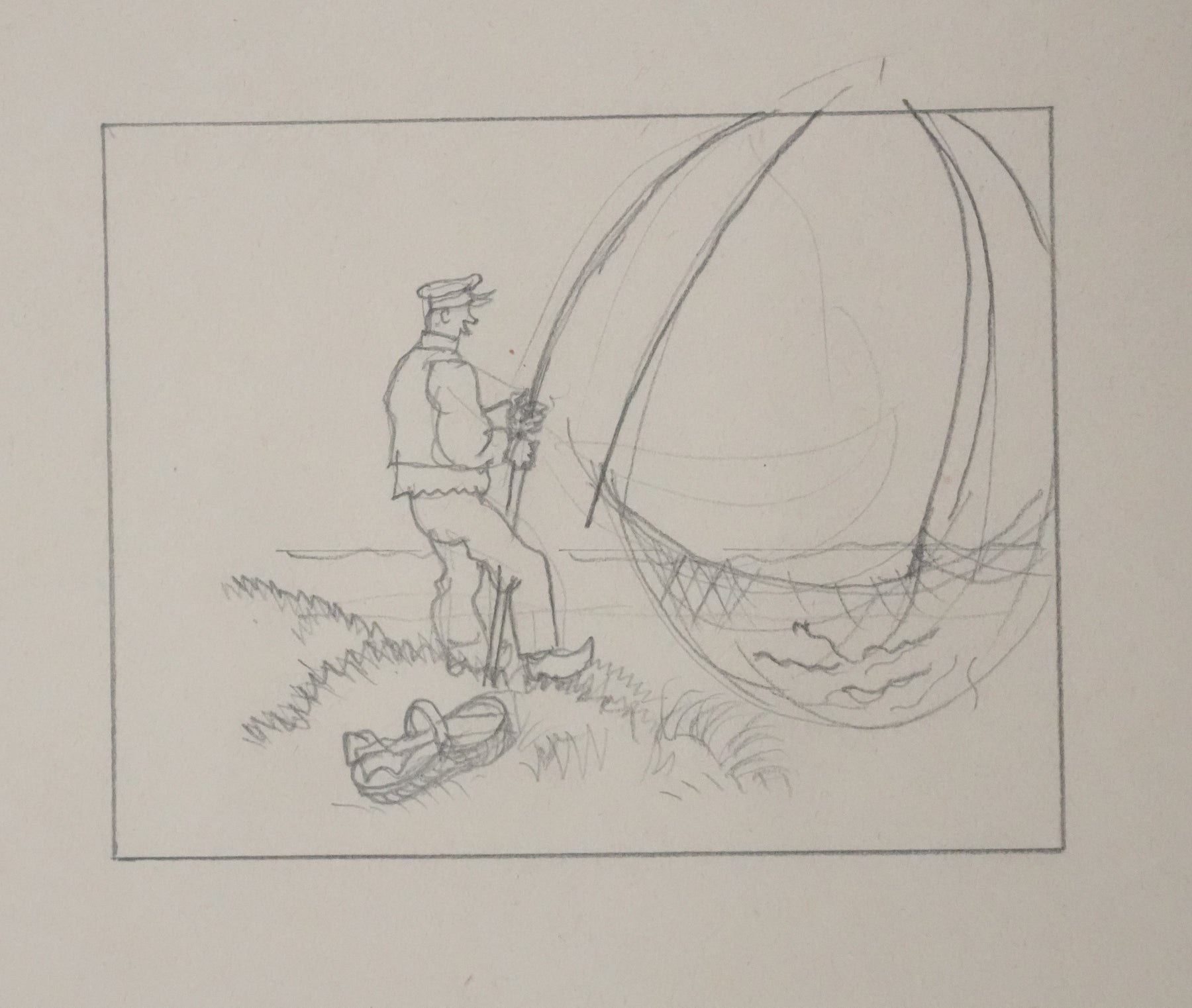 INFORMATION : Dessin préparatoire réalisé pour illustrer The Finer Cooking or Dishes for Parties, de X.M Boulestin, édité par Cassel & Company Ltd en 1937.
