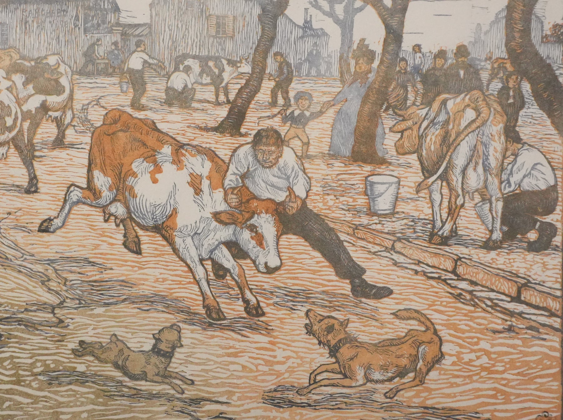 Paul-Emile COLIN : Les éleveurs de vaches (état brun), Gravure sur bois originale (photo de détail 4) - Crédit photo : Galerie Art.Paris