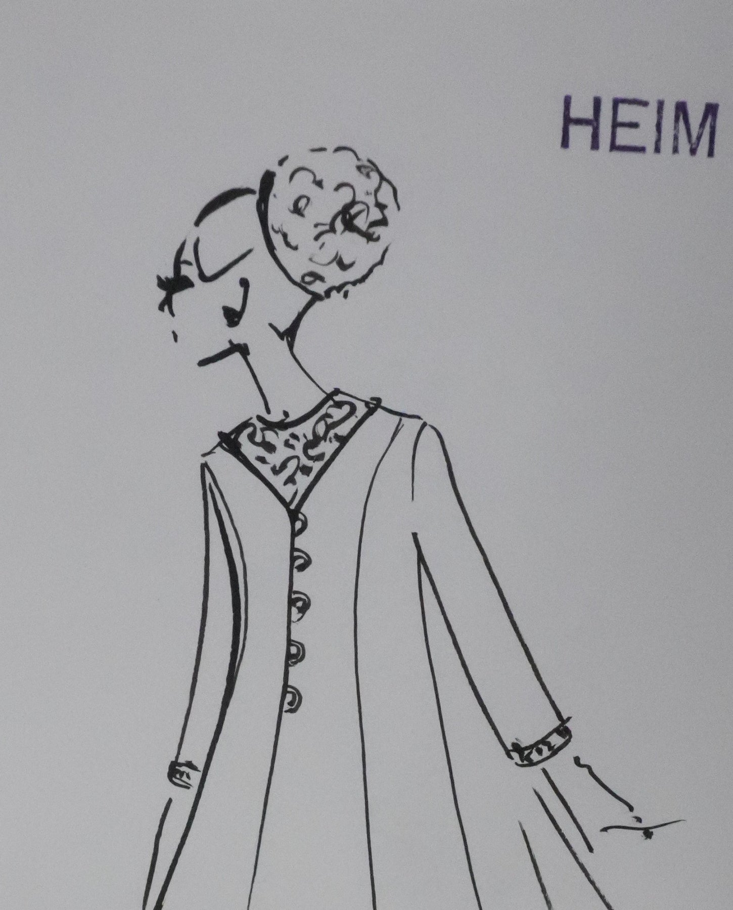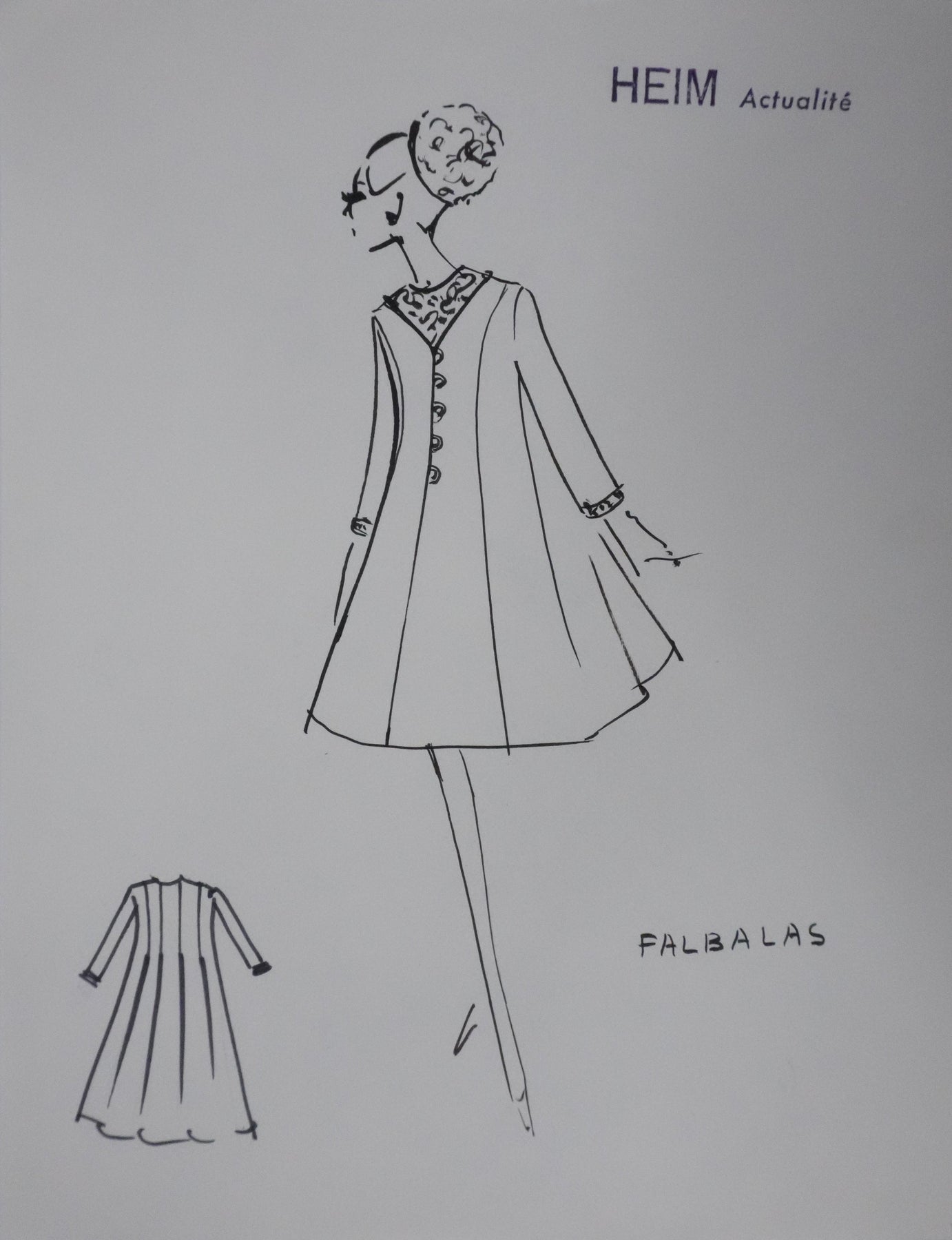 Jacques HEIM : Silhouette falbalas, Dessin original signé