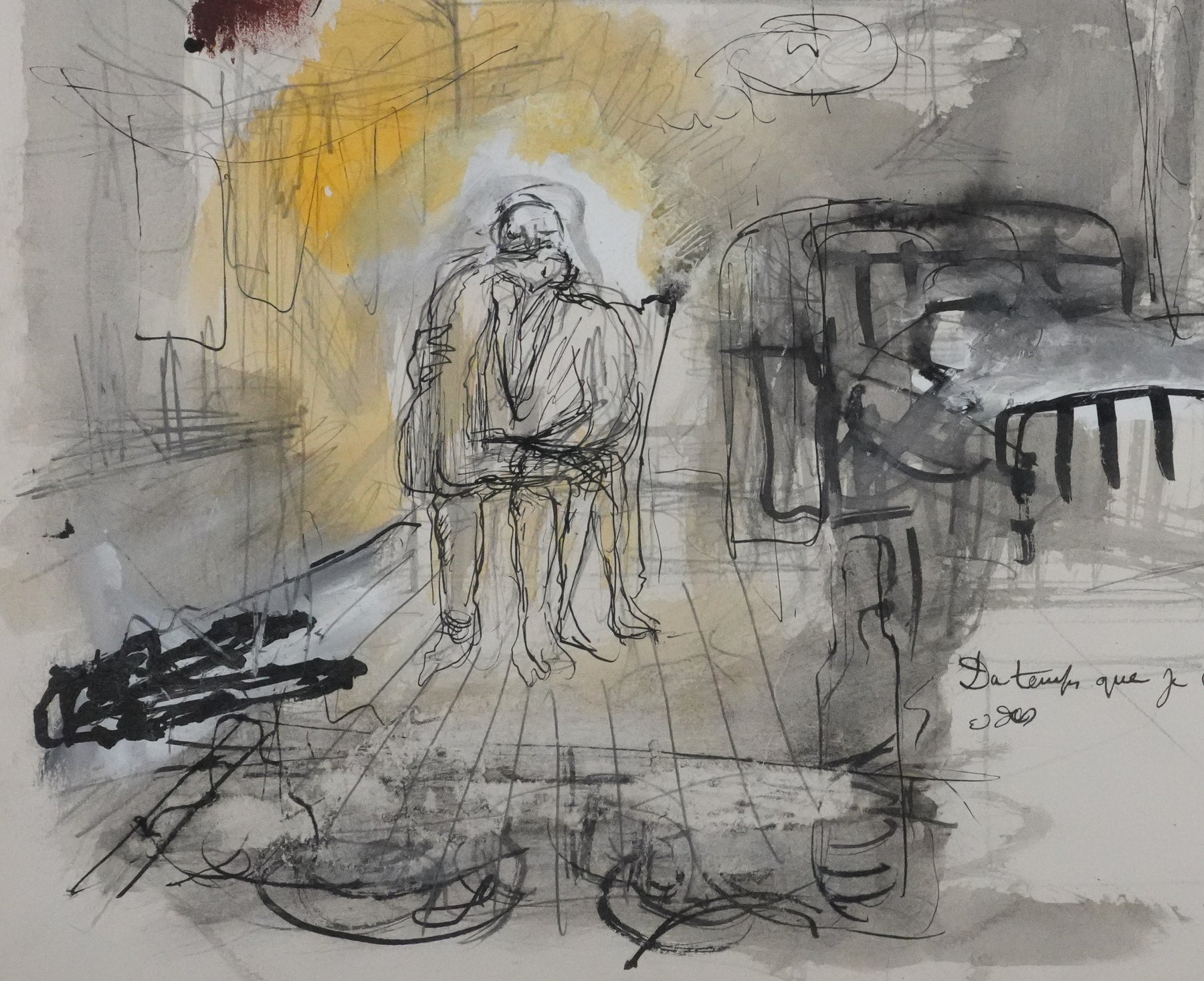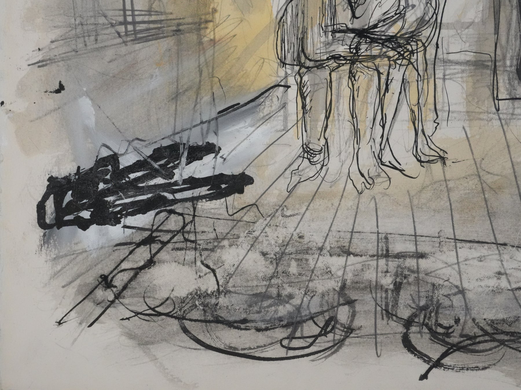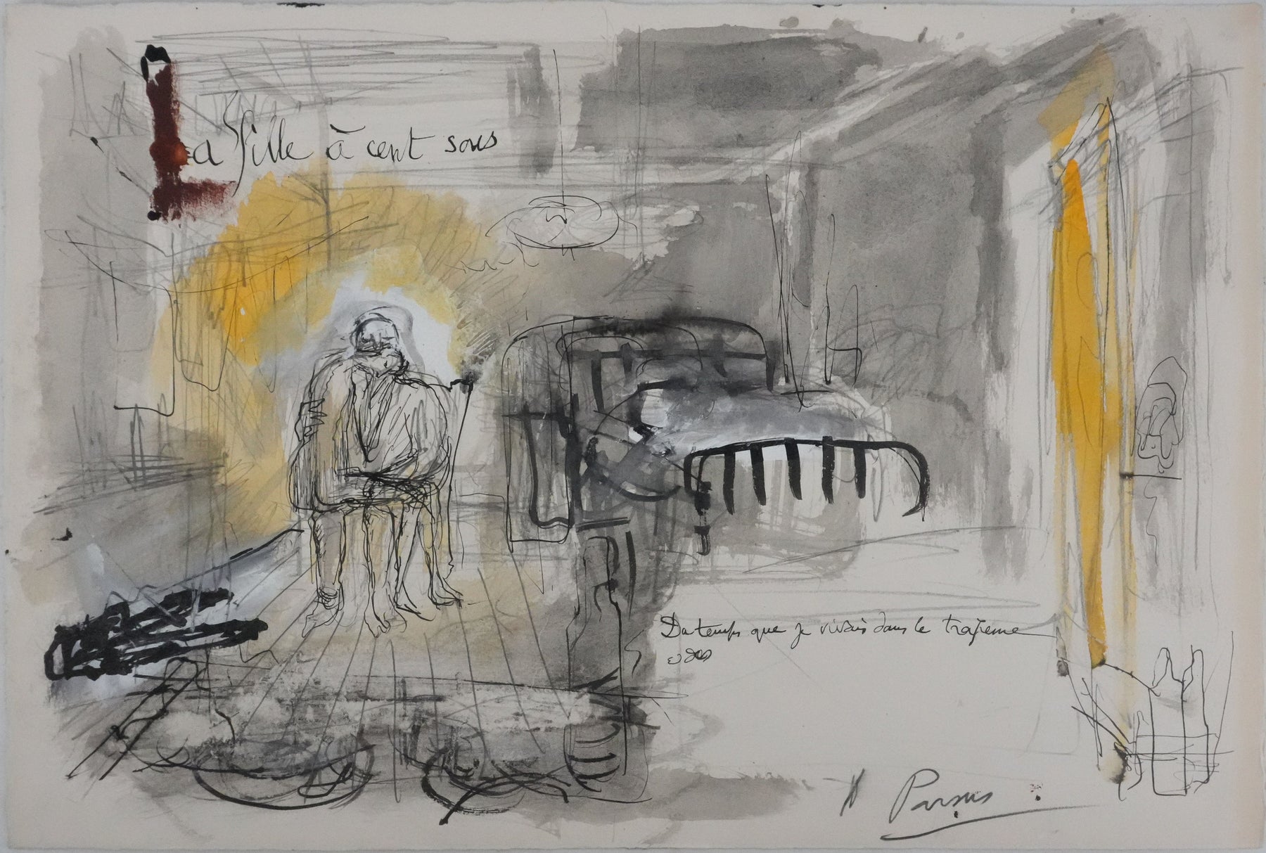 INFORMATION : Dessin préparatoire créé pour illustrer Les œuvres poétiques de Georges Brassens, éditées par le Grésivaudan (Grenoble) en 1974.