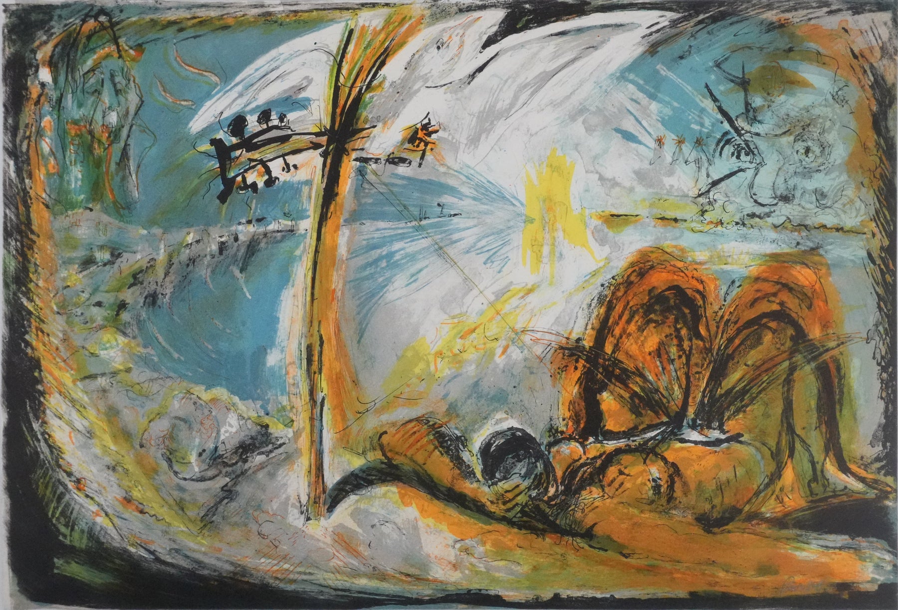 INFORMATION : Lithographie créée pour illustrer Les œuvres poétiques de Georges Brassens, éditées par le Grésivaudan (Grenoble) en 1974.