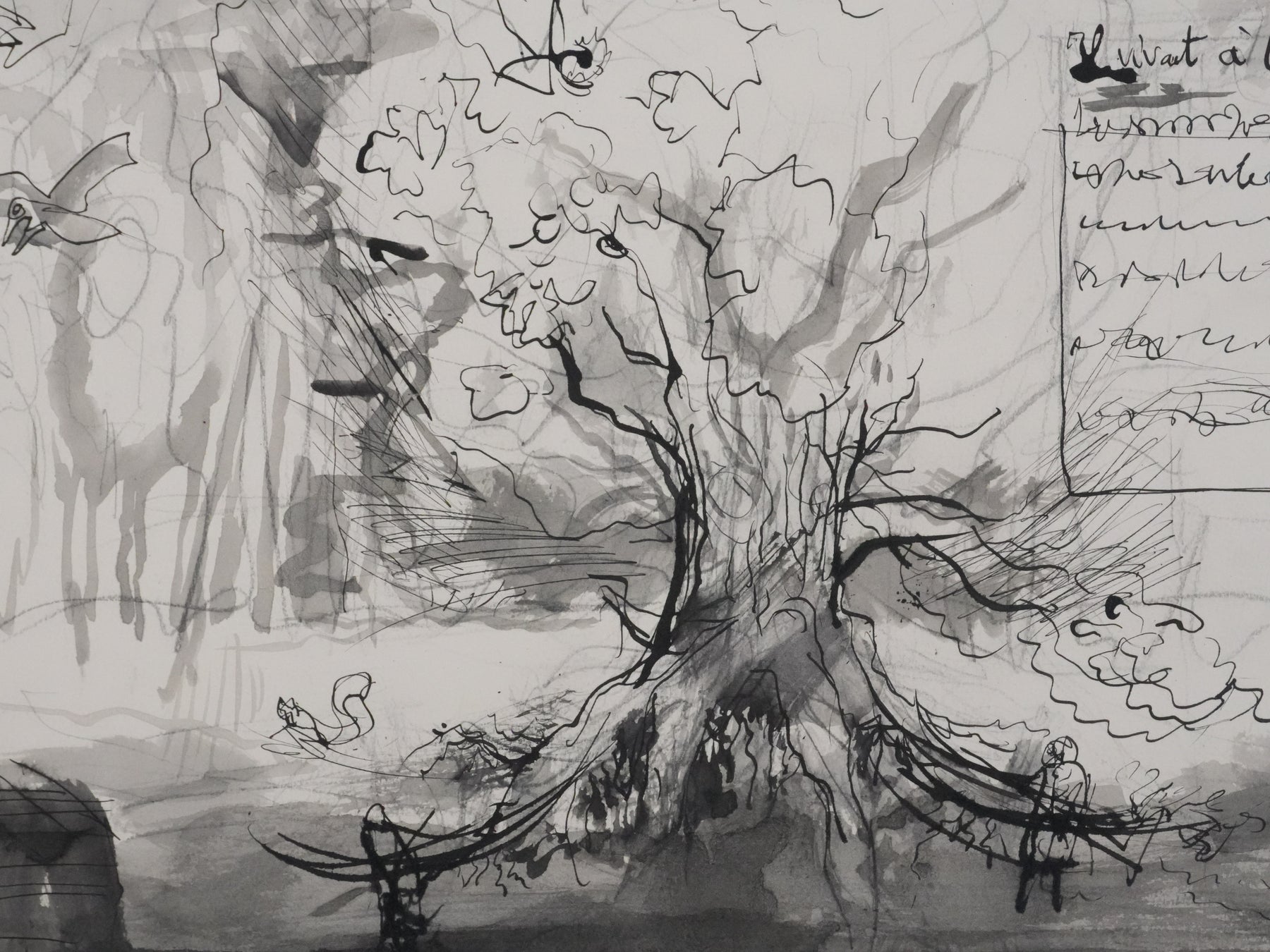 INFORMATION : Dessin préparatoire créé pour illustrer Les œuvres poétiques de Georges Brassens, éditées par le Grésivaudan (Grenoble) en 1974.