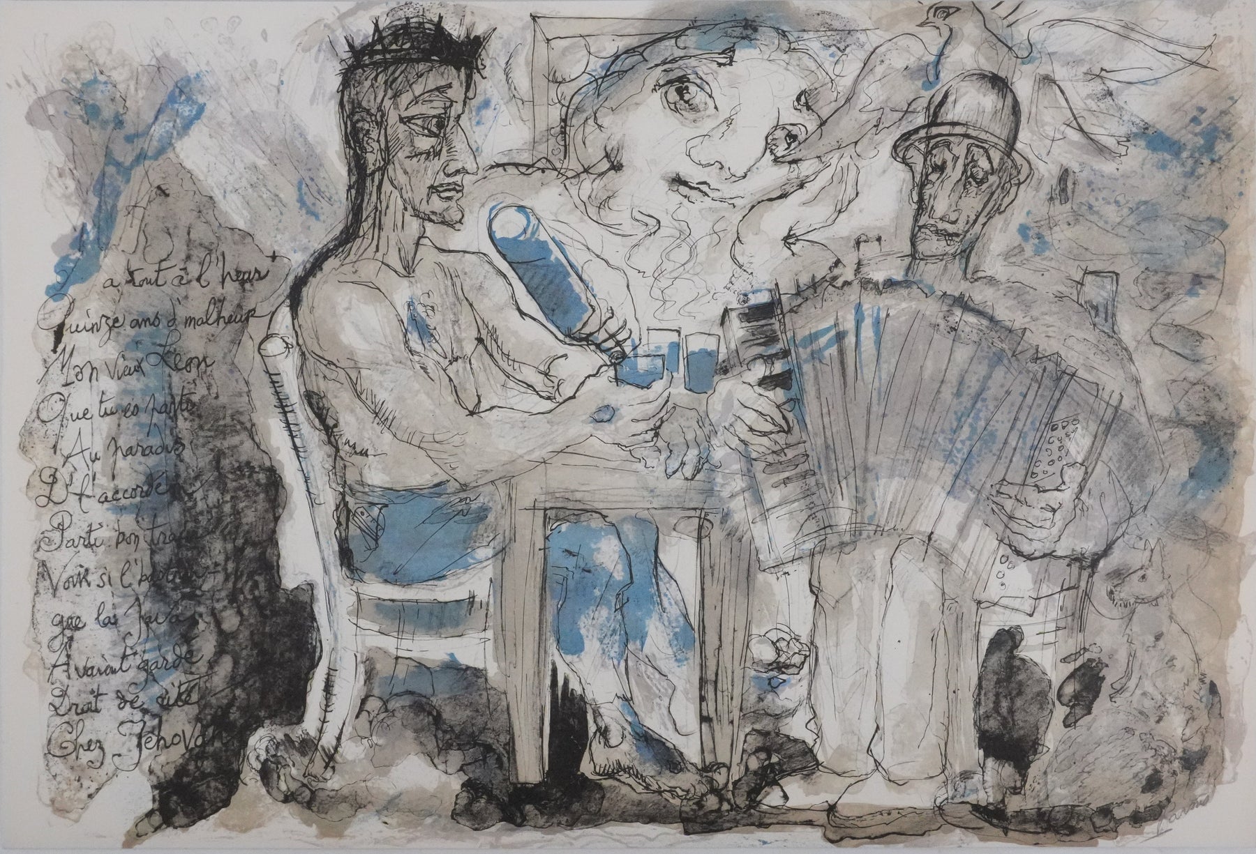 INFORMATION : Lithographie créée pour illustrer Les œuvres poétiques de Georges Brassens, éditées par le Grésivaudan (Grenoble) en 1974.