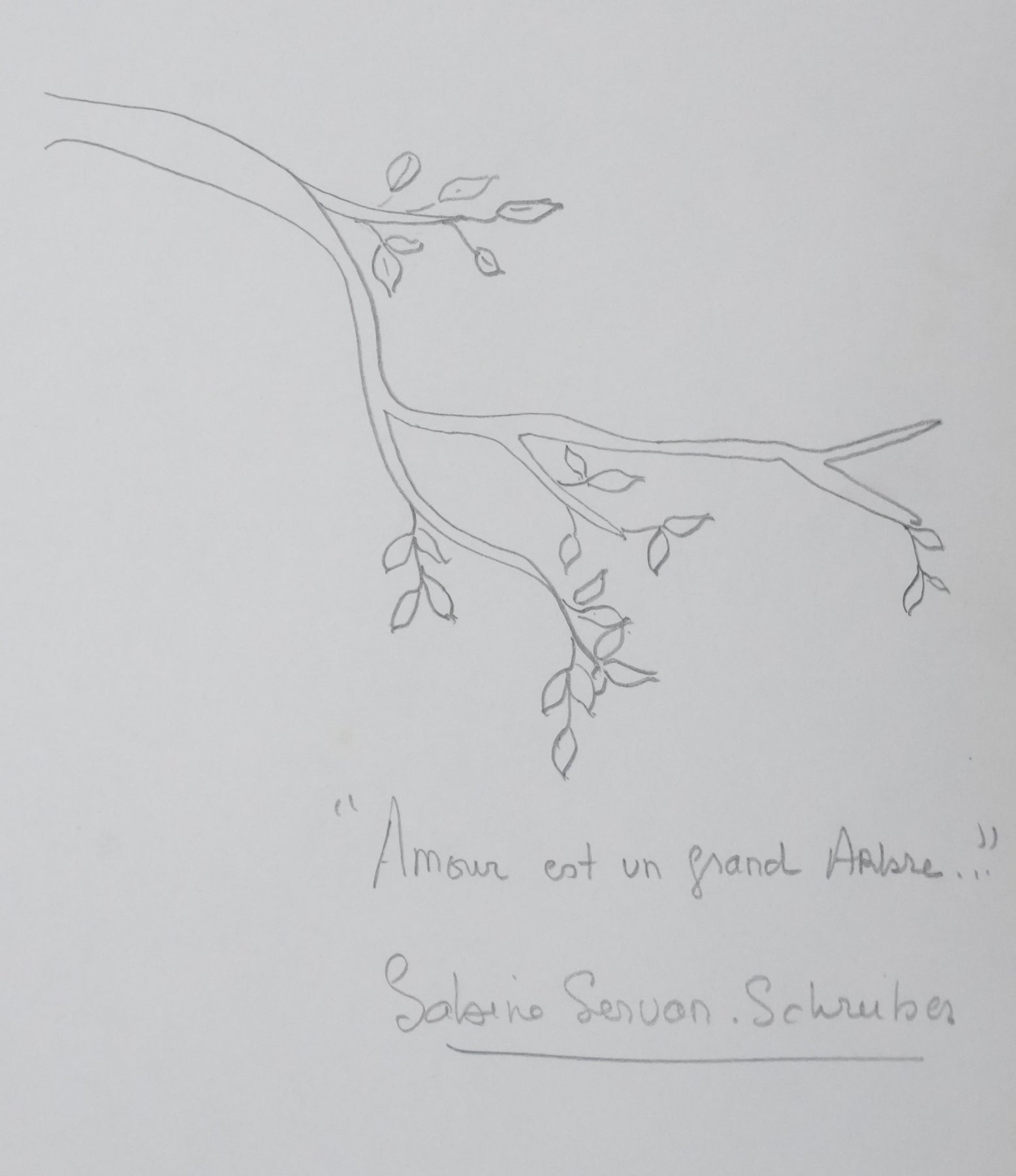 Sabine SERVAN SCHREIBER : L'amour est un grand arbre, Autographe et dessin original signé