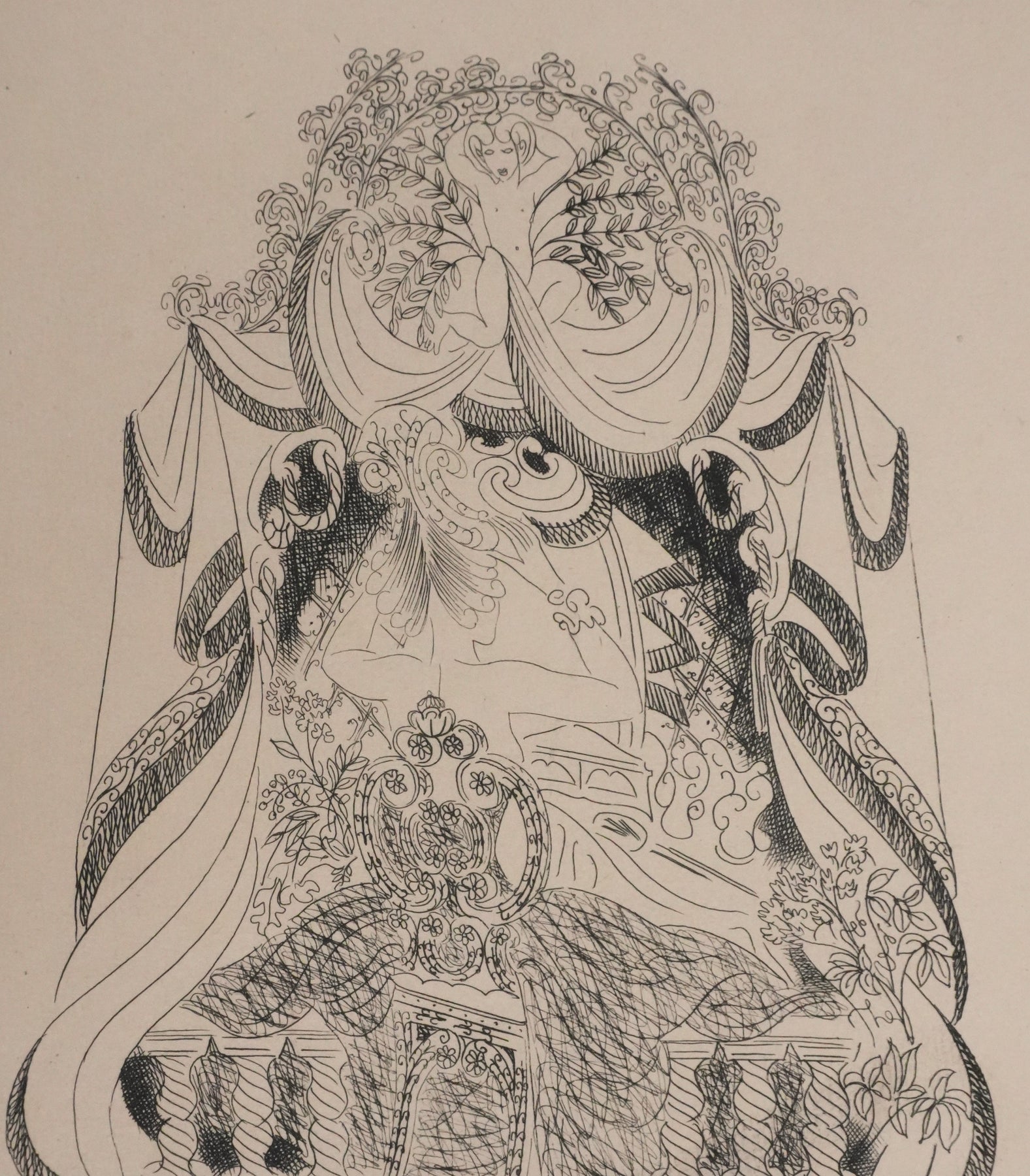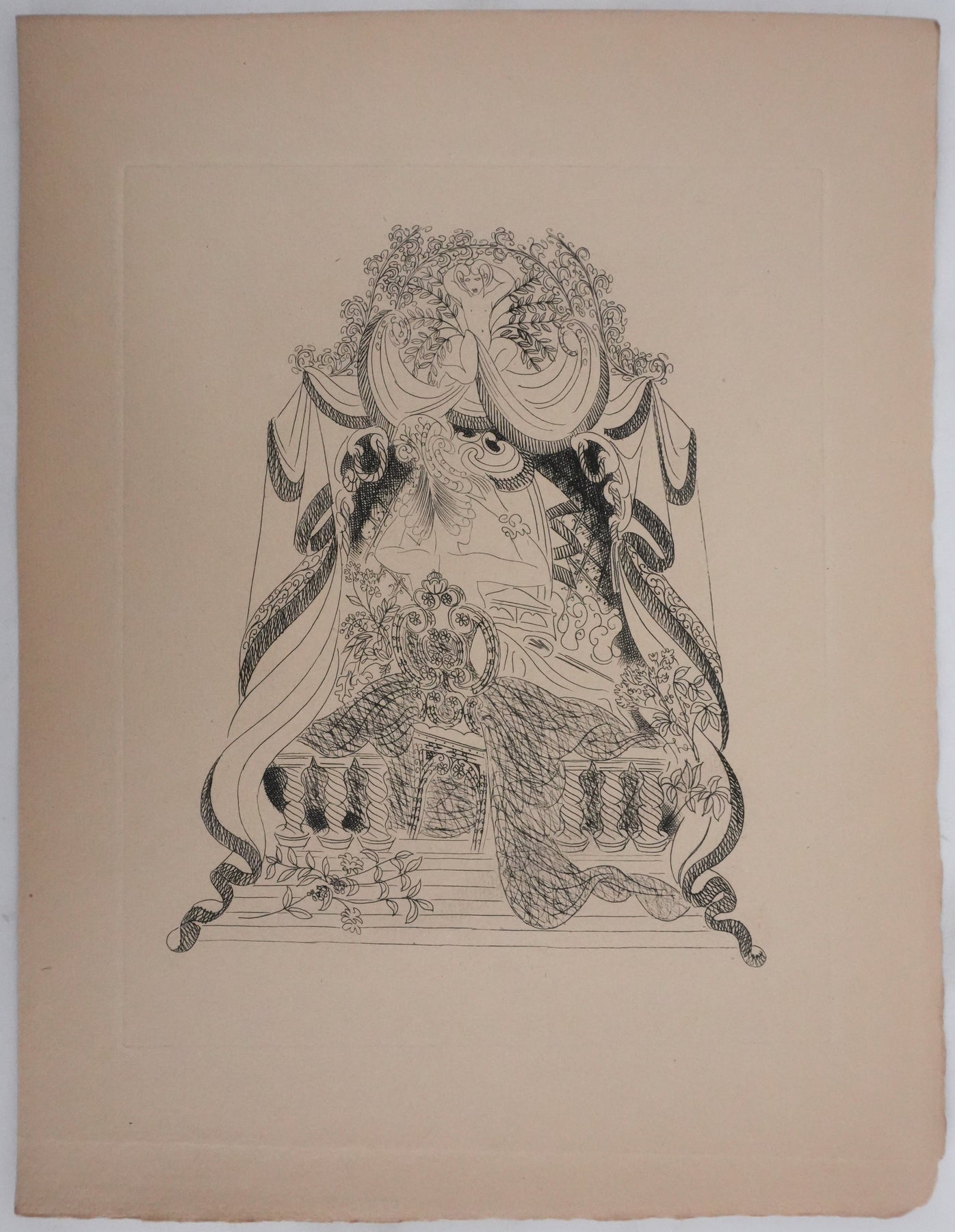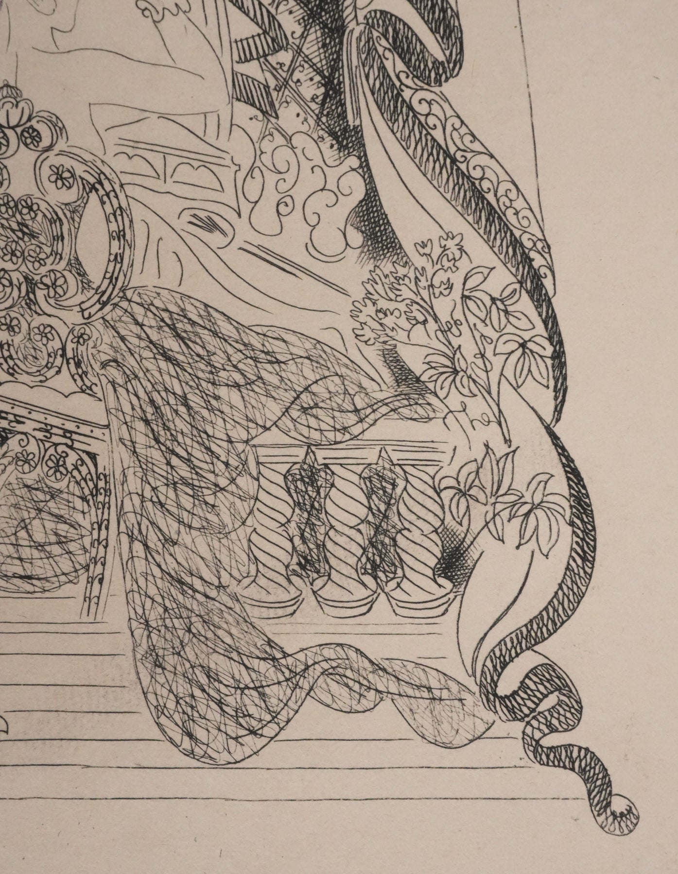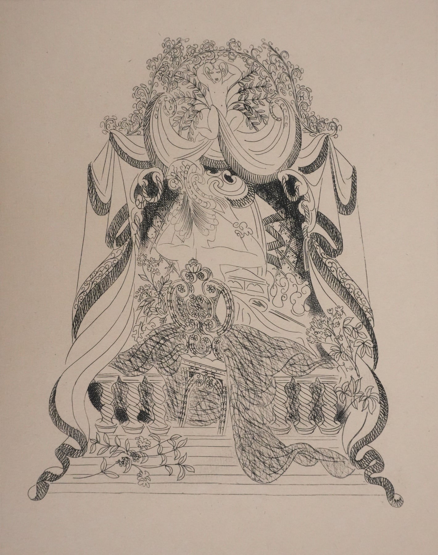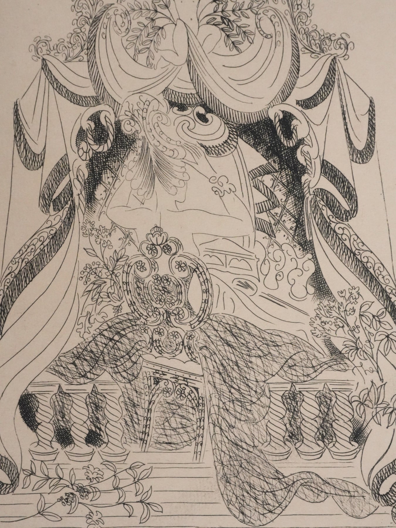 INFORMATION : Gravure créée pour illustrer l'ouvrage Le Carrosse du Saint Sacrement (pièce de théâtre de Prosper Mérimée), édité par René Kieffer (Paris). Il s'agit ici de l'état noir.