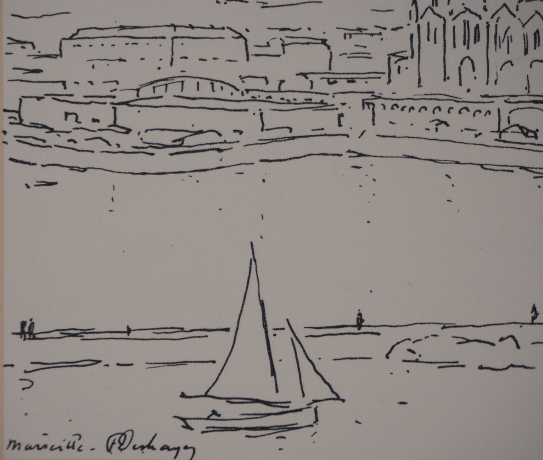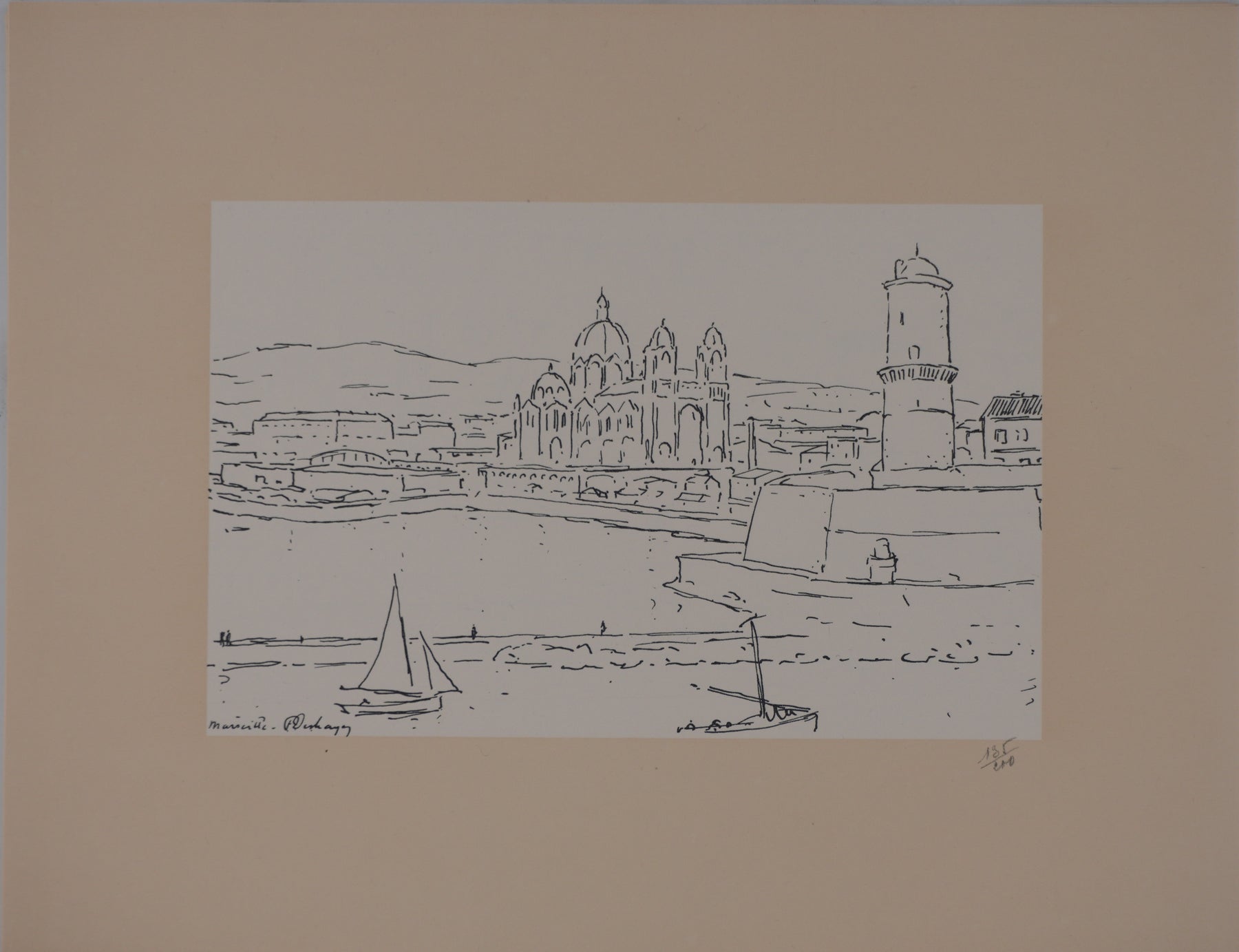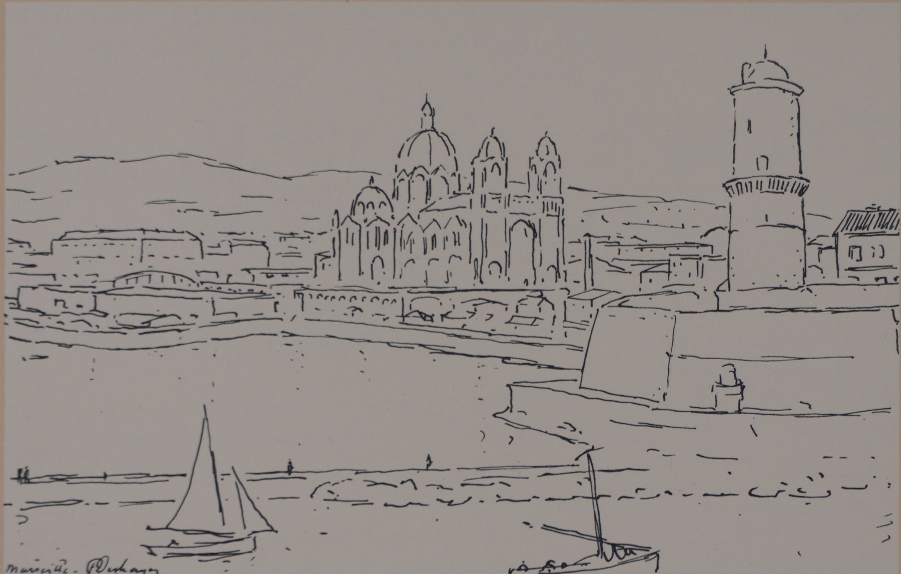 Frédéric DESHAYES : Provence, Marseille vue la cathédrale, Lithographie originale signée
