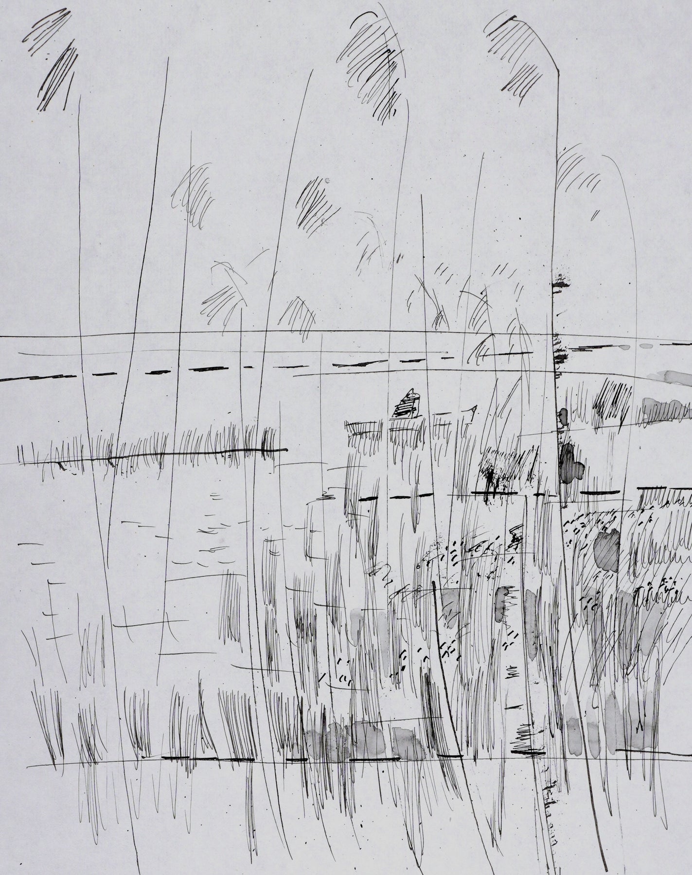 Dessin original à l'encre de chine et lavis