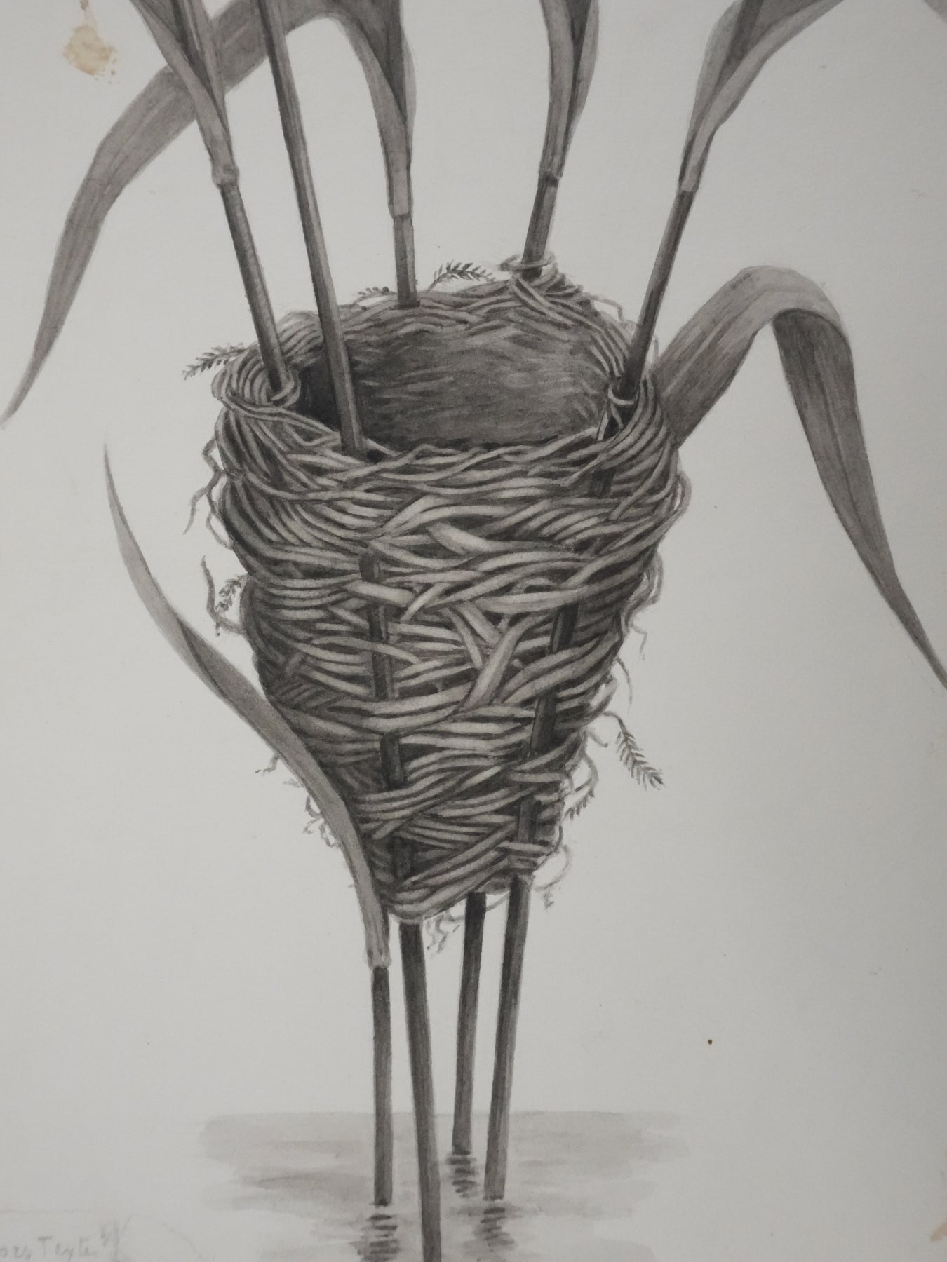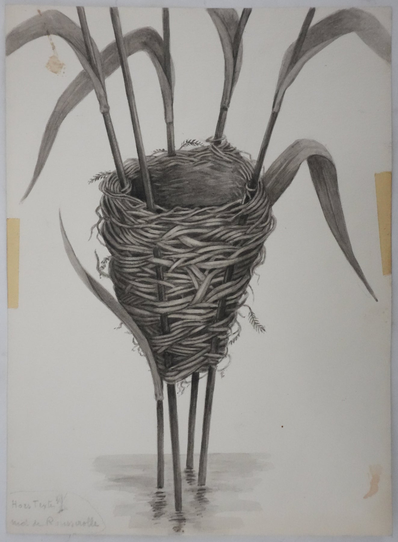 Planche d'ornithologie : Nid de Rousserolle, 1959