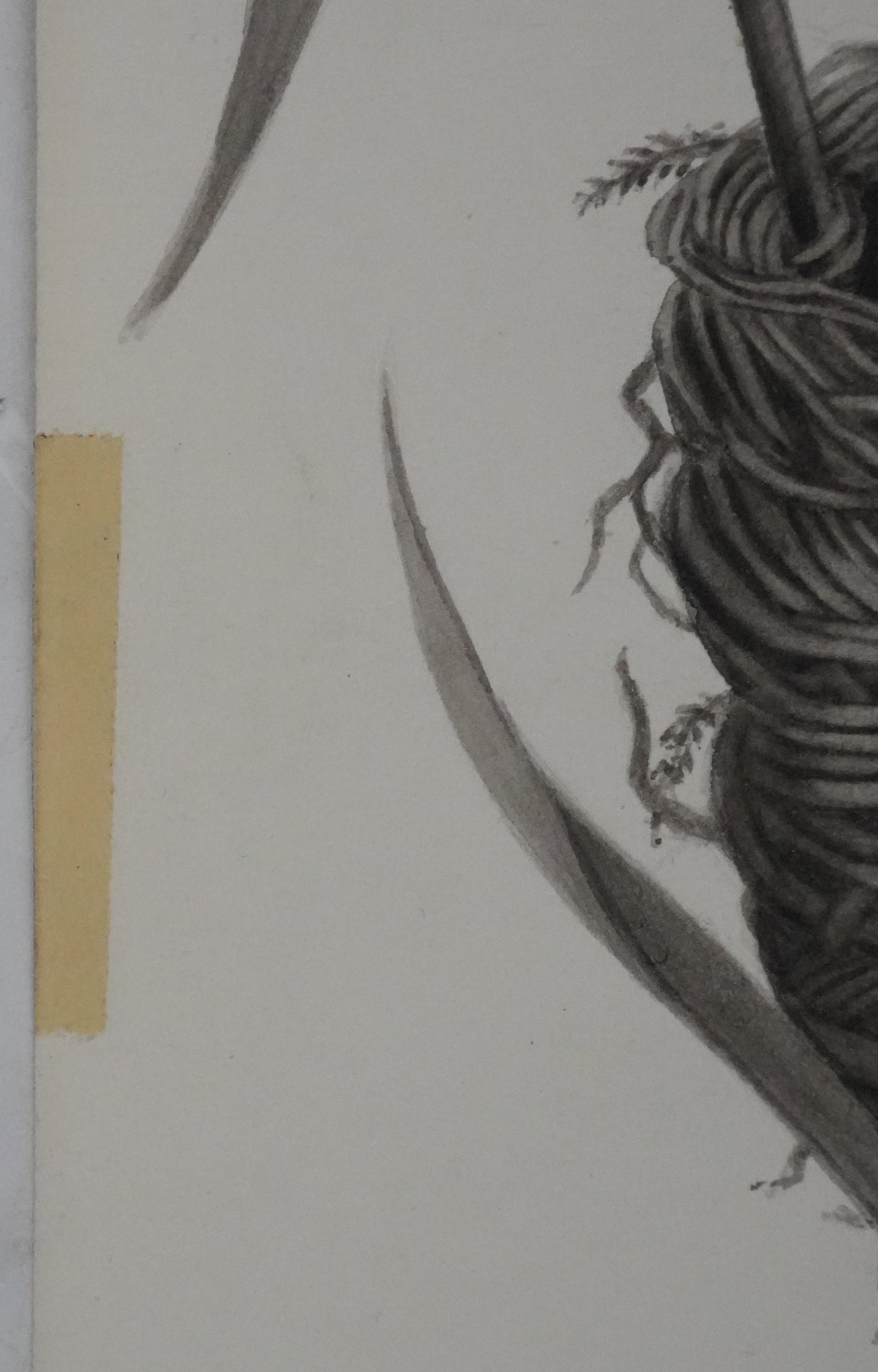 Aquarelle originale sur traits de crayon et d'encre de Chine