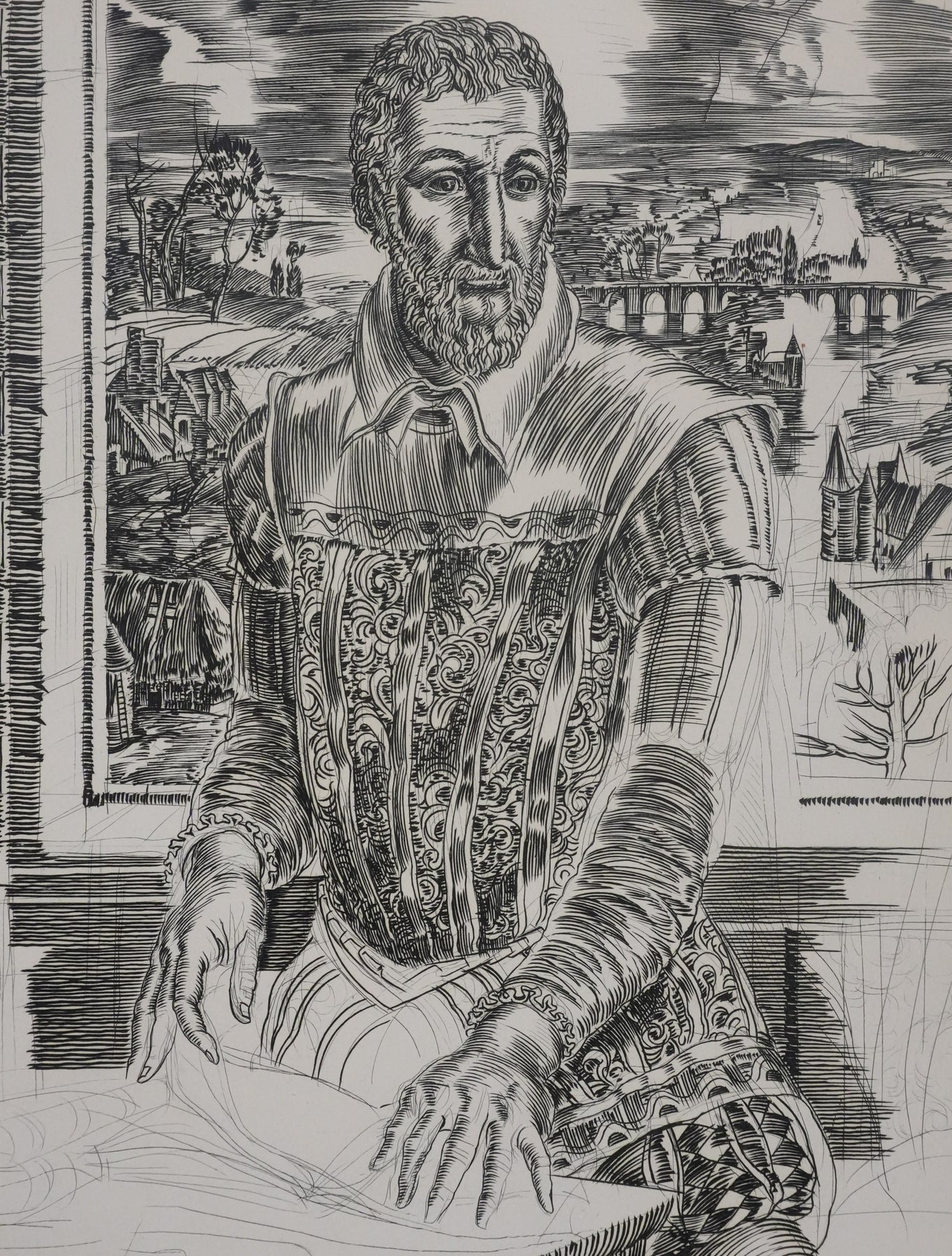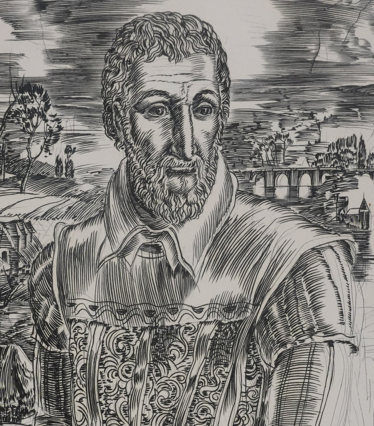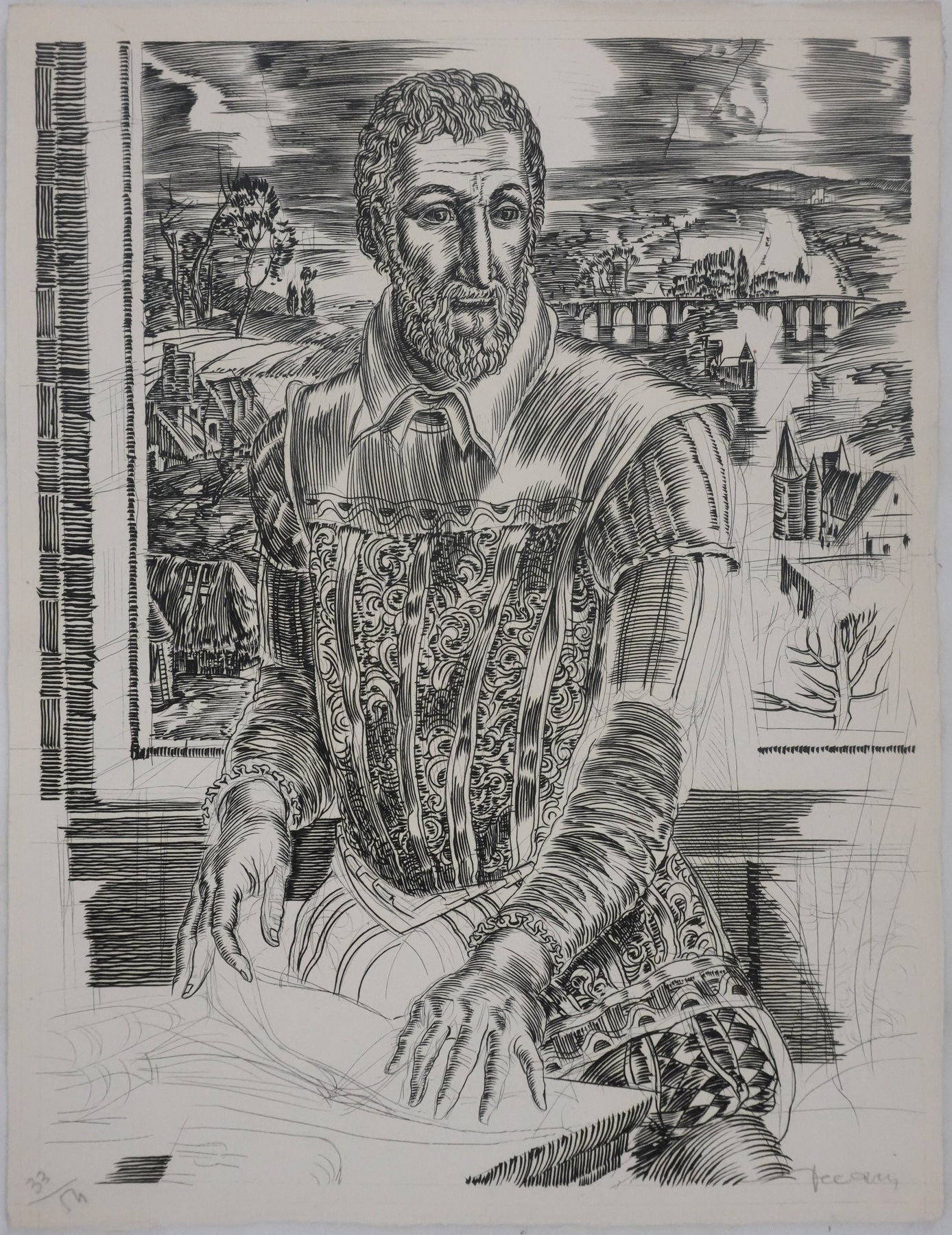 Albert DECARIS : Portrait de Ronsard, Gravure originale signée