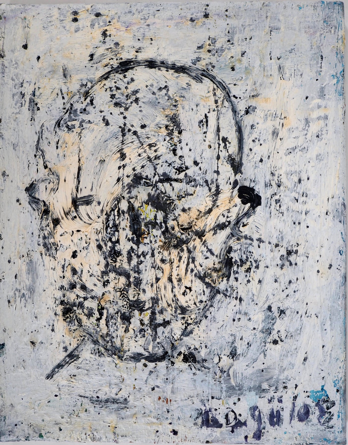 AF Dyap GULER, Expressive head in blue, black and white, Mixed media on canvas