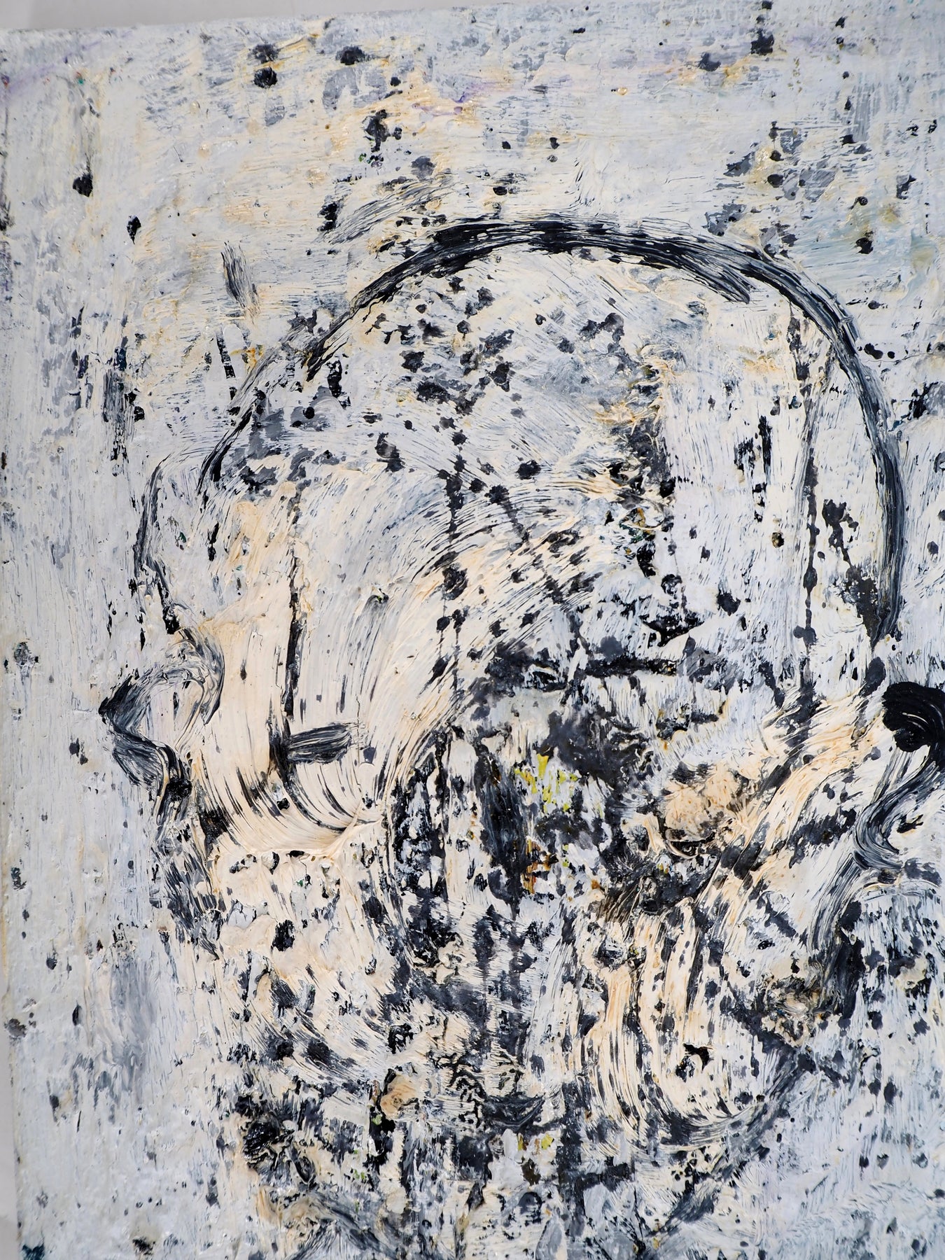 Dyap GULER : Tête expressive en bleu, noir et blanc - Tableau (détail)