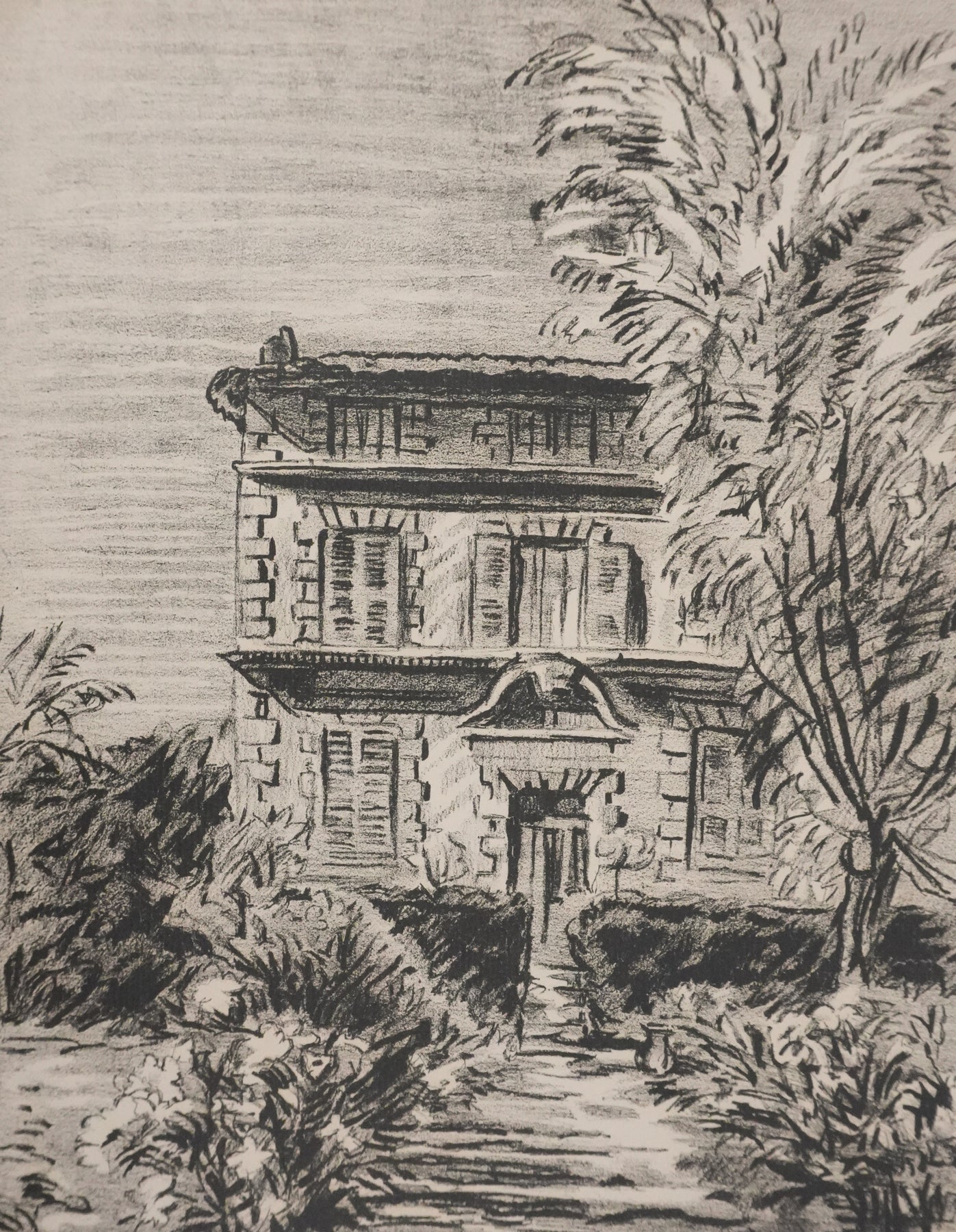 Robert LE VENEUR : Provence, Le mas provençal (noir), Lithographie signée