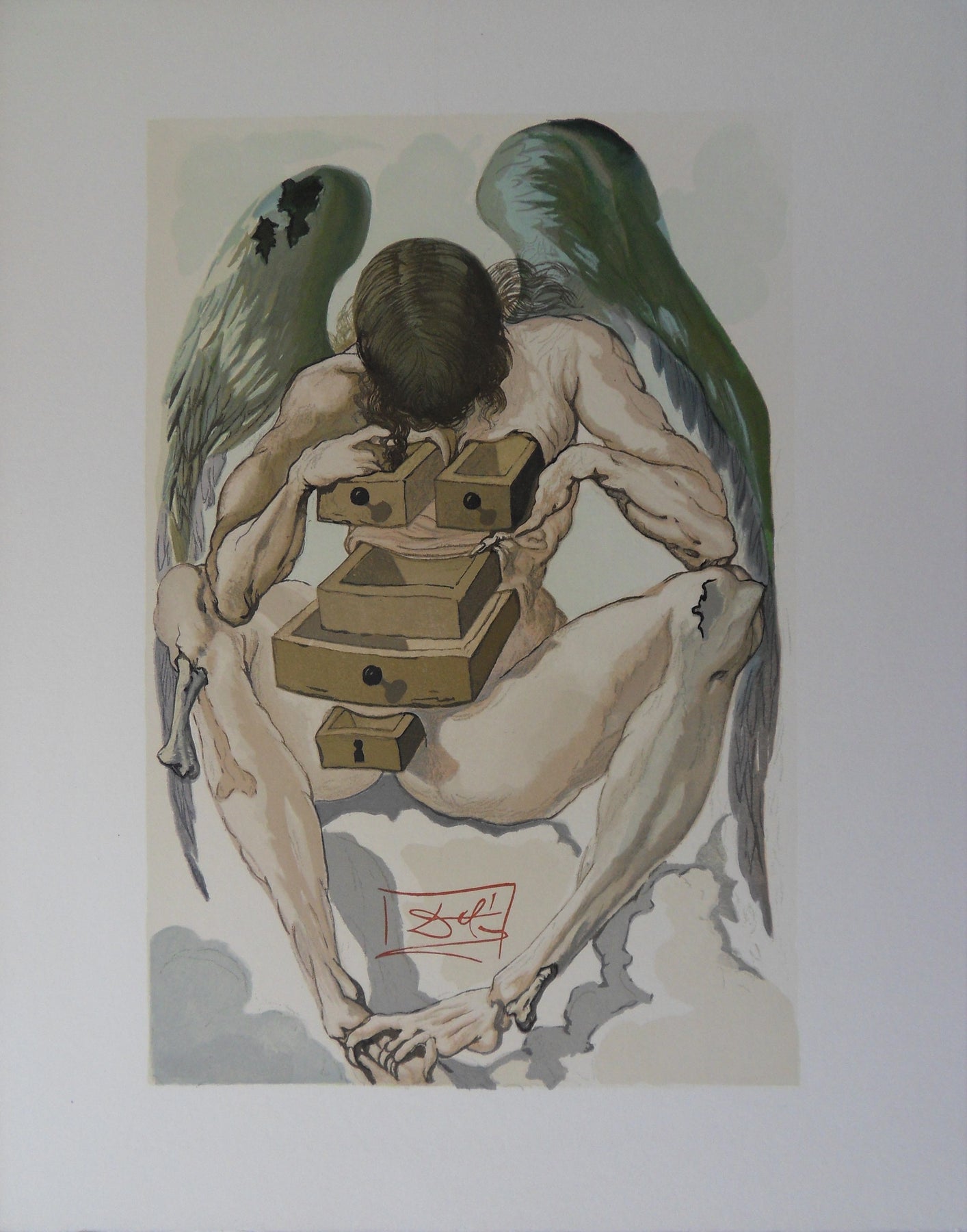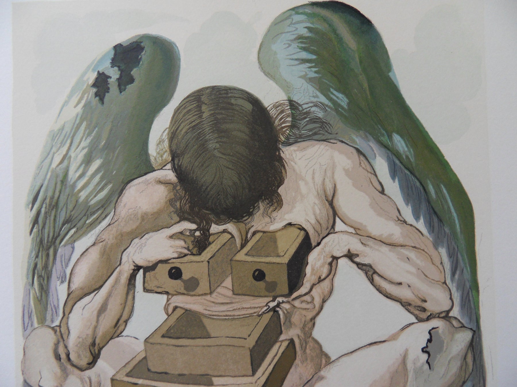 Salvador DALI : L'ange déchu, Bois gravé original signé