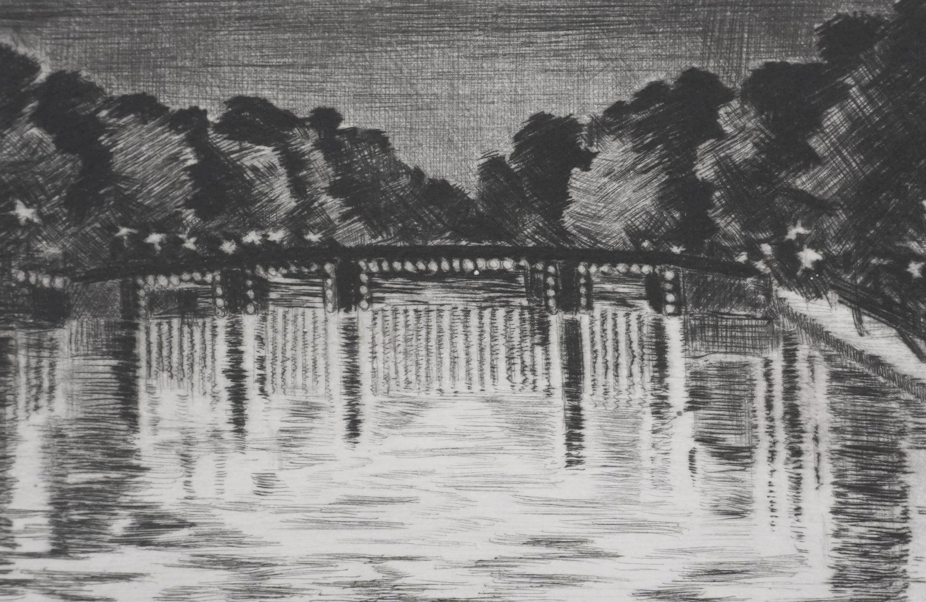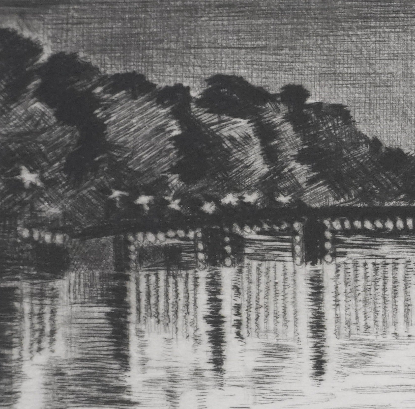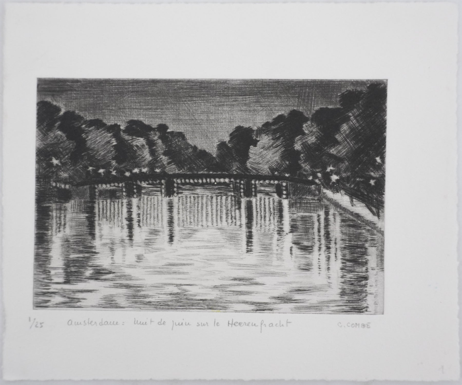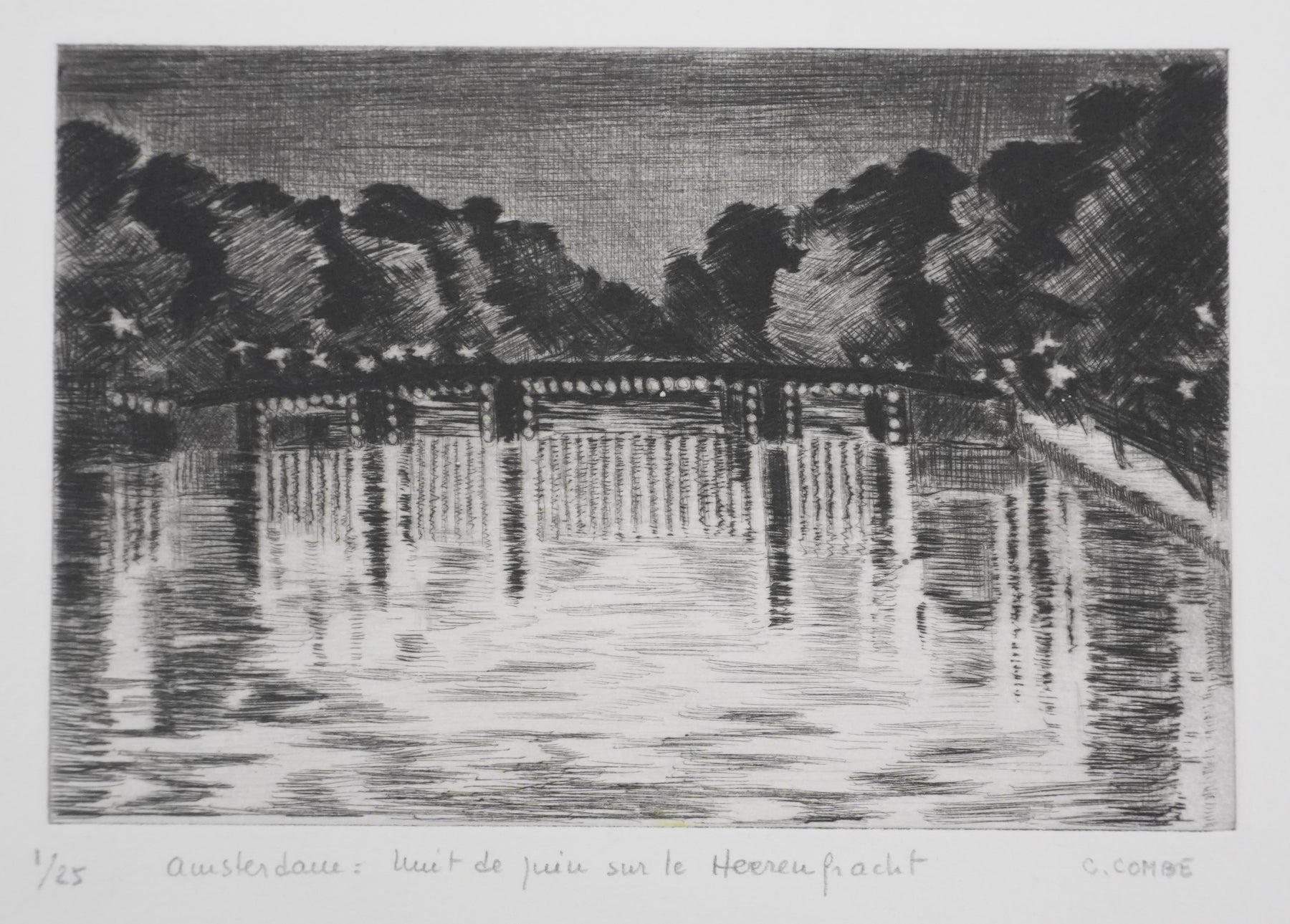 Camille COMBE : Amsterdam, nuit de juin sur le Herengracht, Gravure originale signée