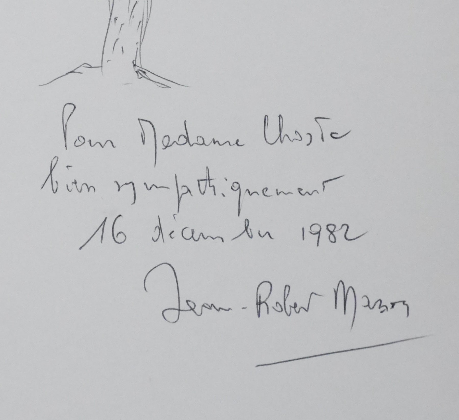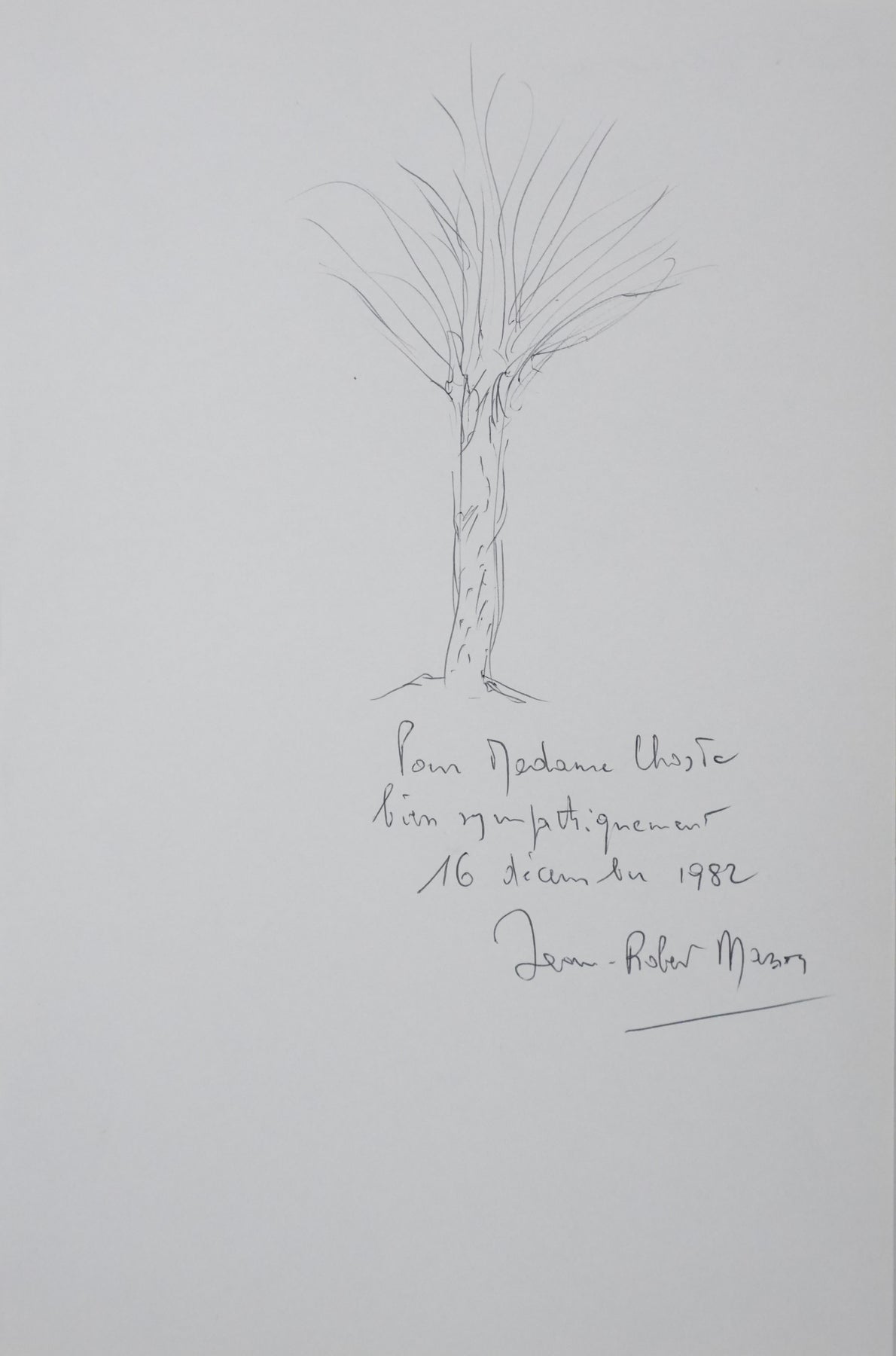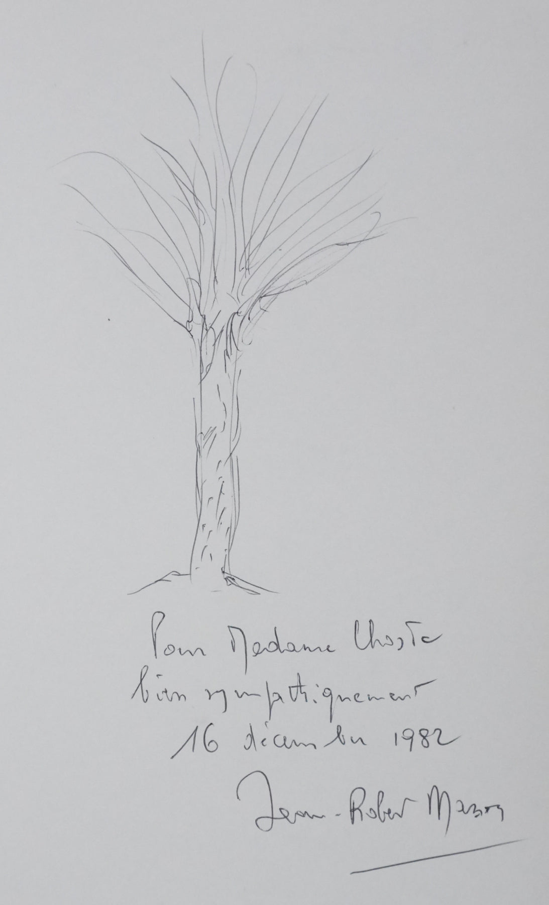 PROVENANCE : Ce dessin provient de la collection personnelle de Pierre Lhoste. Journaliste de radio, Pierre Lhoste (1913-1984) demanda aux personnalités qu’il recevait de réaliser un autographe accompagné d'un dessin d’arbre, constituant ainsi un témoignage unique de ses entretiens.