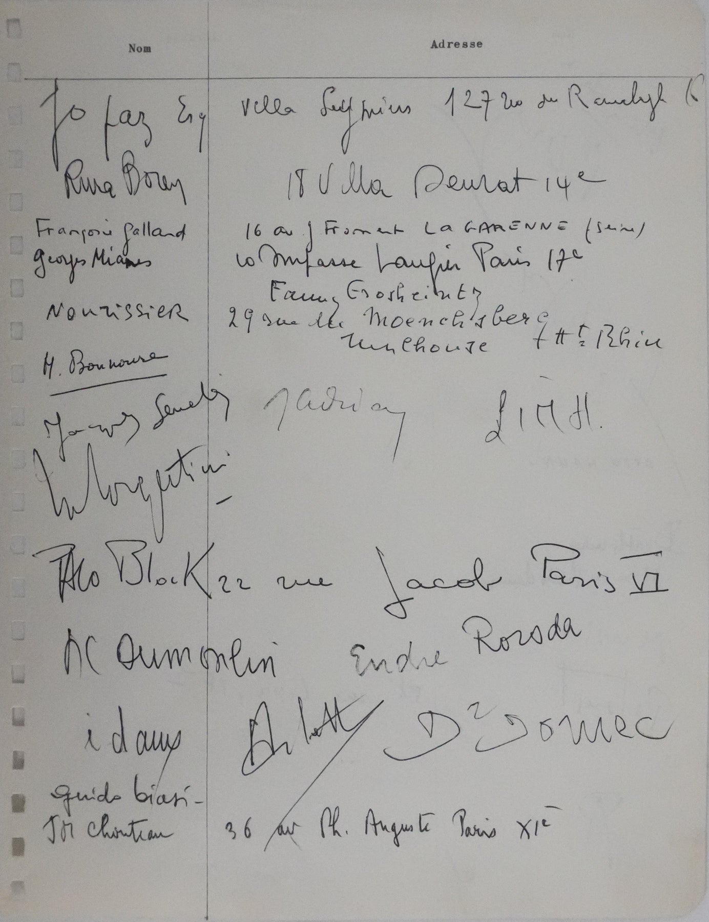 PROVENANCE : Livre d'or de la galerie le Point Cardinal (Paris) entre 1962 et 1964. Ensemble d'autographes laissés lors des expositions d'Unica ZURN, peintre et poétesse allemande, compagne d'Hans BELLMER.