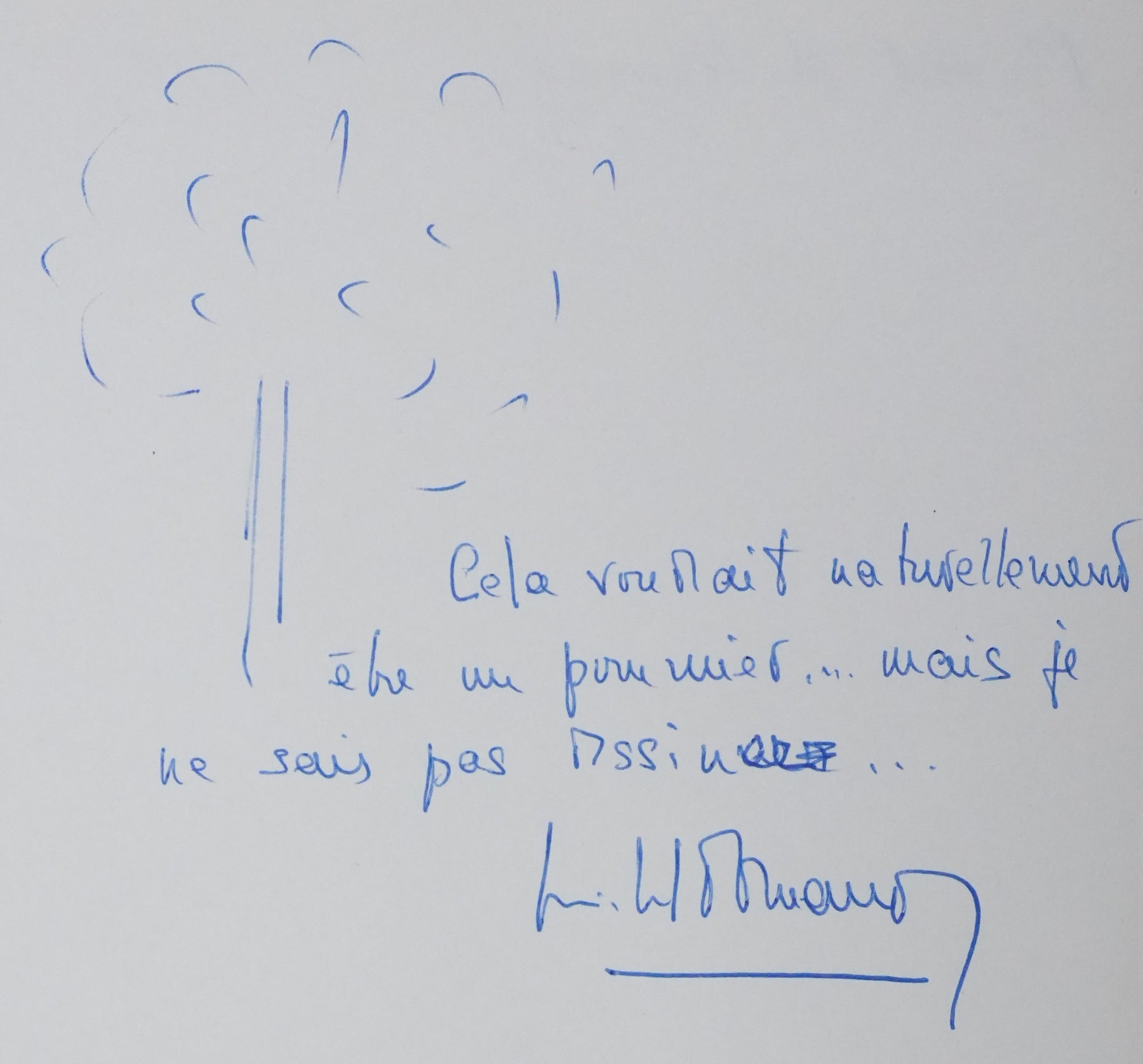 PROVENANCE : Ce dessin provient de la collection personnelle de Pierre Lhoste. Journaliste de radio, Pierre Lhoste (1913-1984) demanda aux personnalités qu’il recevait de réaliser un autographe accompagné d'un dessin d’arbre, constituant ainsi un témoignage unique de ses entretiens.