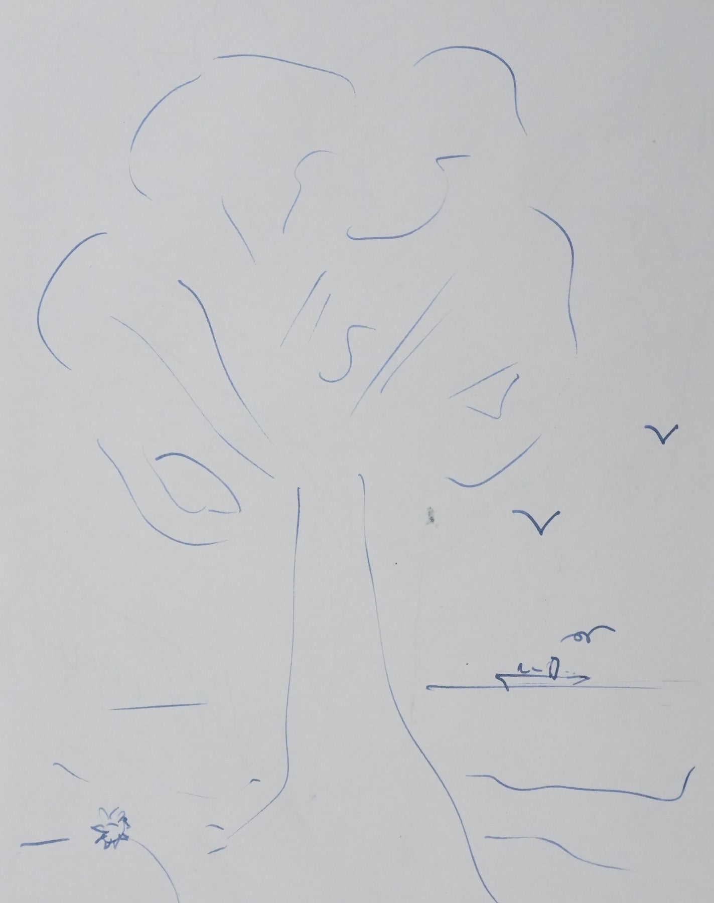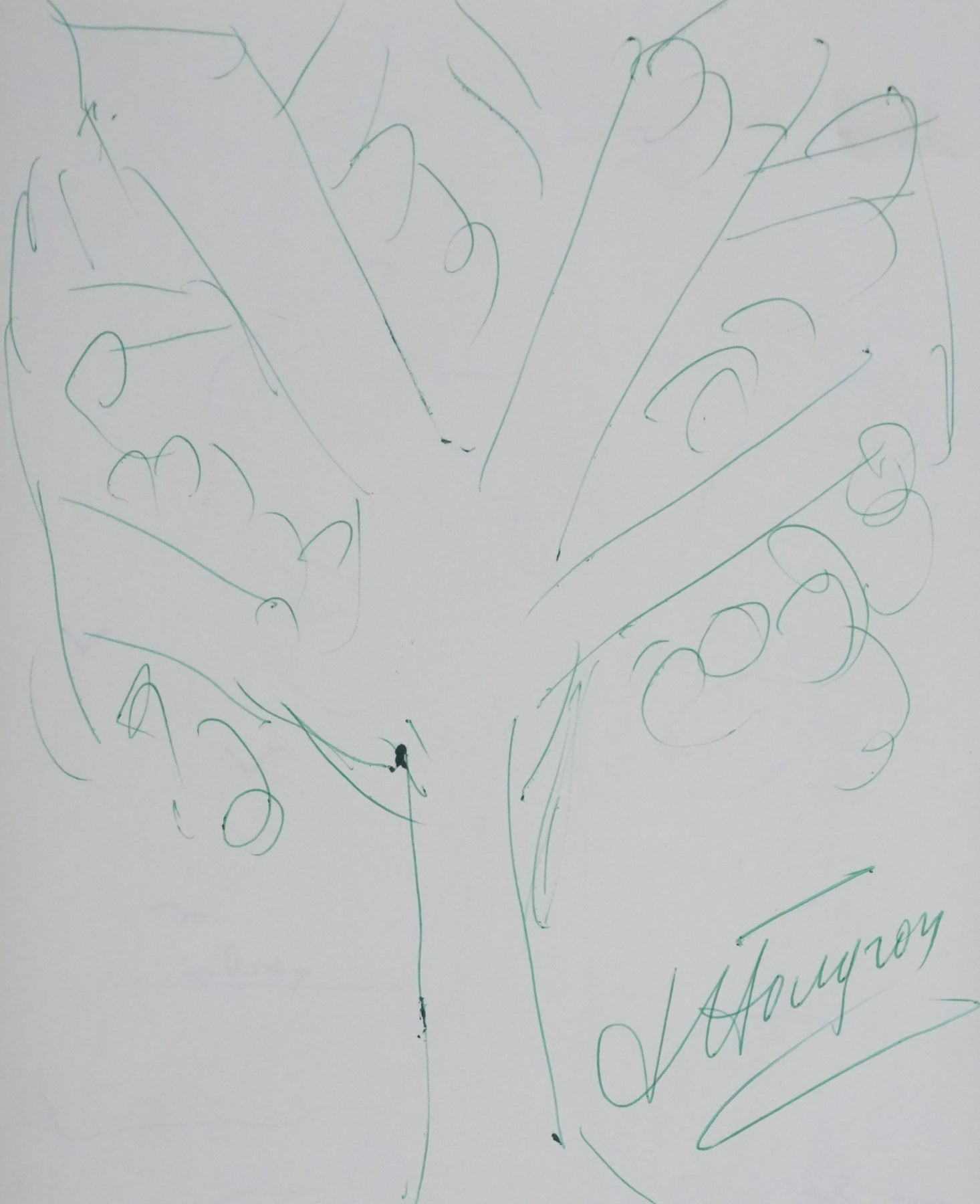 PROVENANCE : Ce dessin provient de la collection personnelle de Pierre Lhoste. Journaliste de radio, Pierre Lhoste (1913-1984) demanda aux personnalités qu’il recevait de réaliser un autographe accompagné d'un dessin d’arbre, constituant ainsi un témoignage unique de ses entretiens.