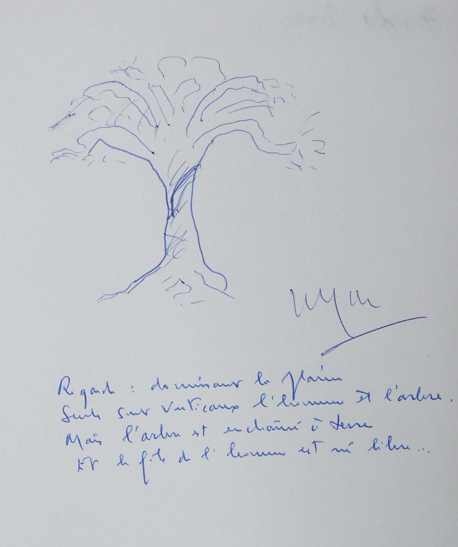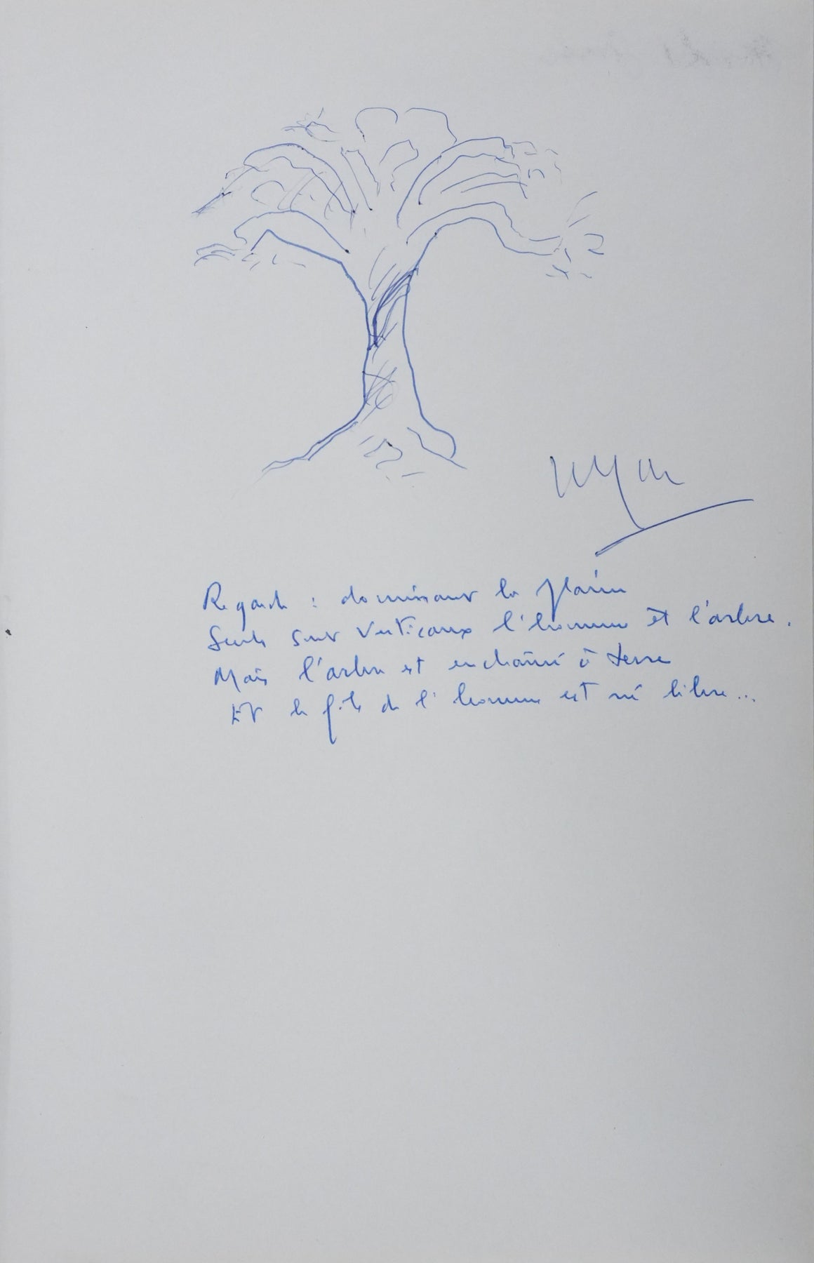 PROVENANCE : Ce dessin provient de la collection personnelle de Pierre Lhoste. Journaliste de radio, Pierre Lhoste (1913-1984) demanda aux personnalités qu’il recevait de réaliser un autographe accompagné d'un dessin d’arbre, constituant ainsi un témoignage unique de ses entretiens.