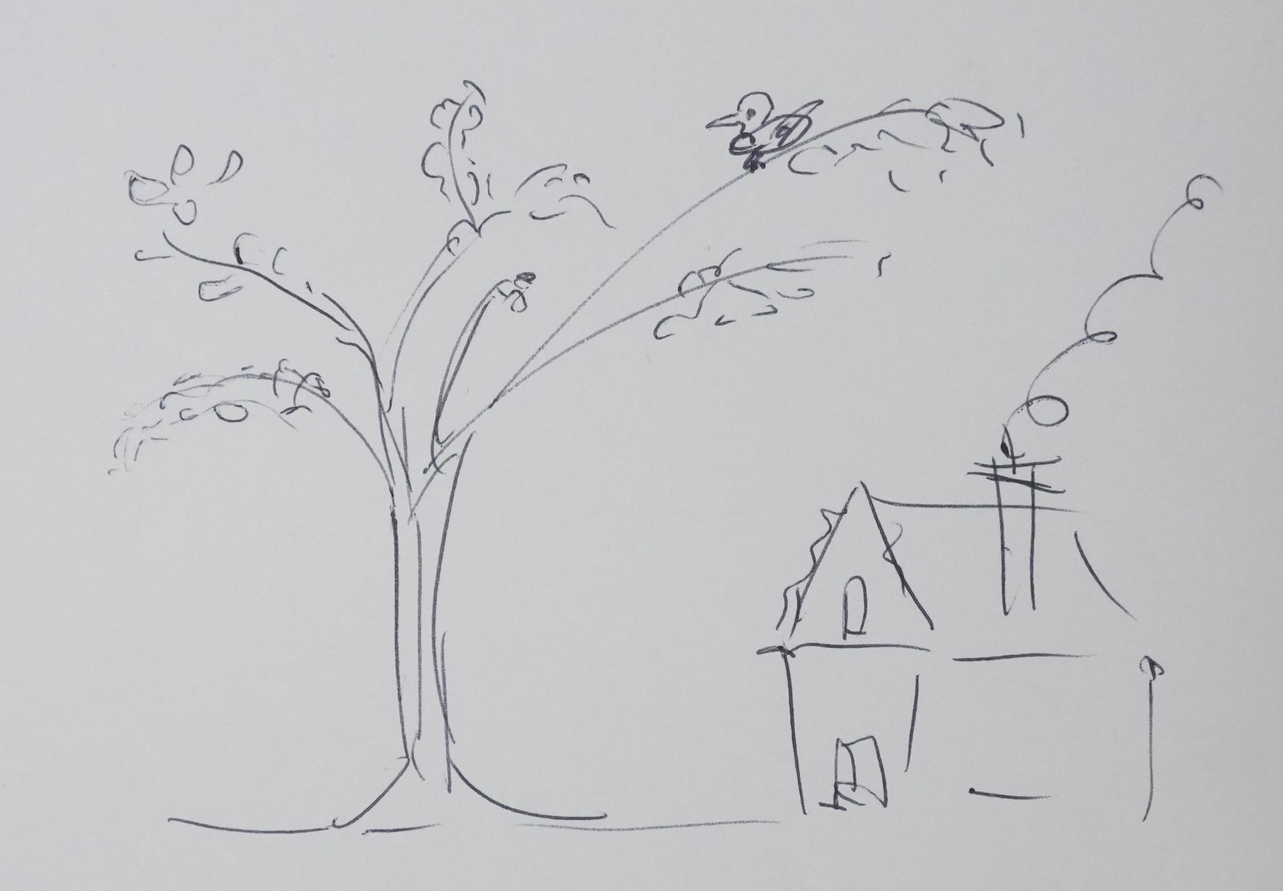 PROVENANCE : Ce dessin provient de la collection personnelle de Pierre Lhoste. Journaliste de radio, Pierre Lhoste (1913-1984) demanda aux personnalités qu’il recevait de réaliser un autographe accompagné d'un dessin d’arbre, constituant ainsi un témoignage unique de ses entretiens.