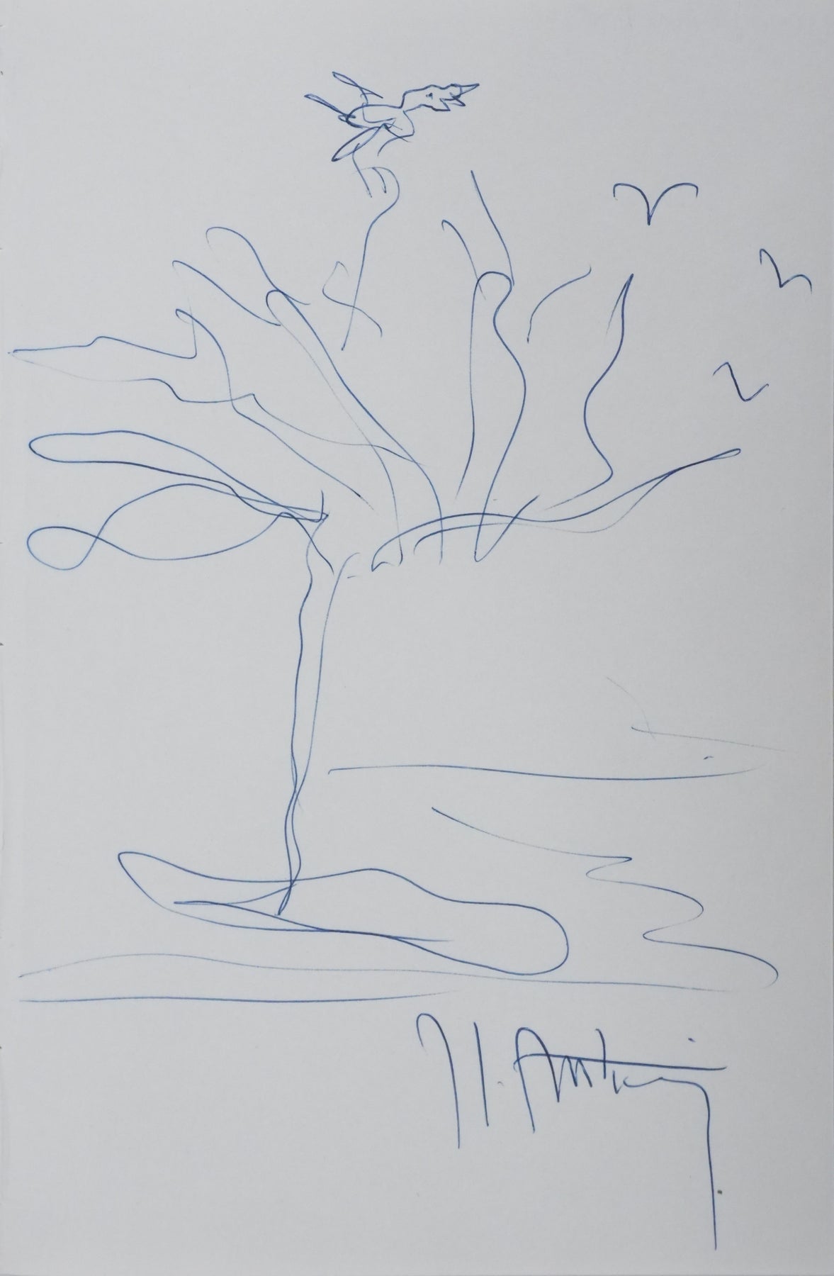Jean Jacques ANTIER : L'arbre et le vol d'oiseau, Autographe et dessin original signé