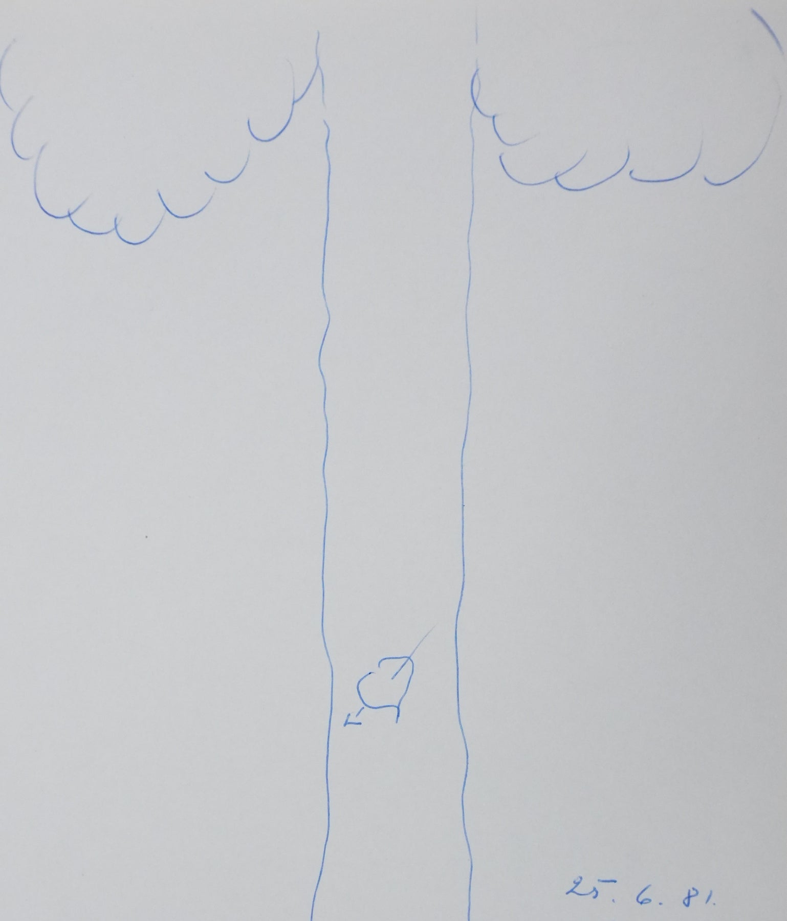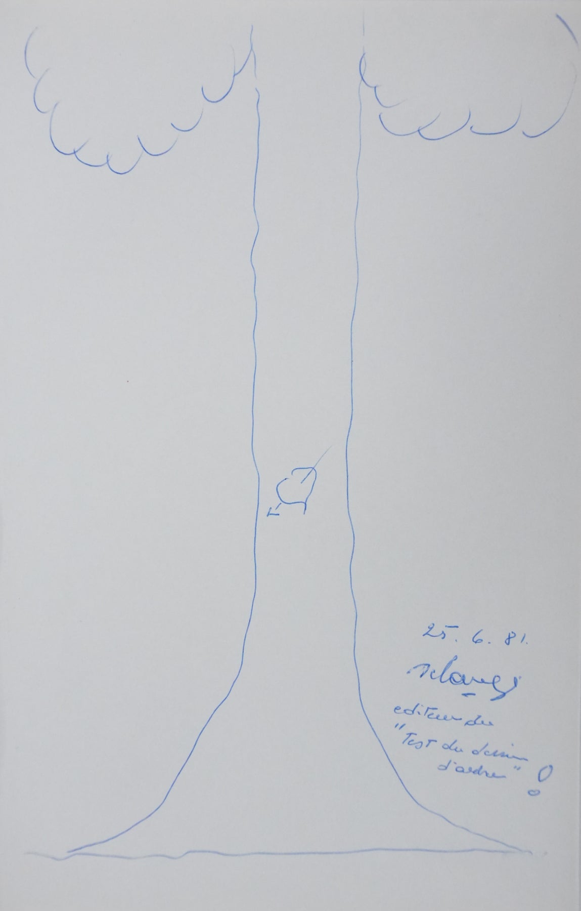 PROVENANCE : Ce dessin provient de la collection personnelle de Pierre Lhoste. Journaliste de radio, Pierre Lhoste (1913-1984) demanda aux personnalités qu’il recevait de réaliser un autographe accompagné d'un dessin d’arbre, constituant ainsi un témoignage unique de ses entretiens.