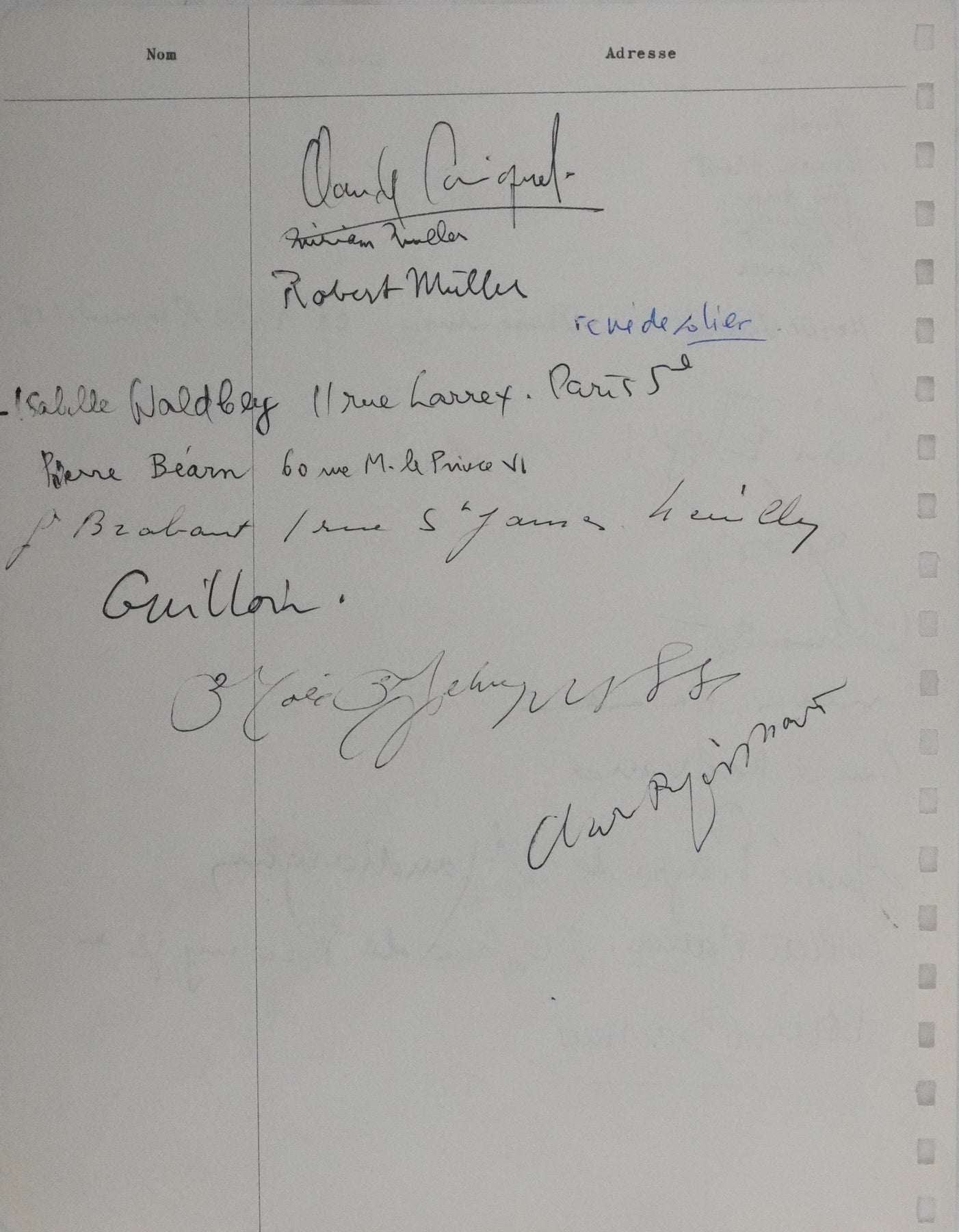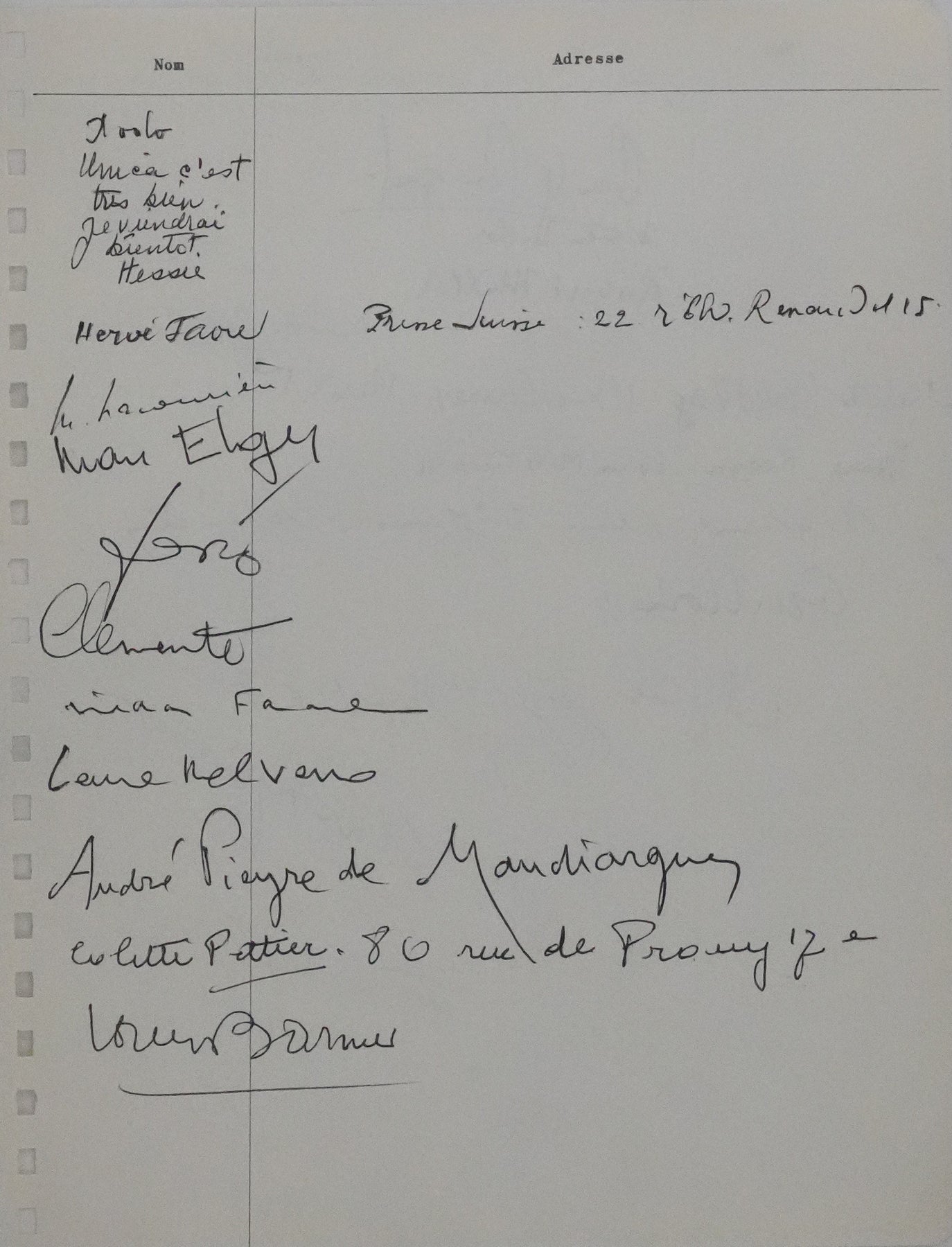 PROVENANCE : Livre d'or de la galerie le Point Cardinal (Paris) entre 1962 et 1964. Ensemble d'autographes laissés lors des expositions d'Unica ZURN, peintre et poétesse allemande, compagne d'Hans BELLMER.