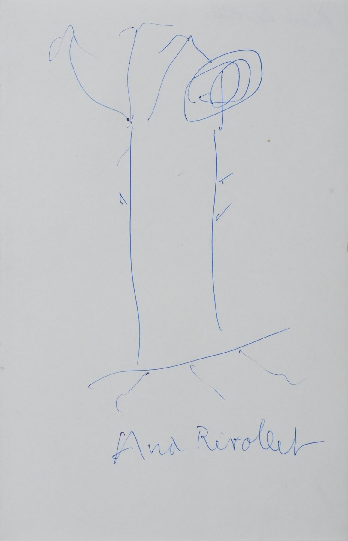 André RIVOLLET : L'arbre et la tête, Autographe et dessin original signé