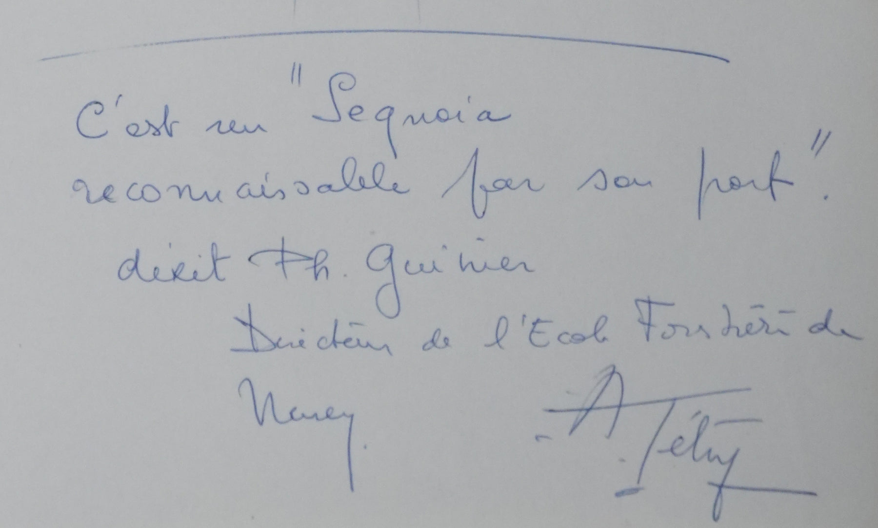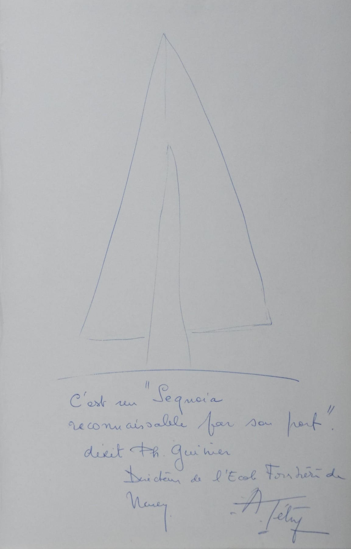 Andrée TETRY : Sequoia en triangle, Autographe et dessin original signé