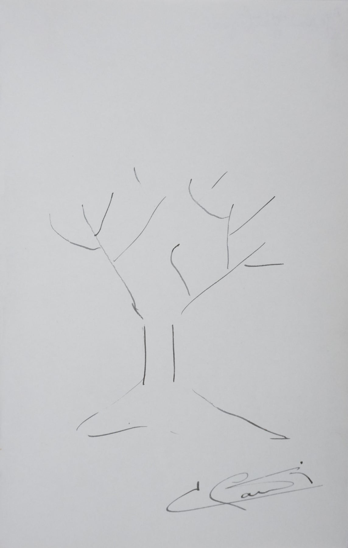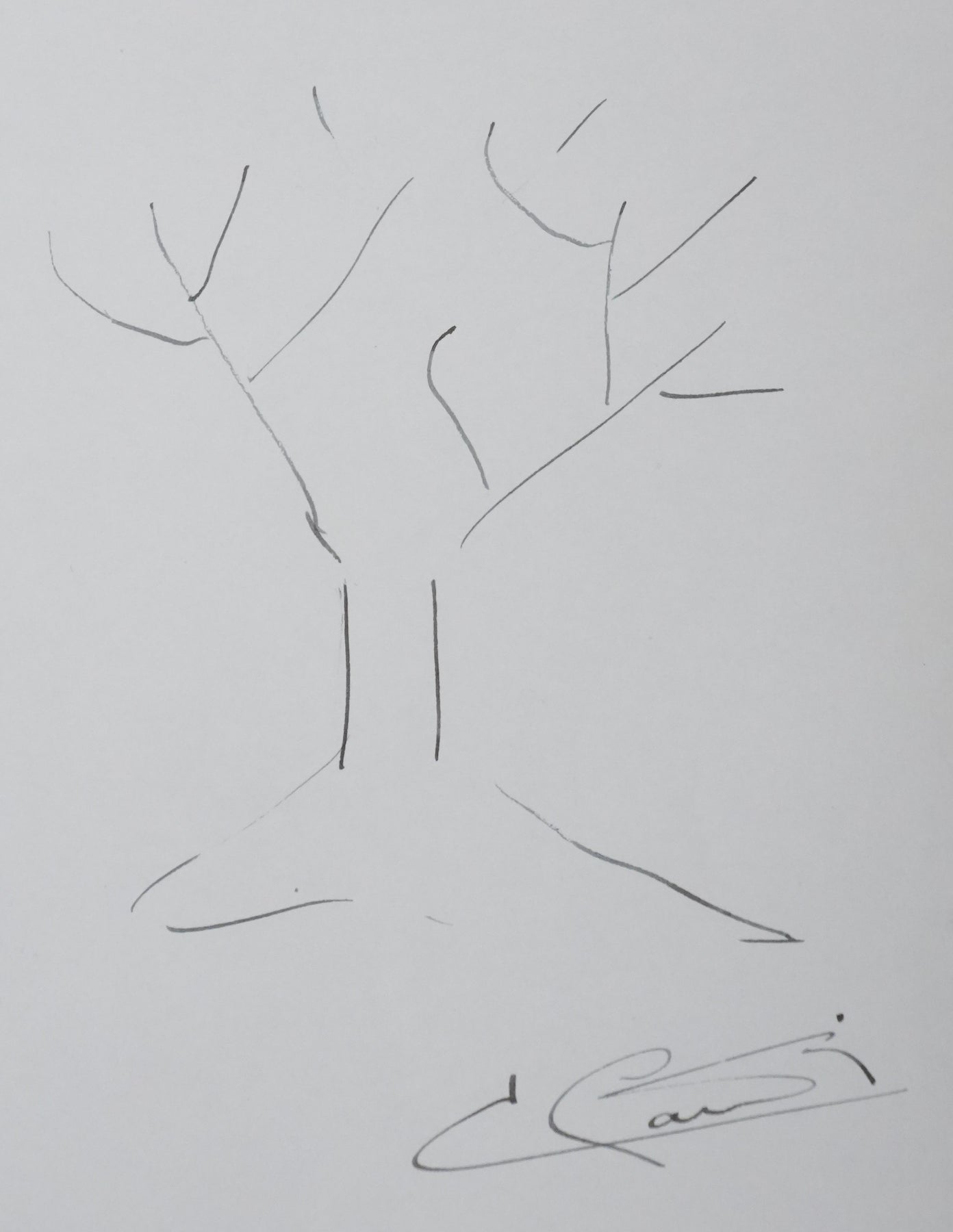 PROVENANCE : Ce dessin provient de la collection personnelle de Pierre Lhoste. Journaliste de radio, Pierre Lhoste (1913-1984) demanda aux personnalités qu’il recevait de réaliser un autographe accompagné d'un dessin d’arbre, constituant ainsi un témoignage unique de ses entretiens.