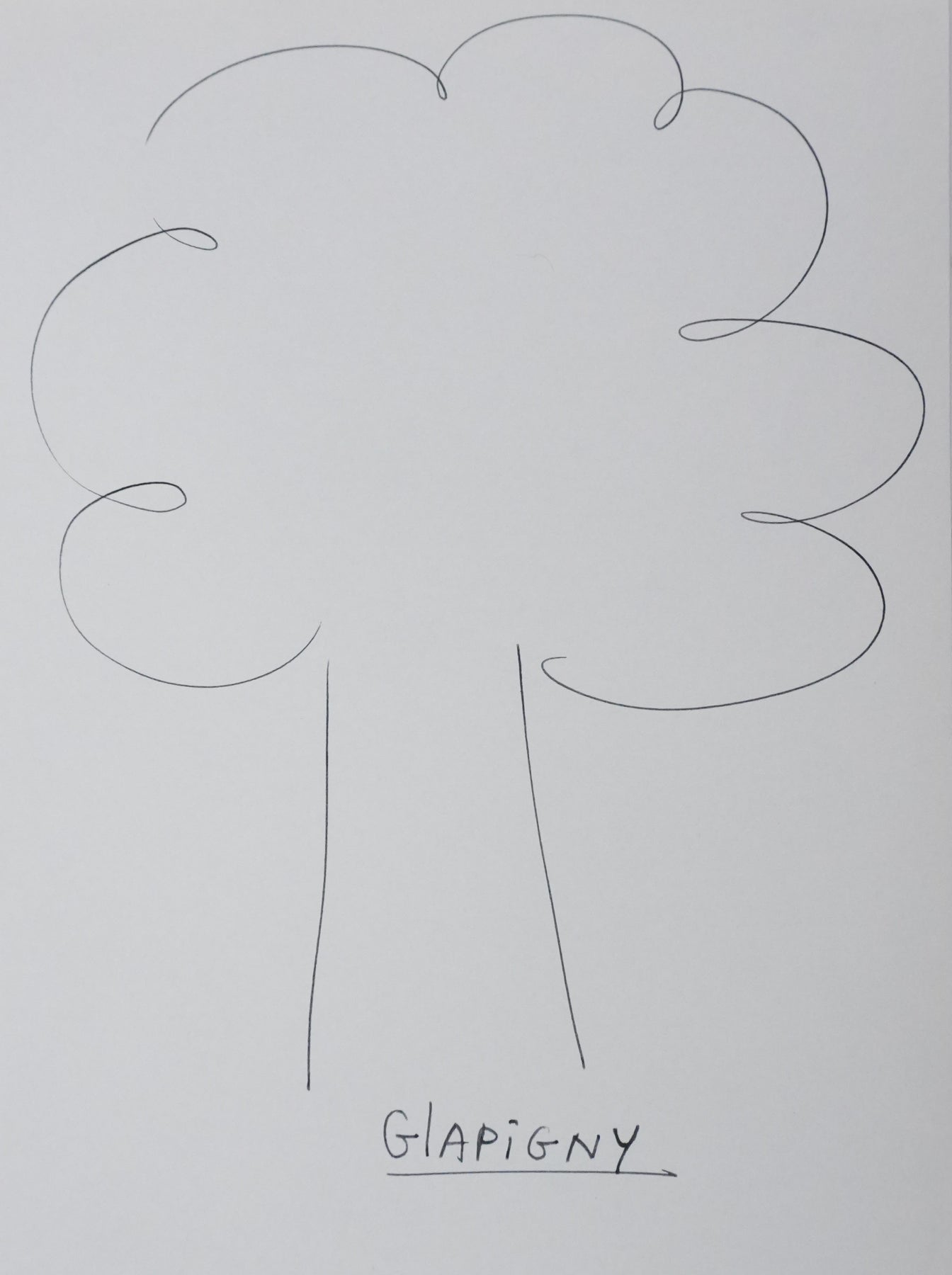 PROVENANCE : Ce dessin provient de la collection personnelle de Pierre Lhoste. Journaliste de radio, Pierre Lhoste (1913-1984) demanda aux personnalités qu’il recevait de réaliser un autographe accompagné d'un dessin d’arbre, constituant ainsi un témoignage unique de ses entretiens.