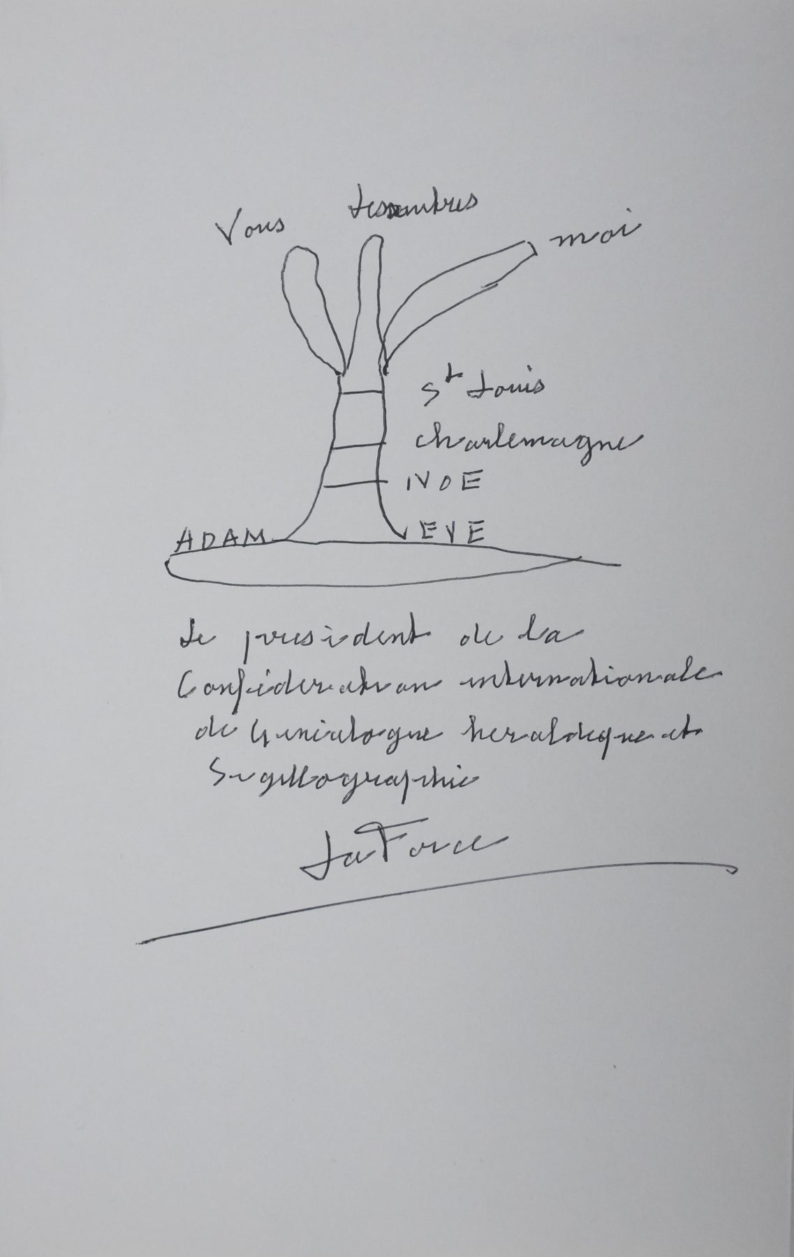 PROVENANCE : Ce dessin provient de la collection personnelle de Pierre Lhoste. Journaliste de radio, Pierre Lhoste (1913-1984) demanda aux personnalités qu’il recevait de réaliser un autographe accompagné d'un dessin d’arbre, constituant ainsi un témoignage unique de ses entretiens.