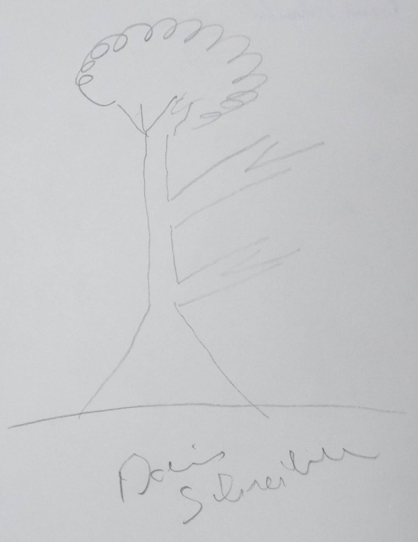 Boris SCHREIBER : Arbre aux deux branches, Autographe et dessin original signé