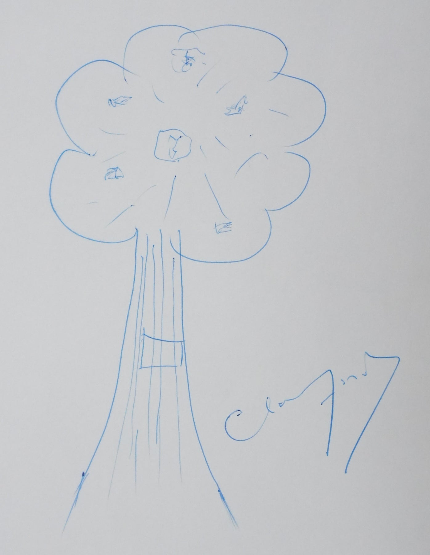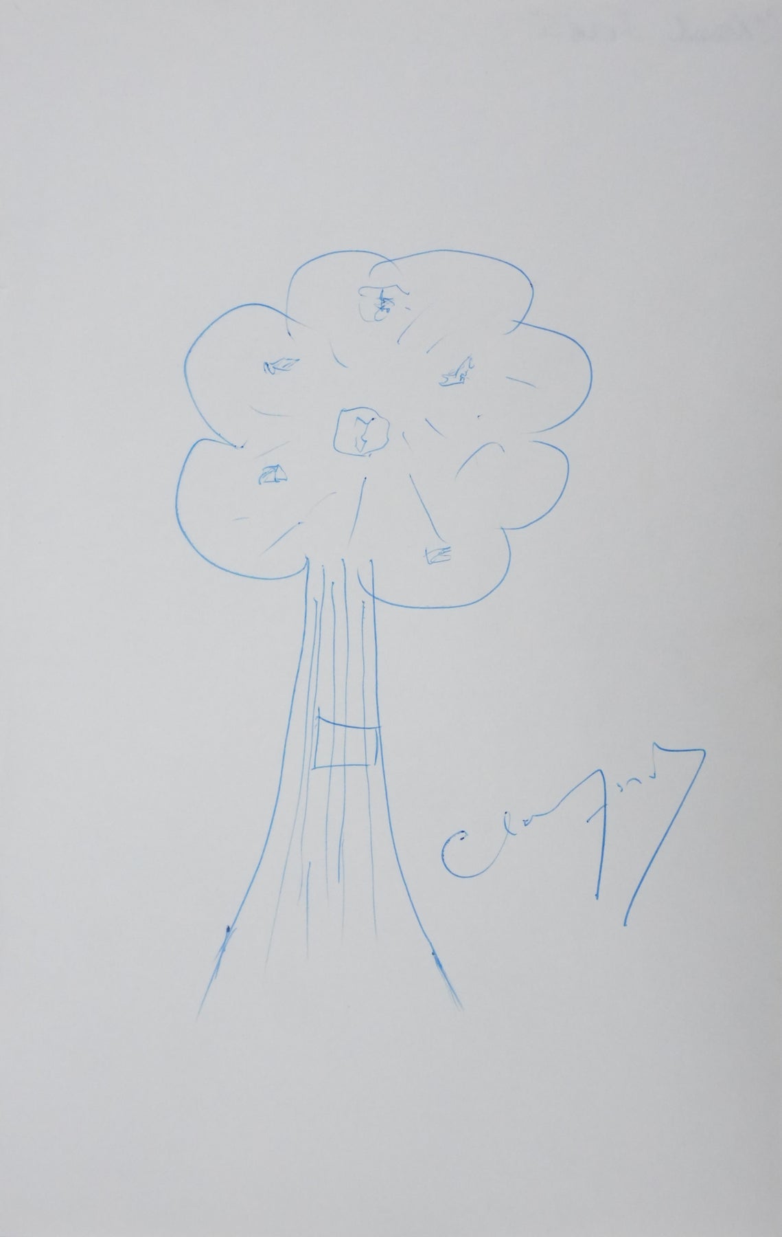 PROVENANCE : Ce dessin provient de la collection personnelle de Pierre Lhoste. Journaliste de radio, Pierre Lhoste (1913-1984) demanda aux personnalités qu’il recevait de réaliser un autographe accompagné d'un dessin d’arbre, constituant ainsi un témoignage unique de ses entretiens.